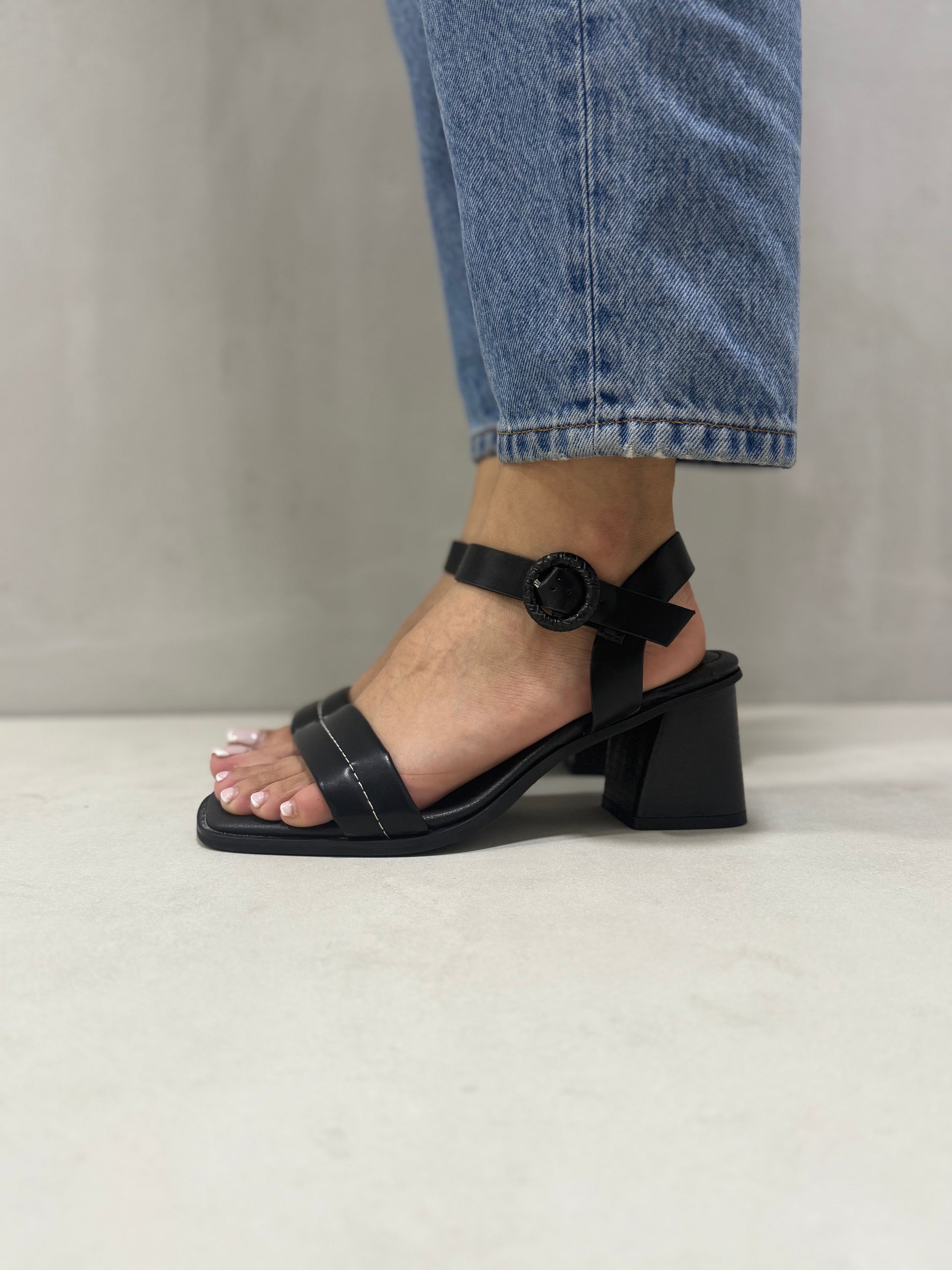 Estas sandalias negras de tacón medio son la elección ideal para un look sofisticado y cómodo. Su diseño clásico con tiras finas y hebilla ajustable combina perfectamente con atuendos formales, de oficina o salidas nocturnas. El tacón ancho brinda estabilidad, mientras que la plantilla acolchada garantiza confort en cada paso, convirtiéndolas en un calzado imprescindible en tu clóset.