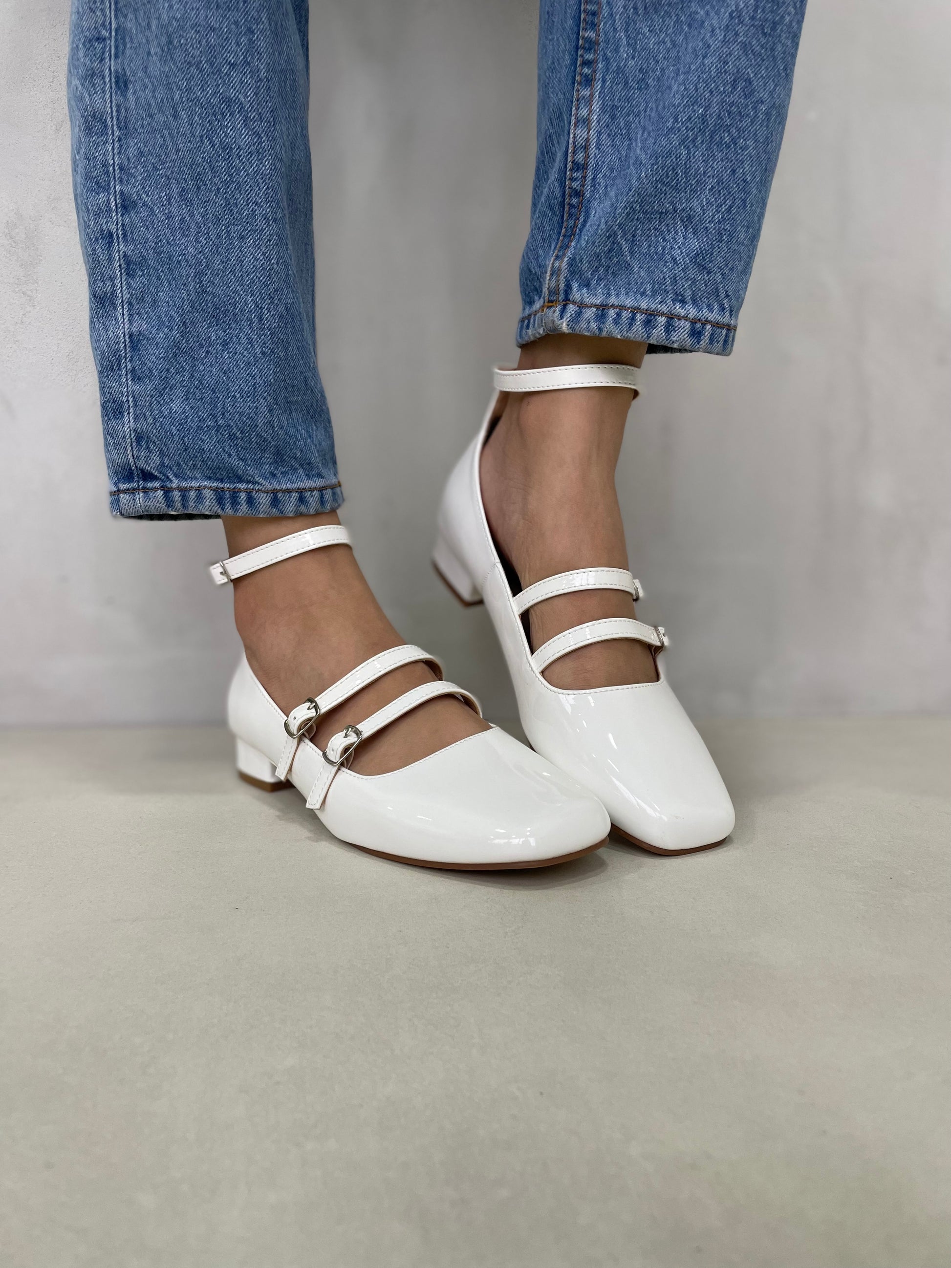 Refinados y elegantes, estos Mary Jane en charol blanco con triple correa combinan la esencia vintage con la comodidad moderna. Su acabado brillante y tacón bajo los hacen ideales para usar durante todo el día, aportando un toque romántico y pulido a cualquier look. Perfectos para combinar con vestidos, faldas o pantalones de vestir en tonos neutros.