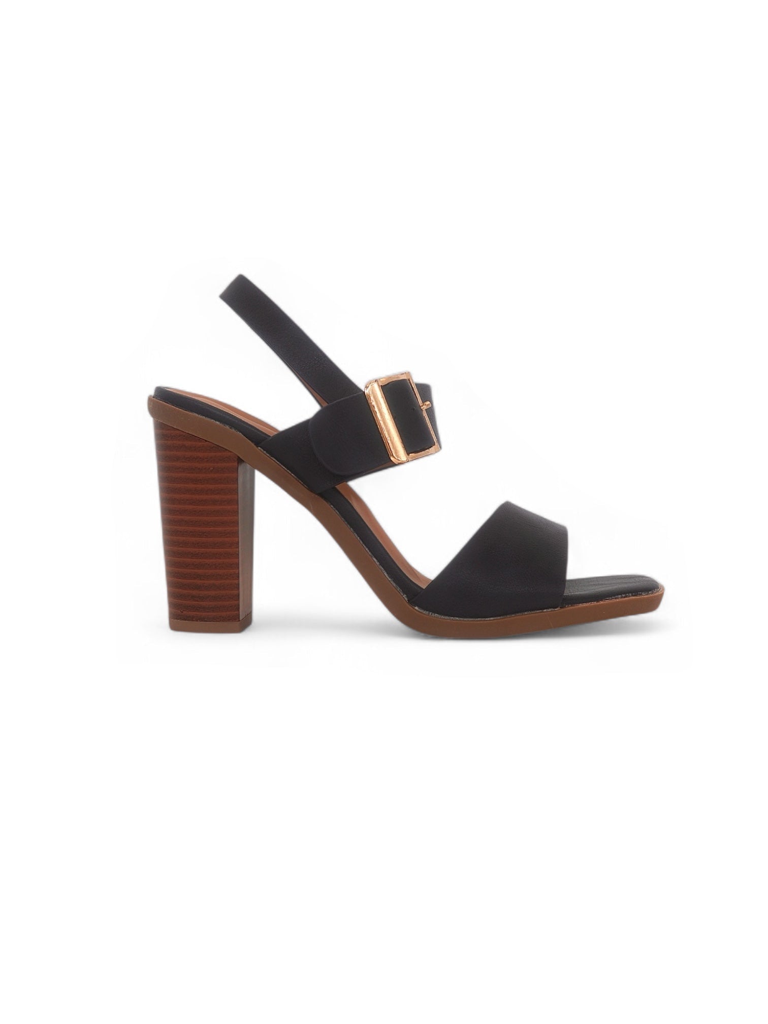 Esta elegante sandalia de tacón alto es perfecta para ocasiones formales y casuales. Su diseño minimalista en color negro con dos tiras y pulsera ajustable en el tobillo ofrece un equilibrio ideal entre estilo y comodidad. El tacón ancho de madera añade un toque moderno y estabilidad para un uso prolongado sin sacrificar la elegancia.