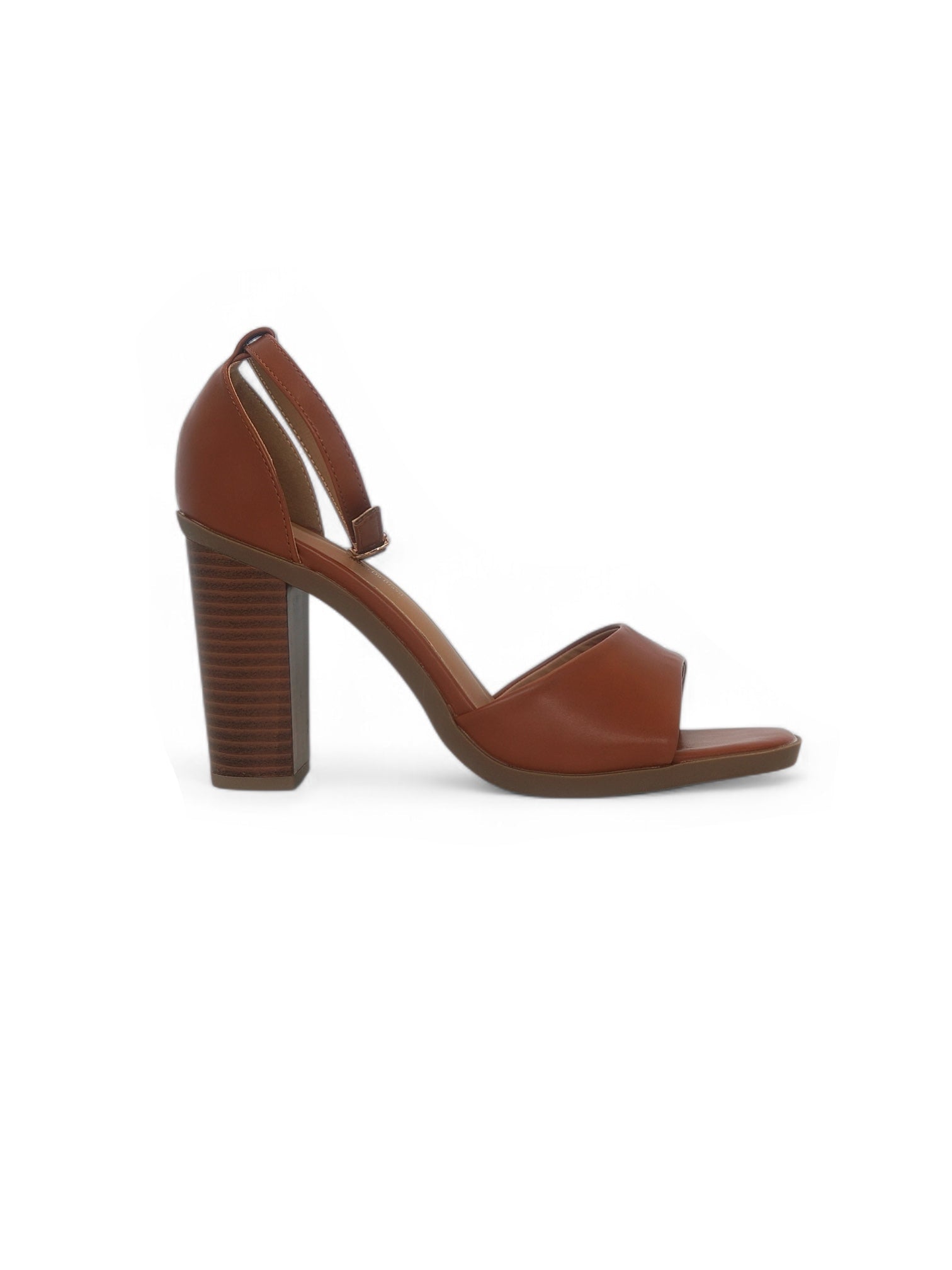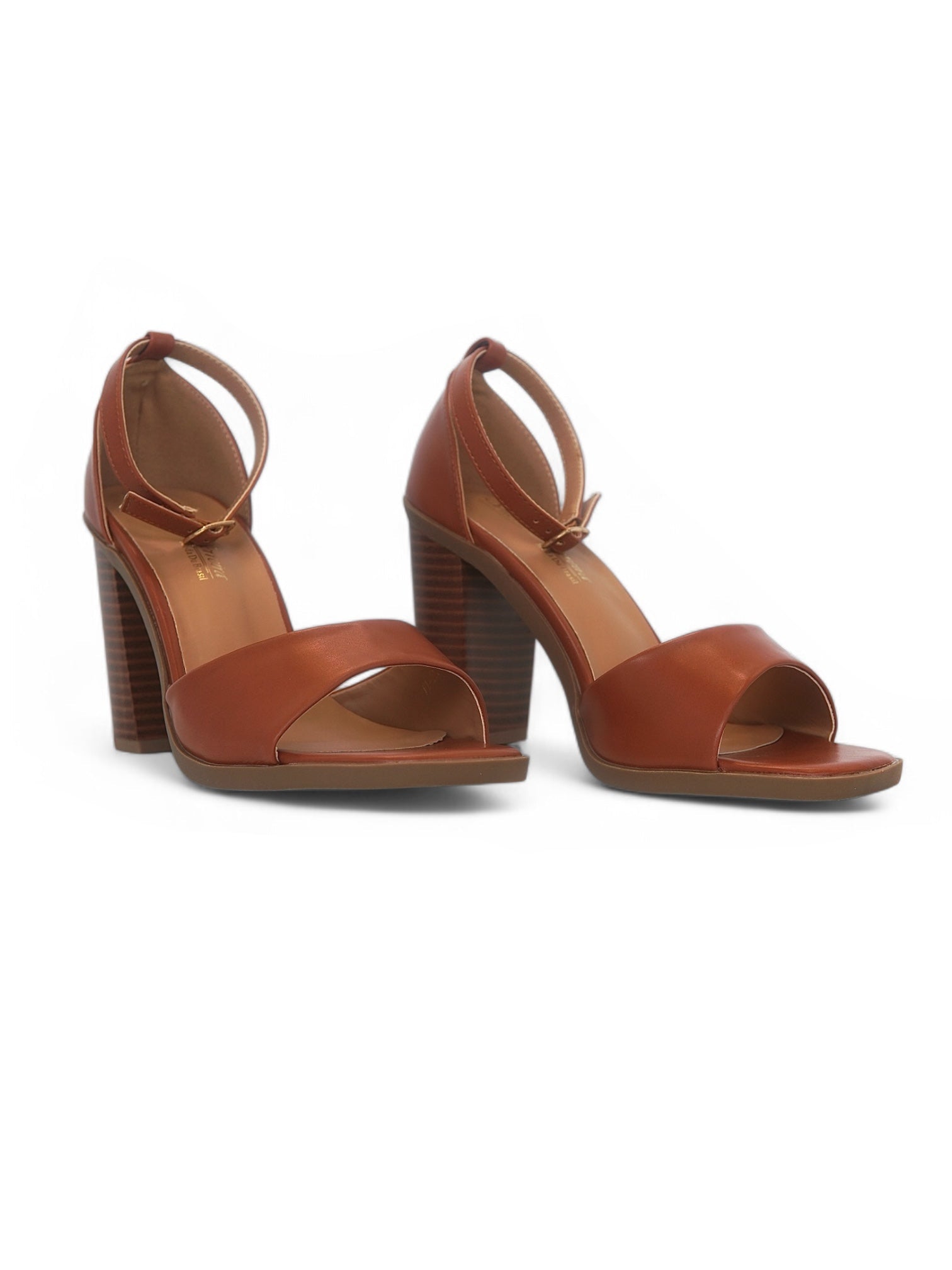 Esta sandalia de tacón alto en tono miel es la combinación perfecta de sofisticación y comodidad. Su diseño limpio, con una ancha tira delantera y soporte en el talón, brinda firmeza y un calce elegante. El tacón tipo bloque, con efecto madera, le da un aire moderno y natural que eleva cualquier outfit.