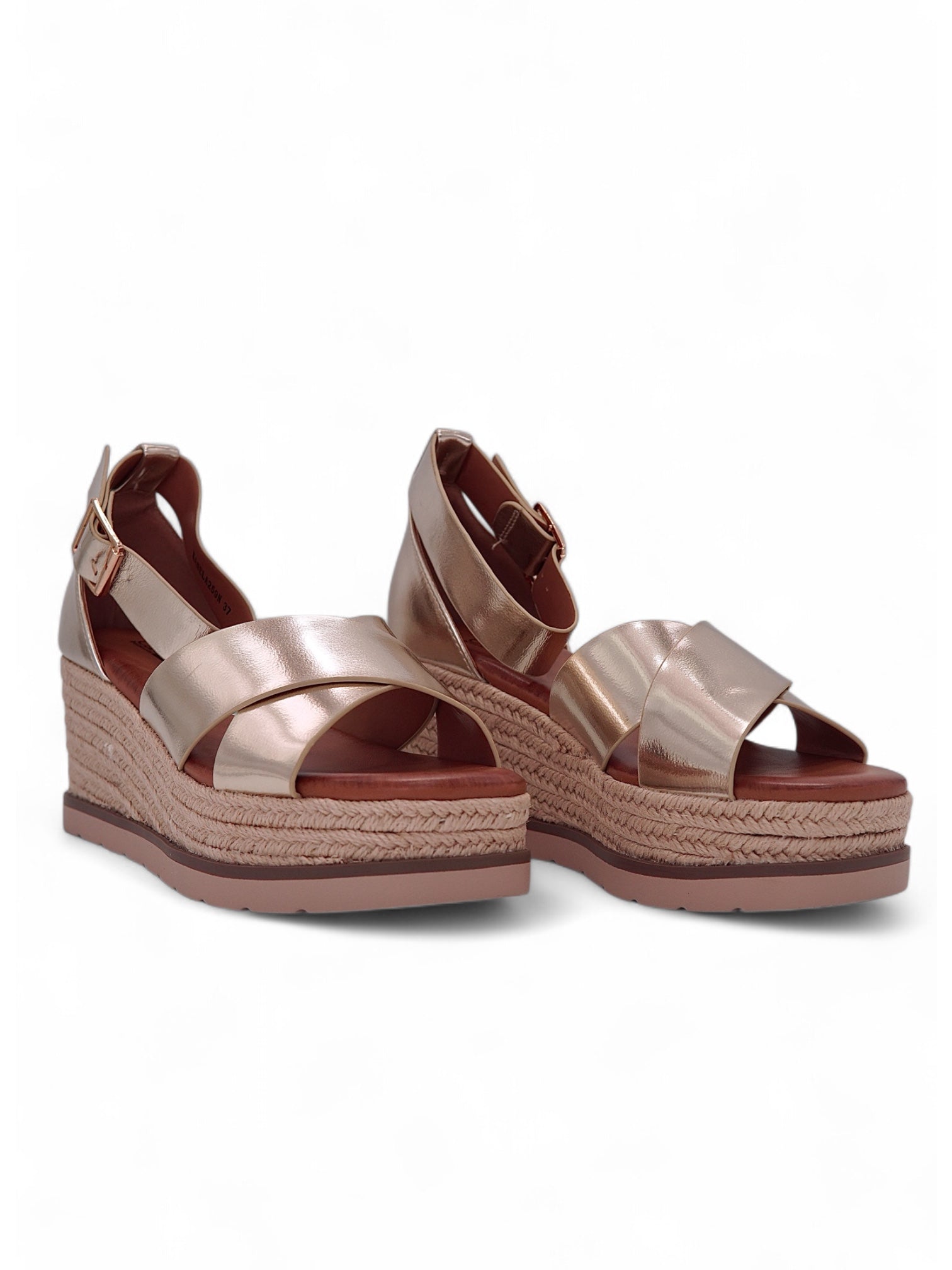 13746 - Sandalias para Mujer en Dorado Champagne con Cuña de Yute