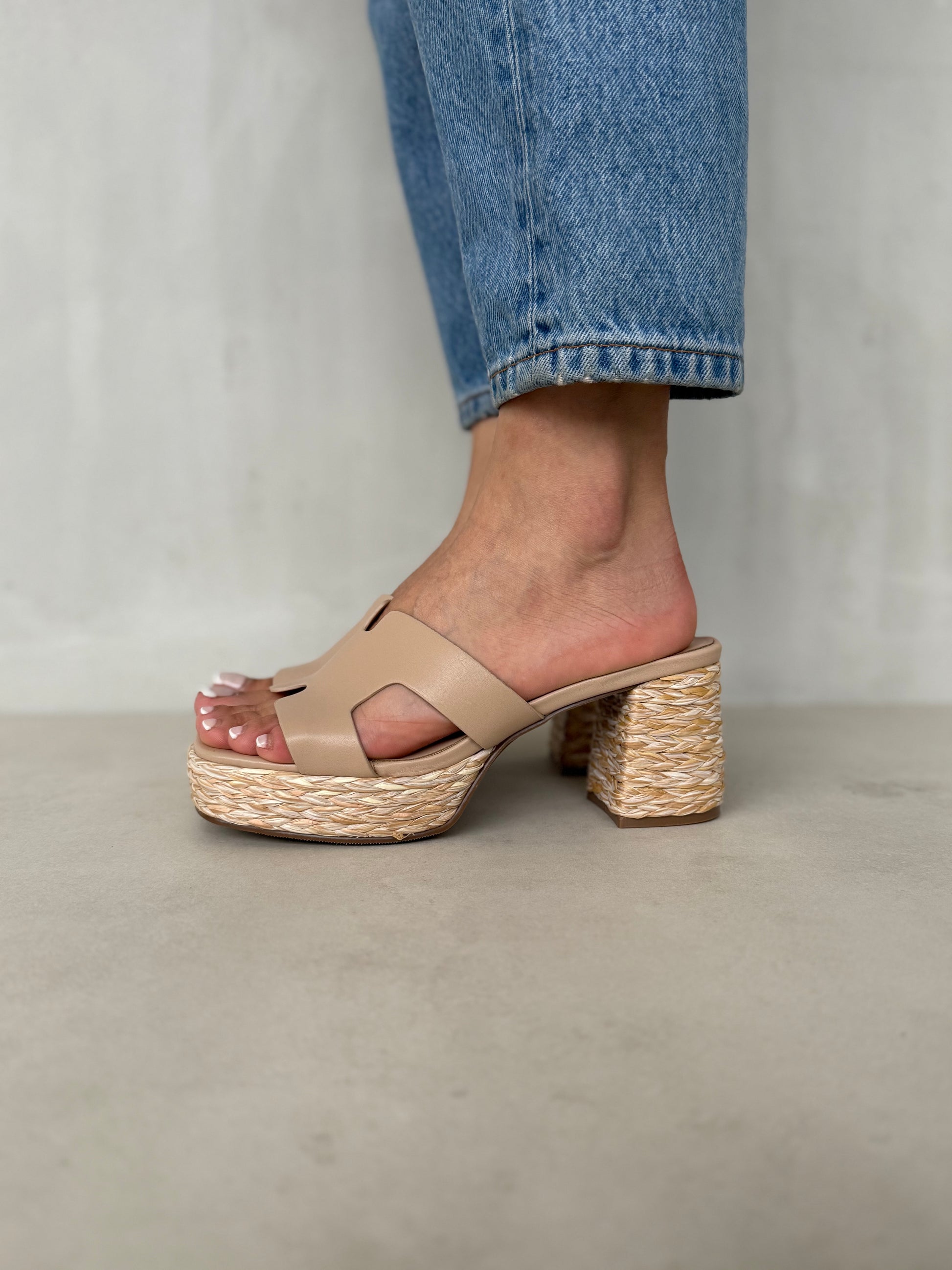 Sandalias de Tacón – Diseño Casual en Tonos Beige y Textura Trenzada