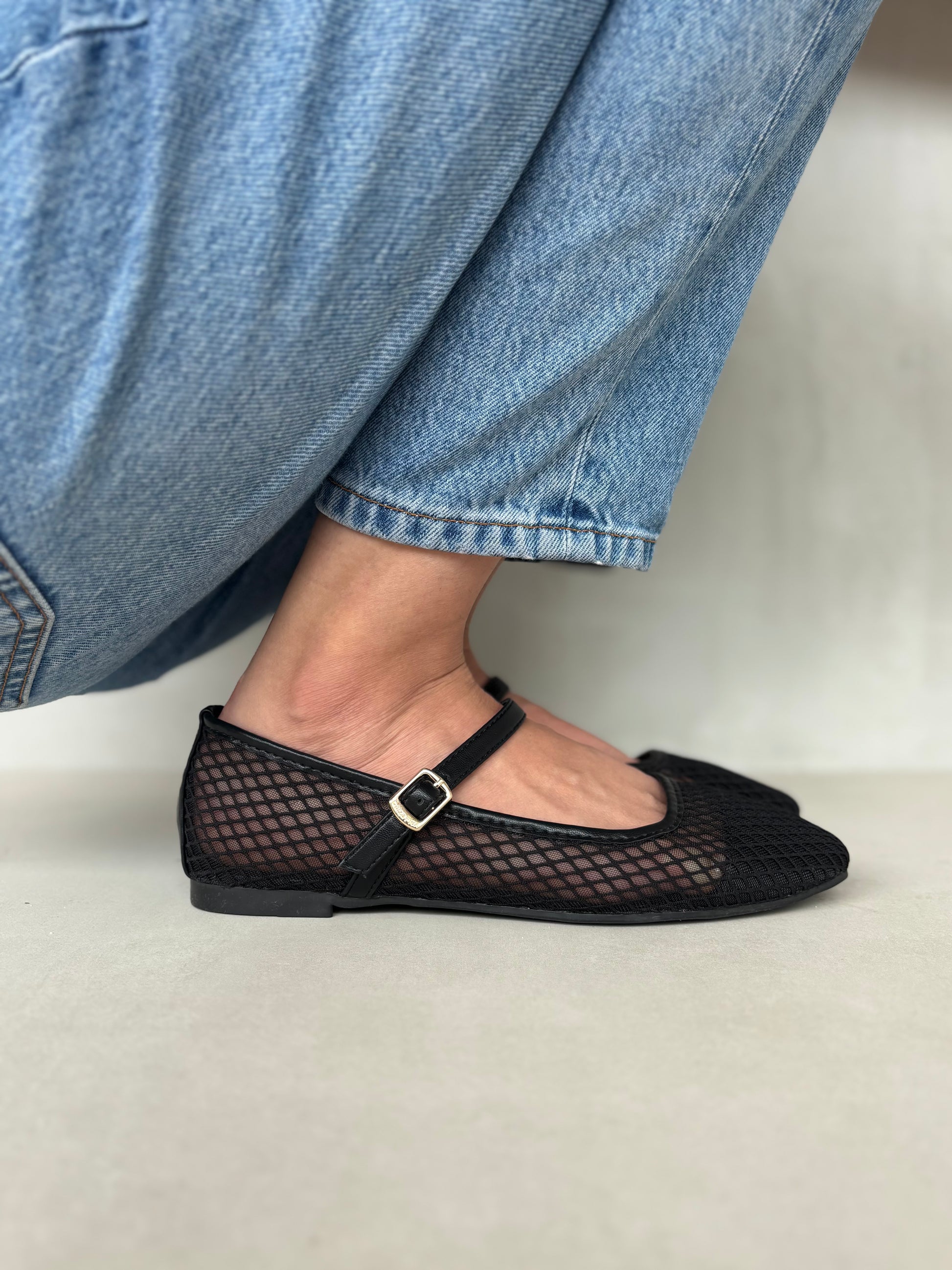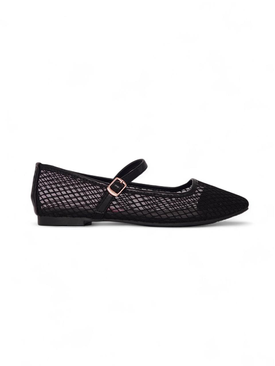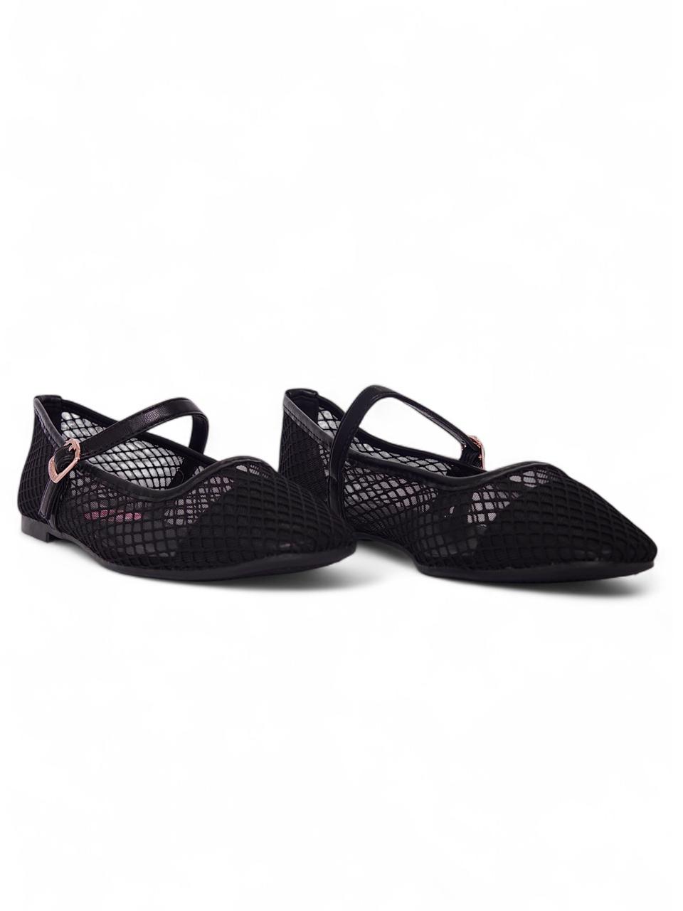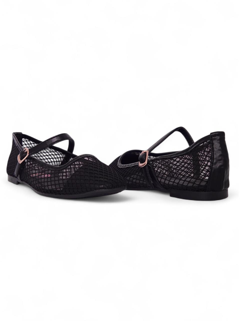 Bailarinas de Malla Negra con Hebilla – Estilo Ligero y Moderno para Mujer