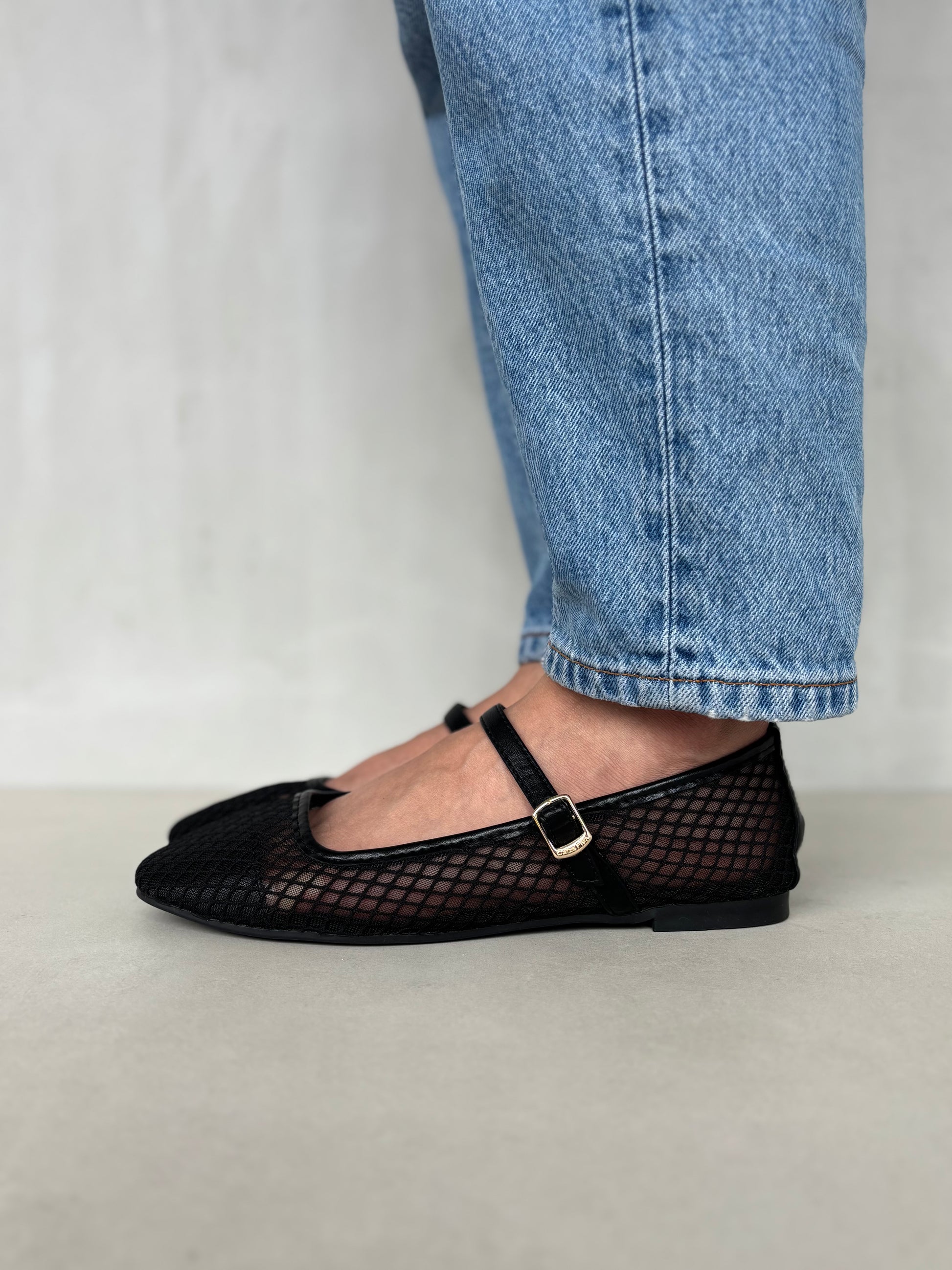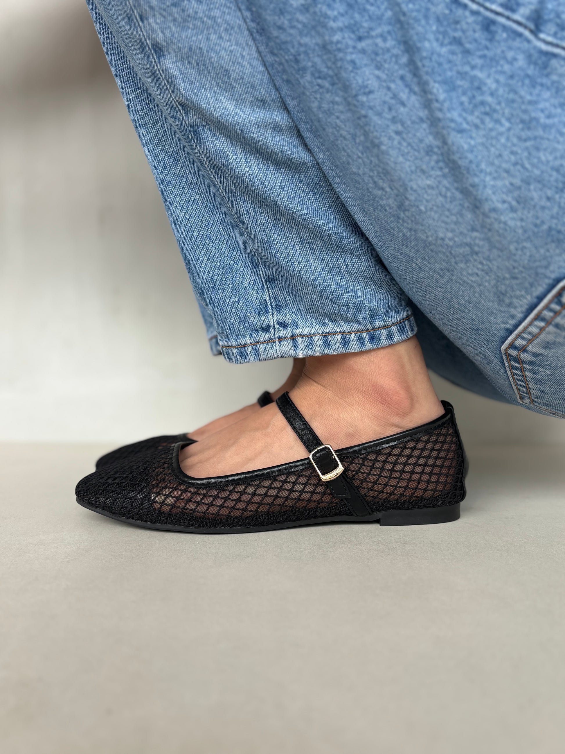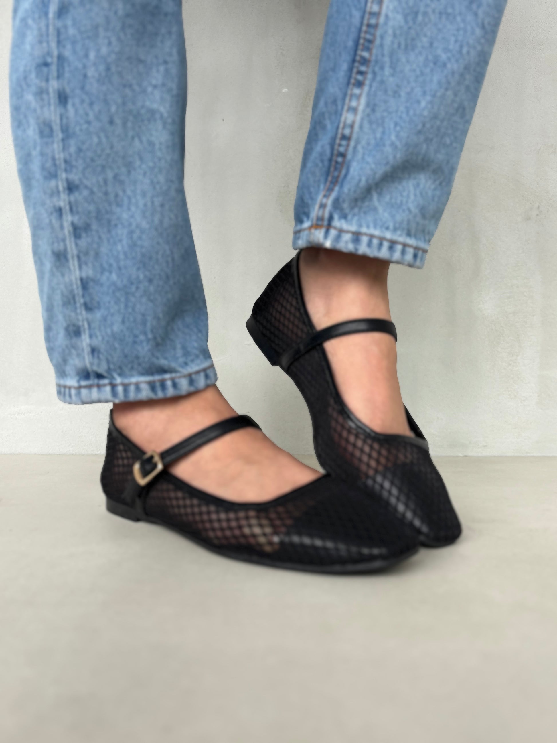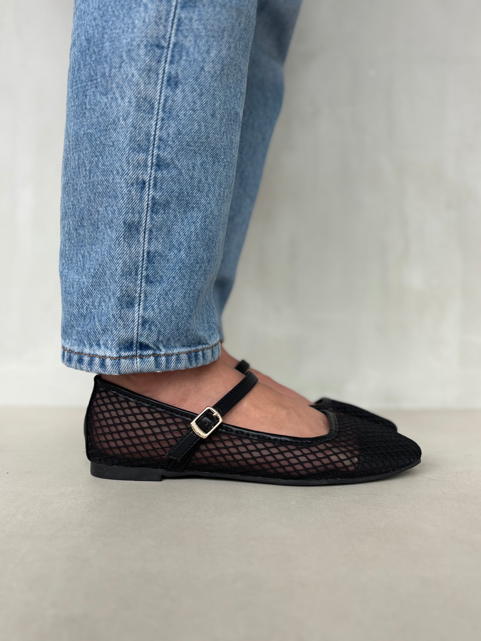 Bailarinas de Malla Negra con Hebilla – Estilo Ligero y Moderno para Mujer