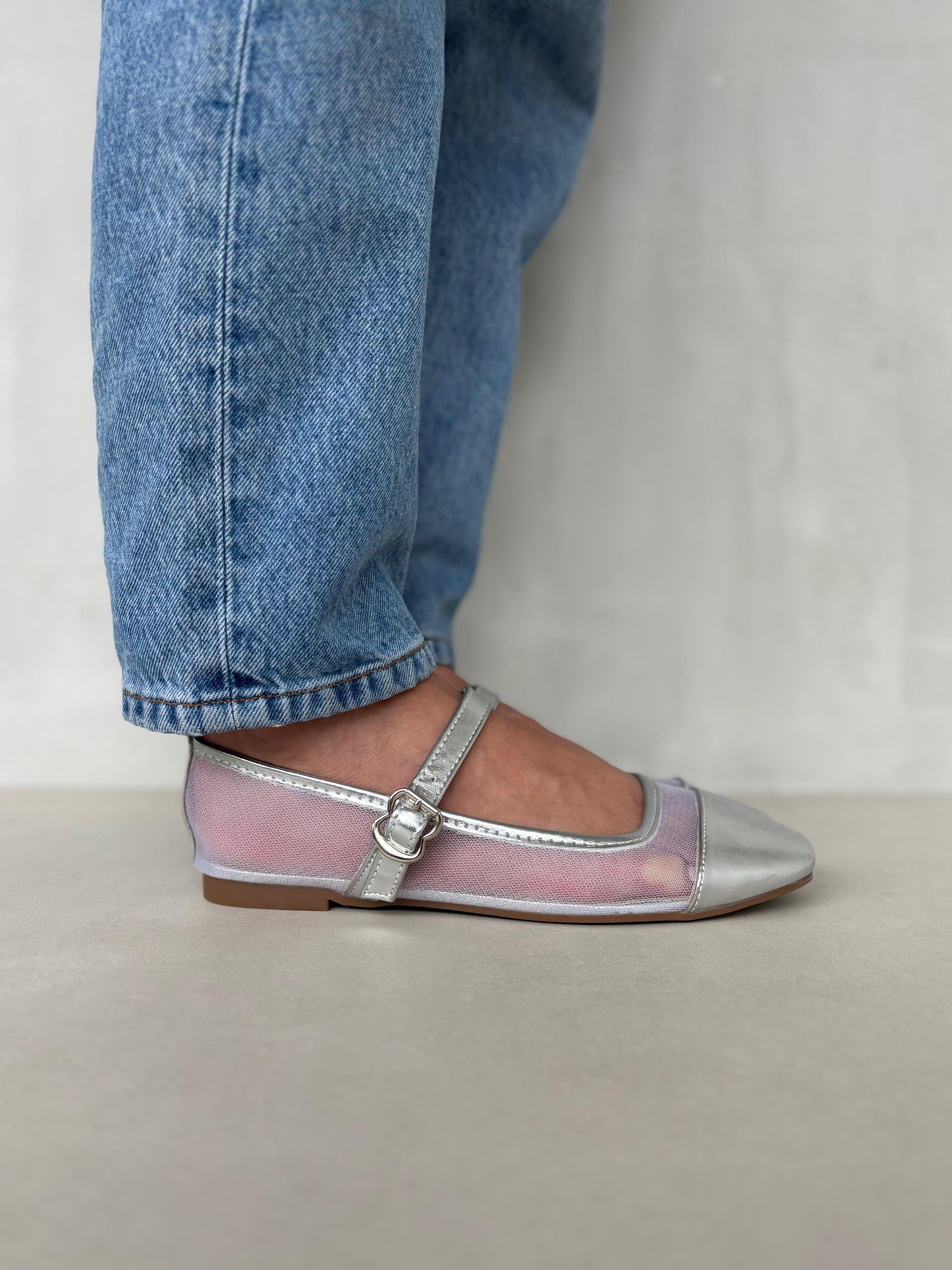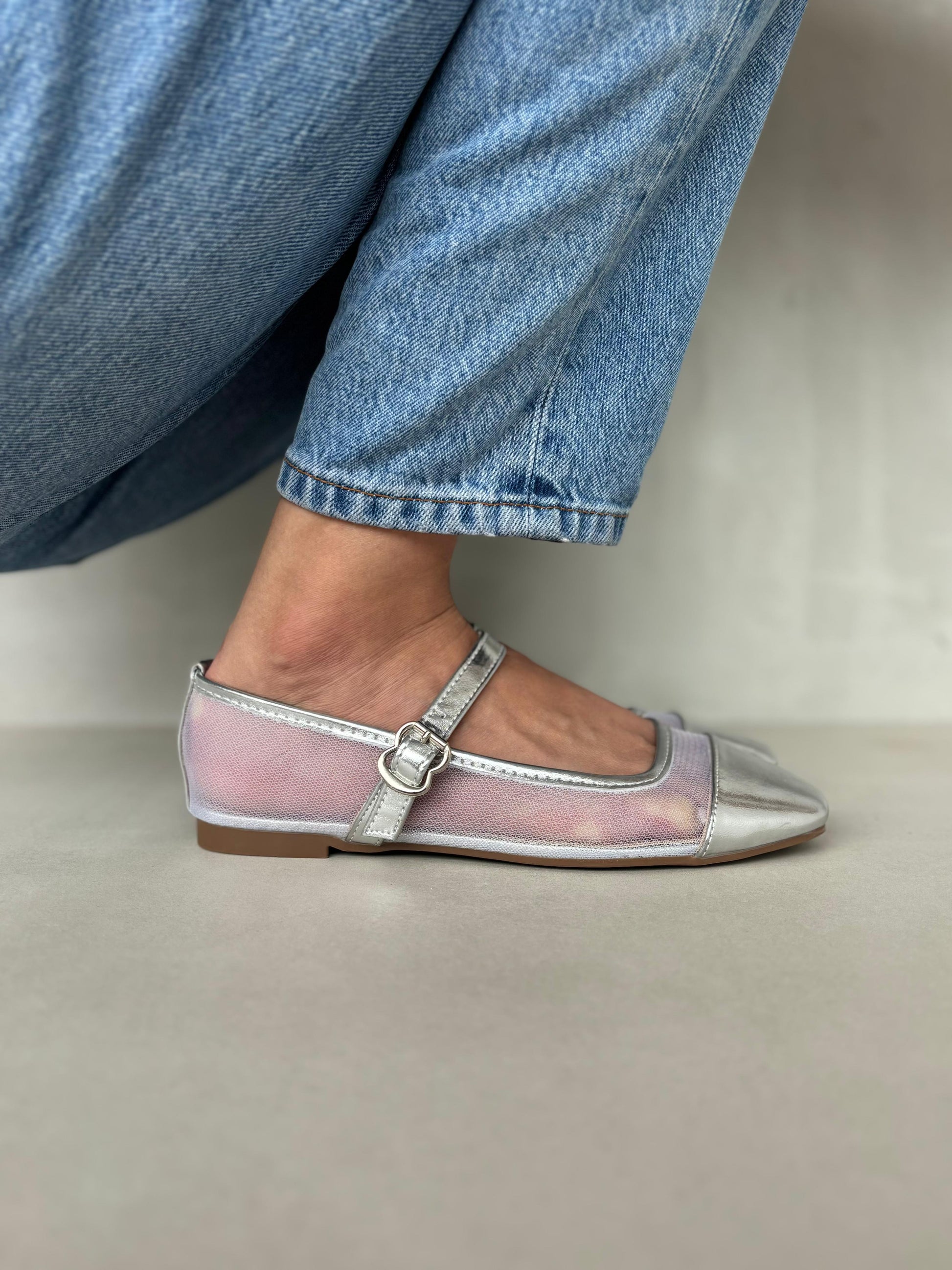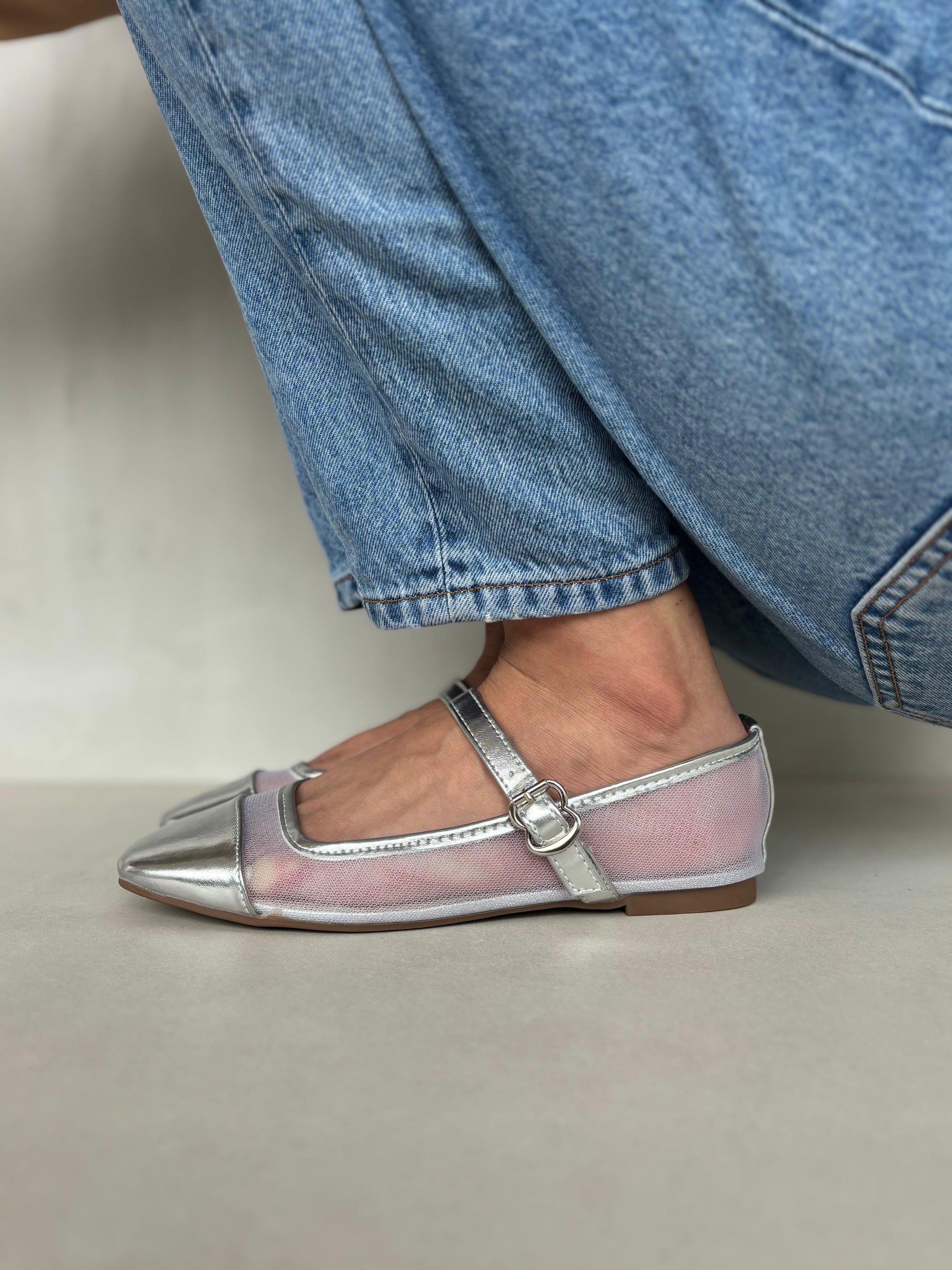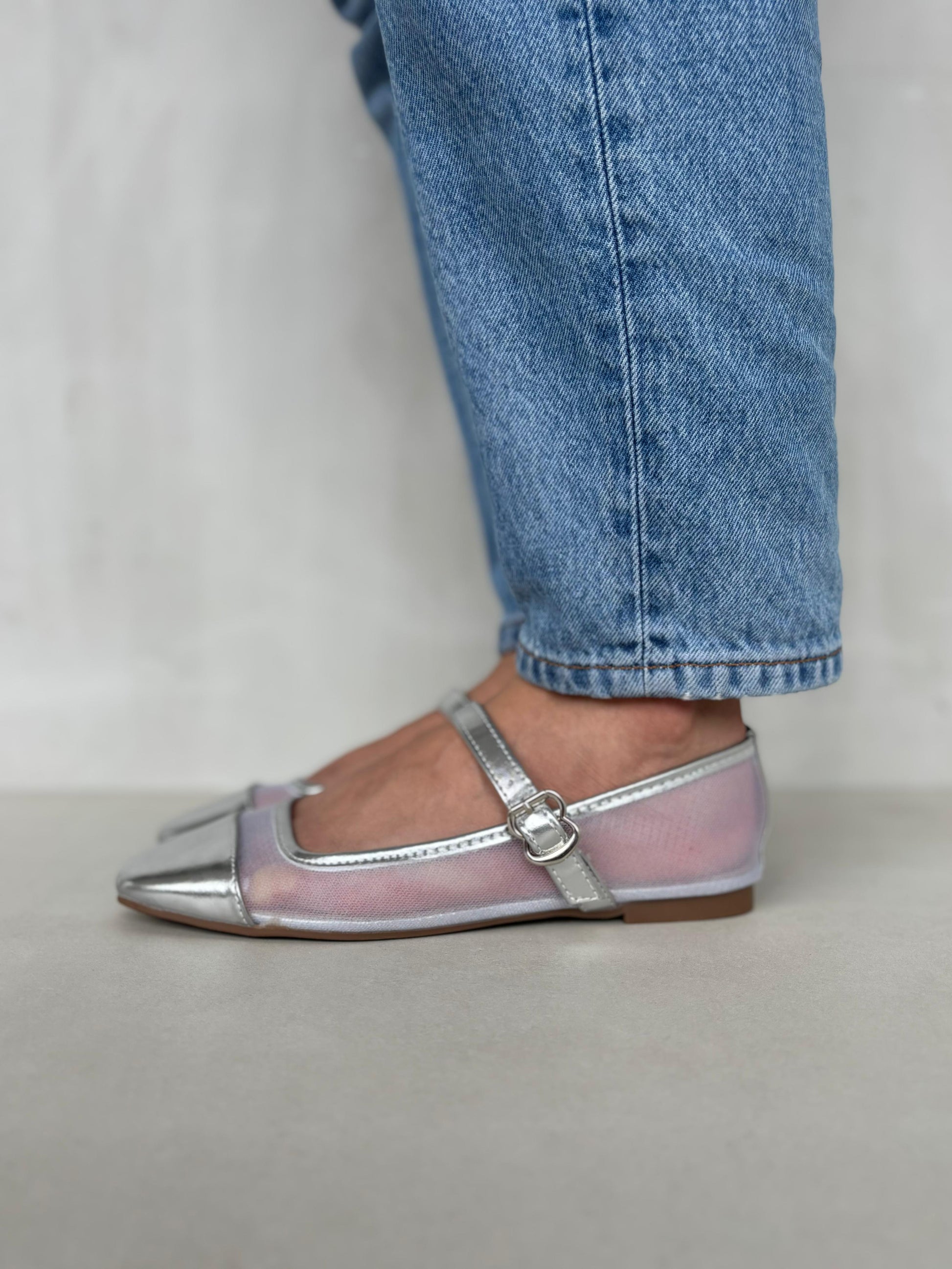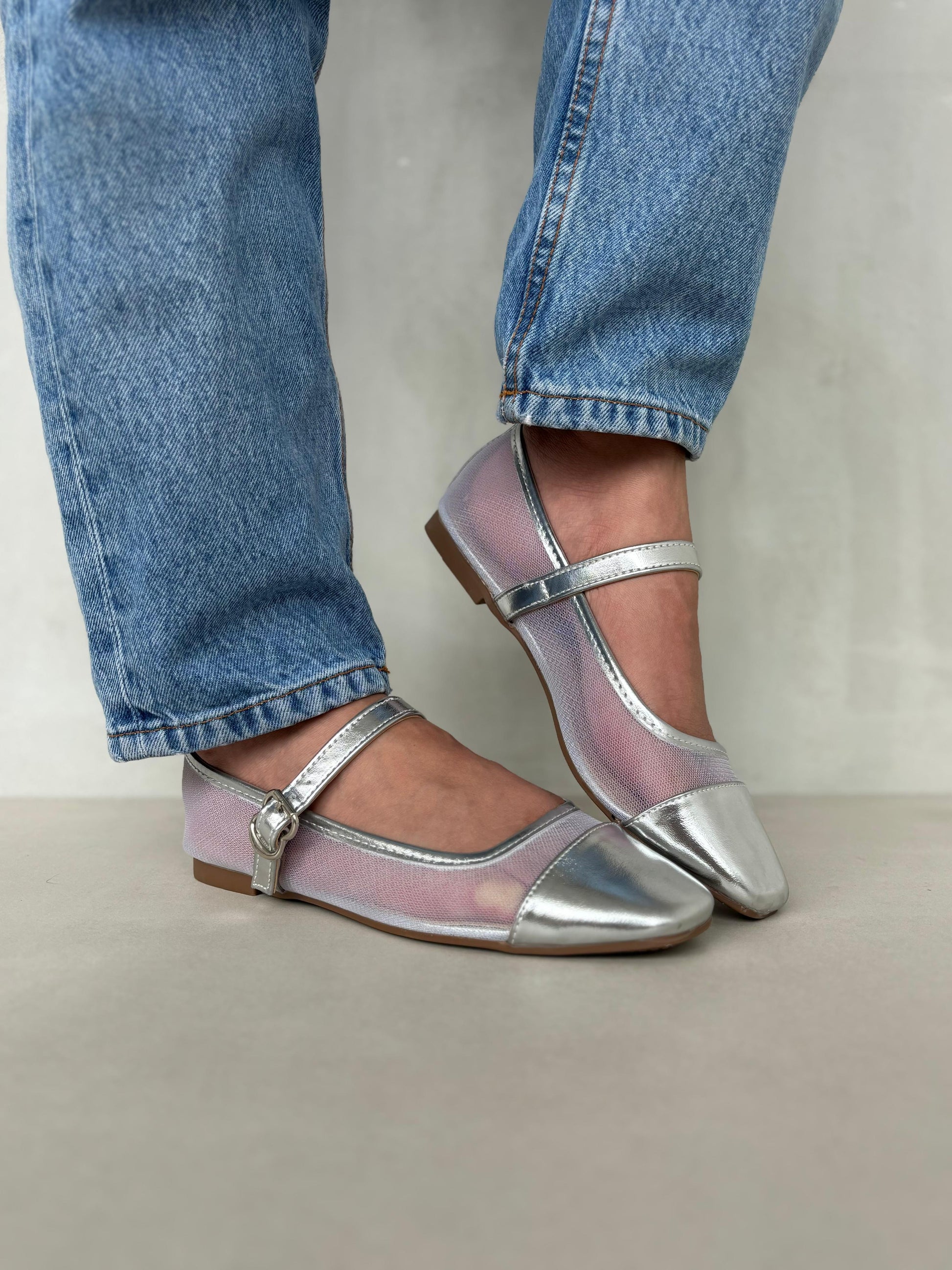 Bailarinas de Malla con Punta Metalizada Plateada – Estilo Ligero y Femenino para Mujer