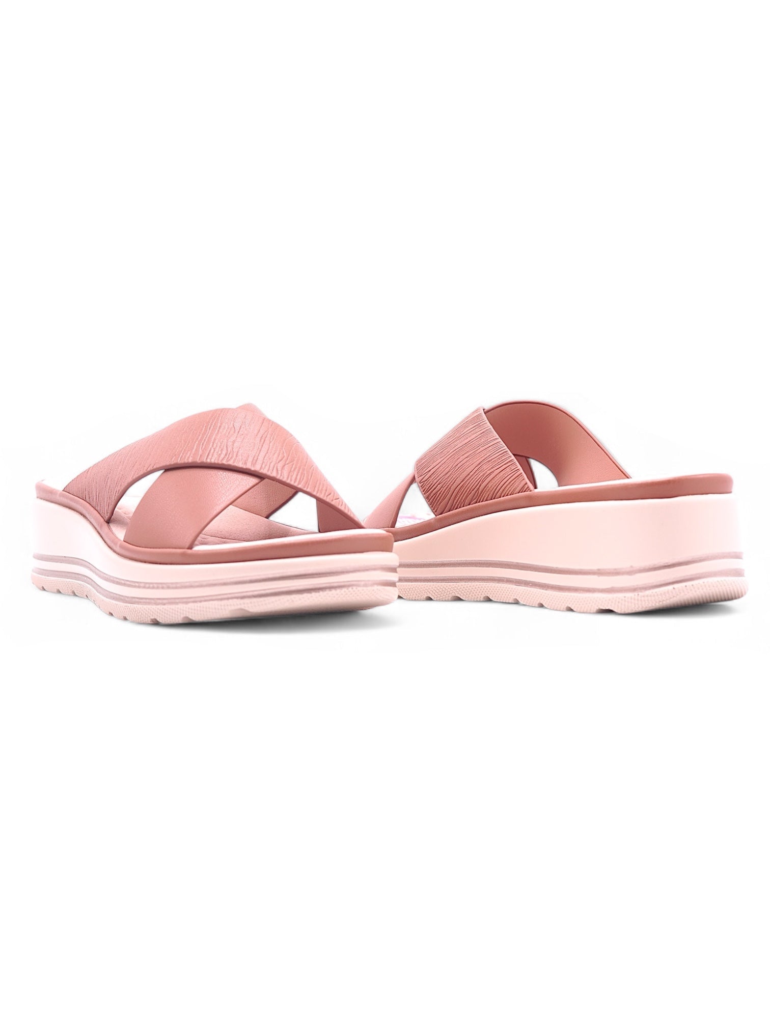 Estas sandalias tipo slide para mujer destacan por su diseño práctico y femenino. Presentan una estructura de plataforma bicolor en tonos rosados, ideal para sumar altura con confort. Las tiras anchas cruzadas al frente brindan soporte sin necesidad de ajuste, permitiendo un calce rápido y sencillo. Gracias a su plantilla acolchada y suela con textura antideslizante, son perfectas para caminar todo el día con estilo sin renunciar a la comodidad.