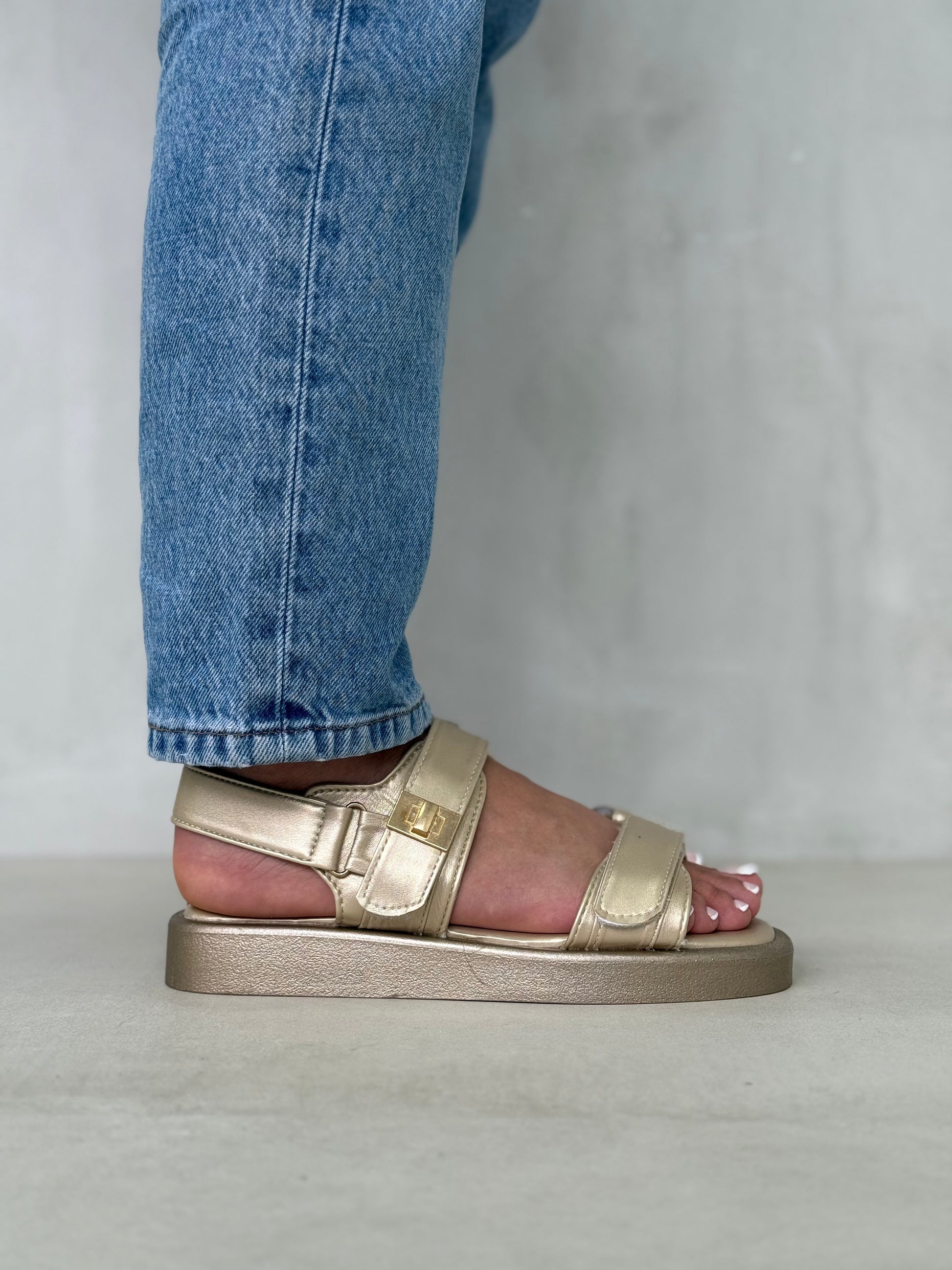 Estas sandalias beige metálicas combinan un diseño moderno con la máxima comodidad. Su acabado brillante y broches ajustables aportan un toque sofisticado sin perder la practicidad del día a día. Ideales para acompañar jeans, vestidos o looks veraniegos con un toque elegante y relajado.