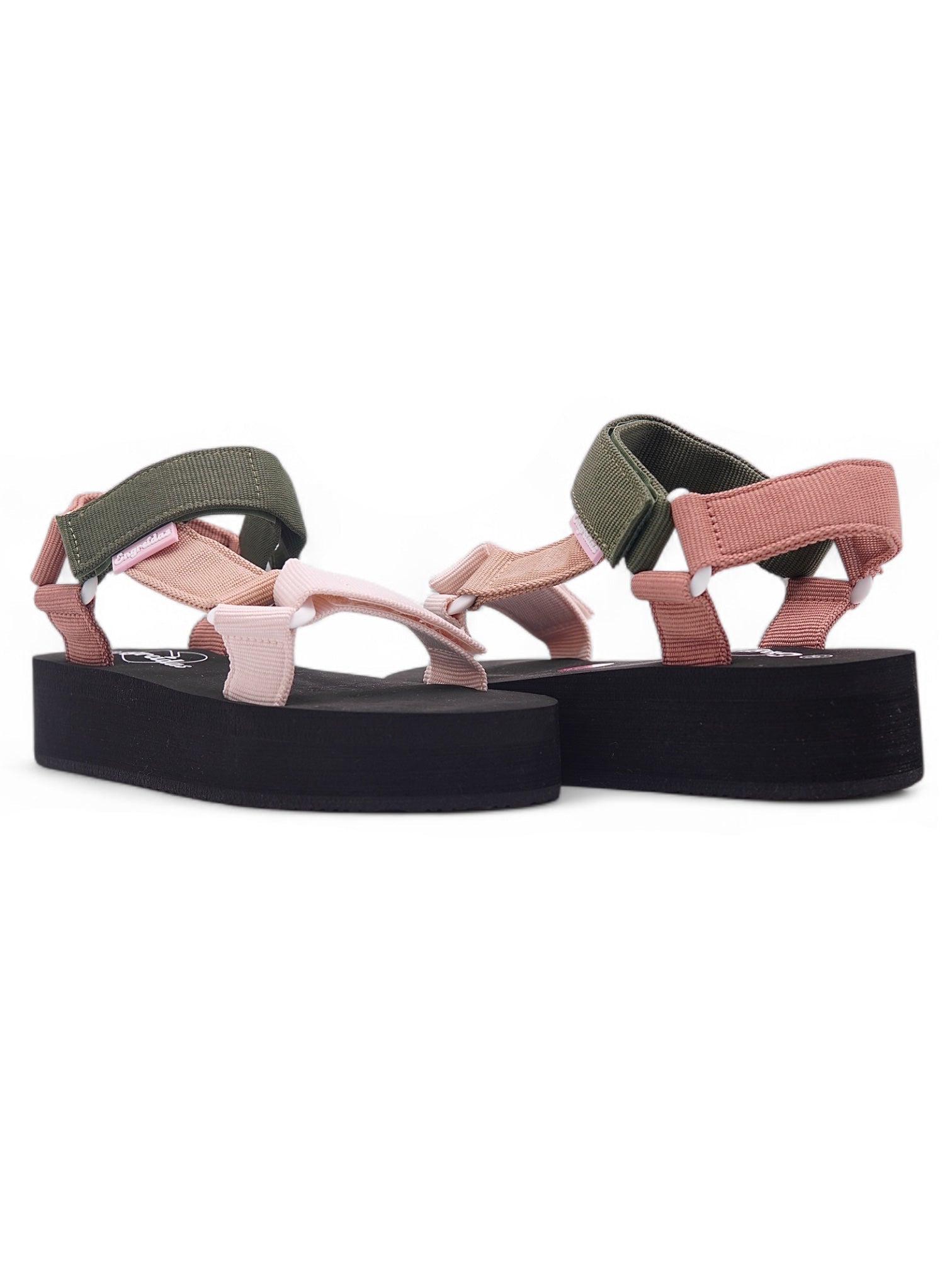 Estas sandalias de plataforma combinan lo mejor del diseño funcional con una paleta de colores suaves y naturales. Con tiras en tonos nude, rosa antiguo, verde oliva y terracota, aportan un look relajado pero moderno. Las correas ajustables de velcro aseguran un ajuste firme, mientras que la plataforma negra brinda altura sin sacrificar el confort. Ideales para paseos urbanos, outfits relajados o para añadir un toque de color discreto a tu look diario.