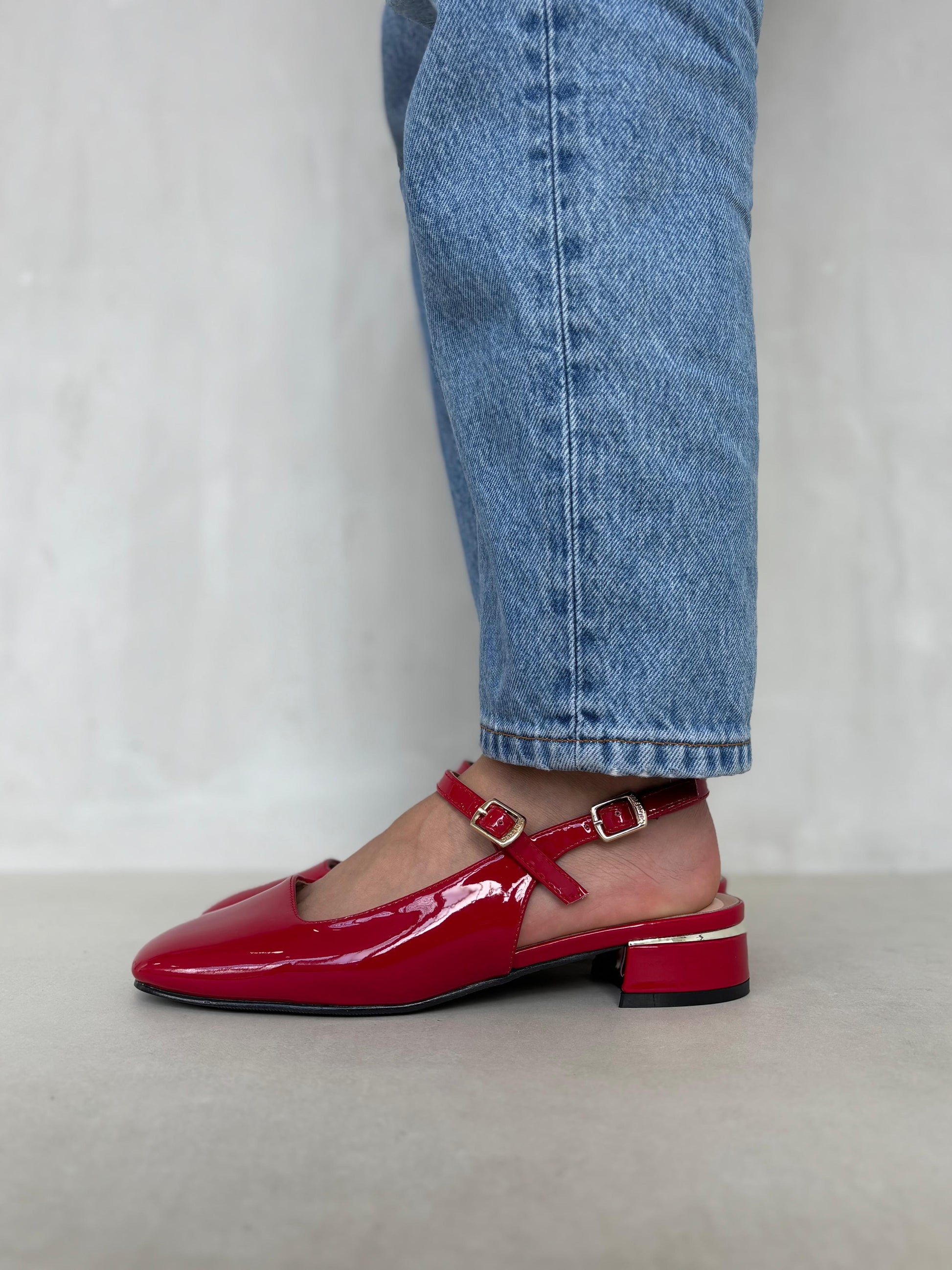 14063 - Zapatos Slingback en Charol Rojo con Tacón Bajo
