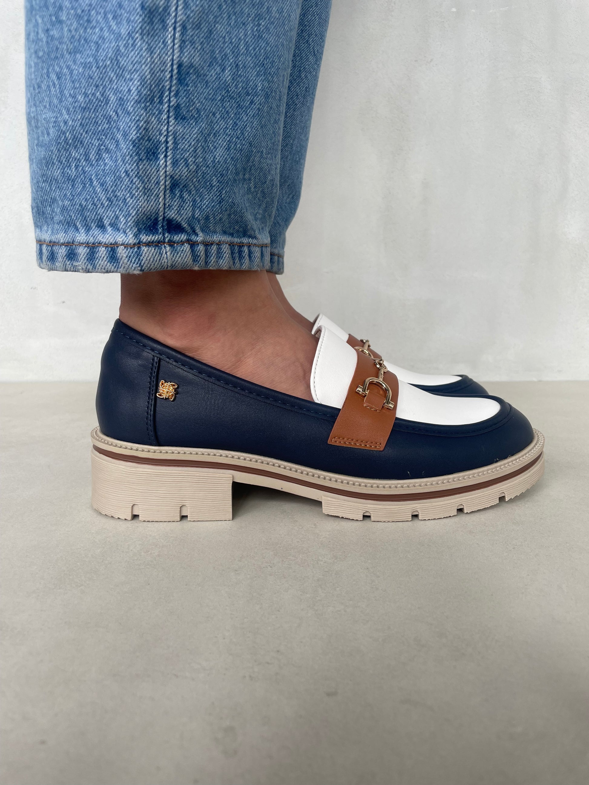 Estos mocasines bicolor en tonos morado oscuro, rosado pastel y coral son la opción perfecta para mujeres que buscan destacar con estilo. Su diseño tipo slip-on los hace prácticos y cómodos para el día a día, mientras que la suela gruesa aporta un toque urbano y moderno. El aplique metálico en el empeine le da ese detalle ejecutivo que eleva cualquier look casual. Una combinación ideal entre comodidad y diseño único.