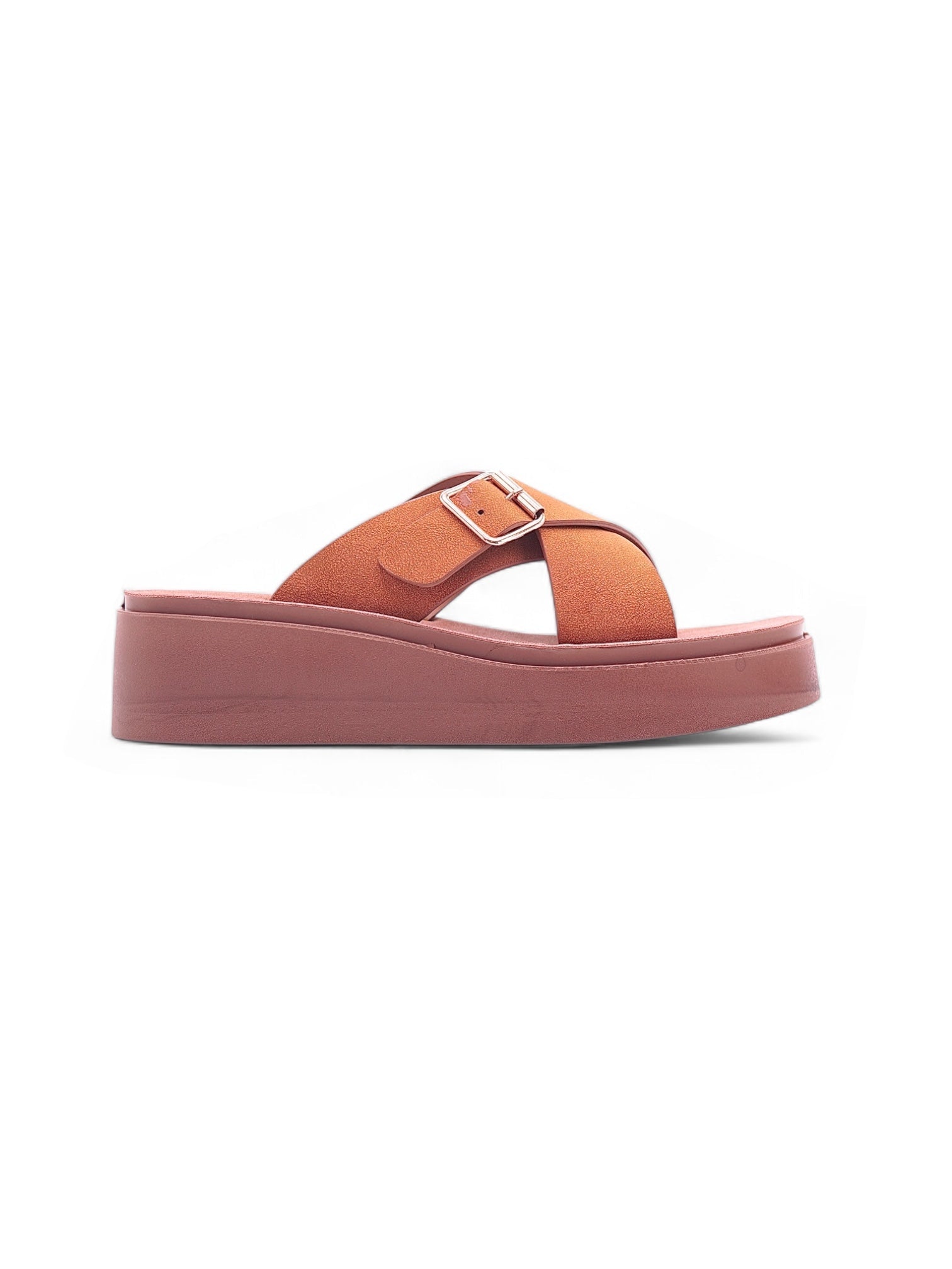 Estas sandalias tipo plataforma para mujer combinan un diseño contemporáneo con funcionalidad. Sus tiras anchas cruzadas en color negro aportan firmeza al andar, mientras que la hebilla metálica añade un toque moderno y ajustable. La suela de plataforma en tono terracota proporciona altura con estabilidad, ideal para uso prolongado sin sacrificar el confort. Perfectas para looks casuales, urbanos o de descanso con estilo.