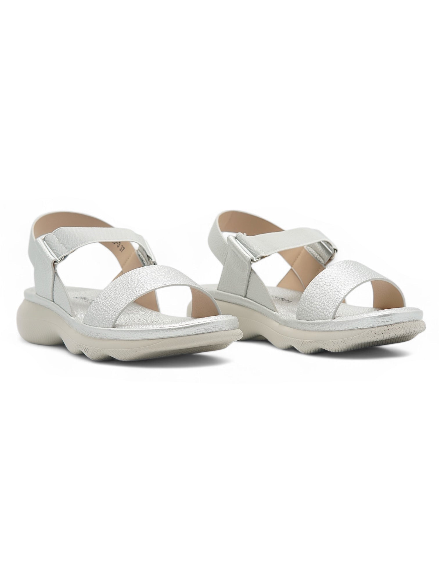 Diseñadas para mujeres dinámicas, estas sandalias en color plata destacan por su estructura ergonómica y su estilo contemporáneo. Cuentan con una suela anatómica que absorbe el impacto al caminar y tiras gruesas que aseguran un ajuste firme y confortable. El acabado metálico aporta un toque moderno y sofisticado, ideal para looks deportivos chic, urbanos o casuales de verano.