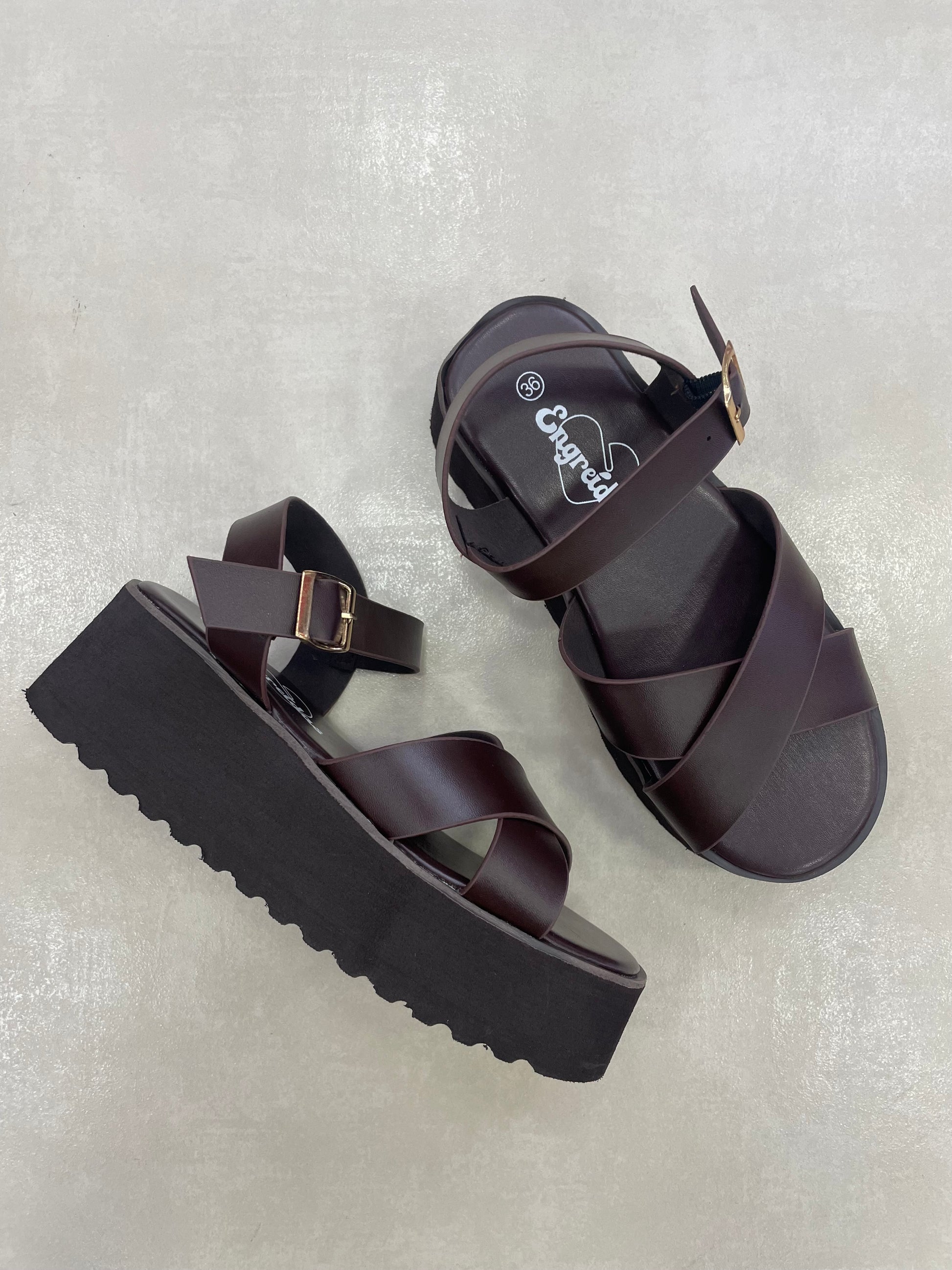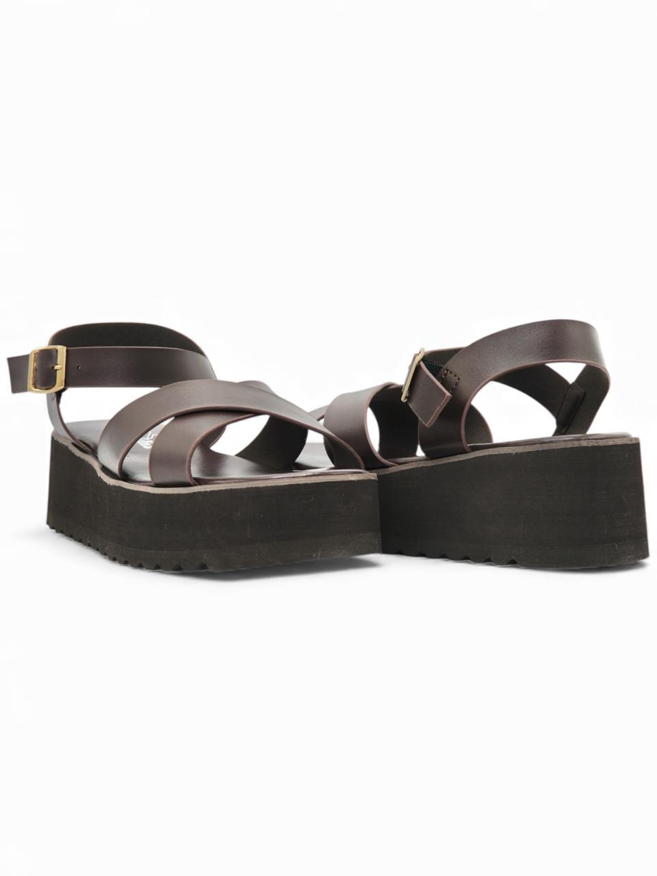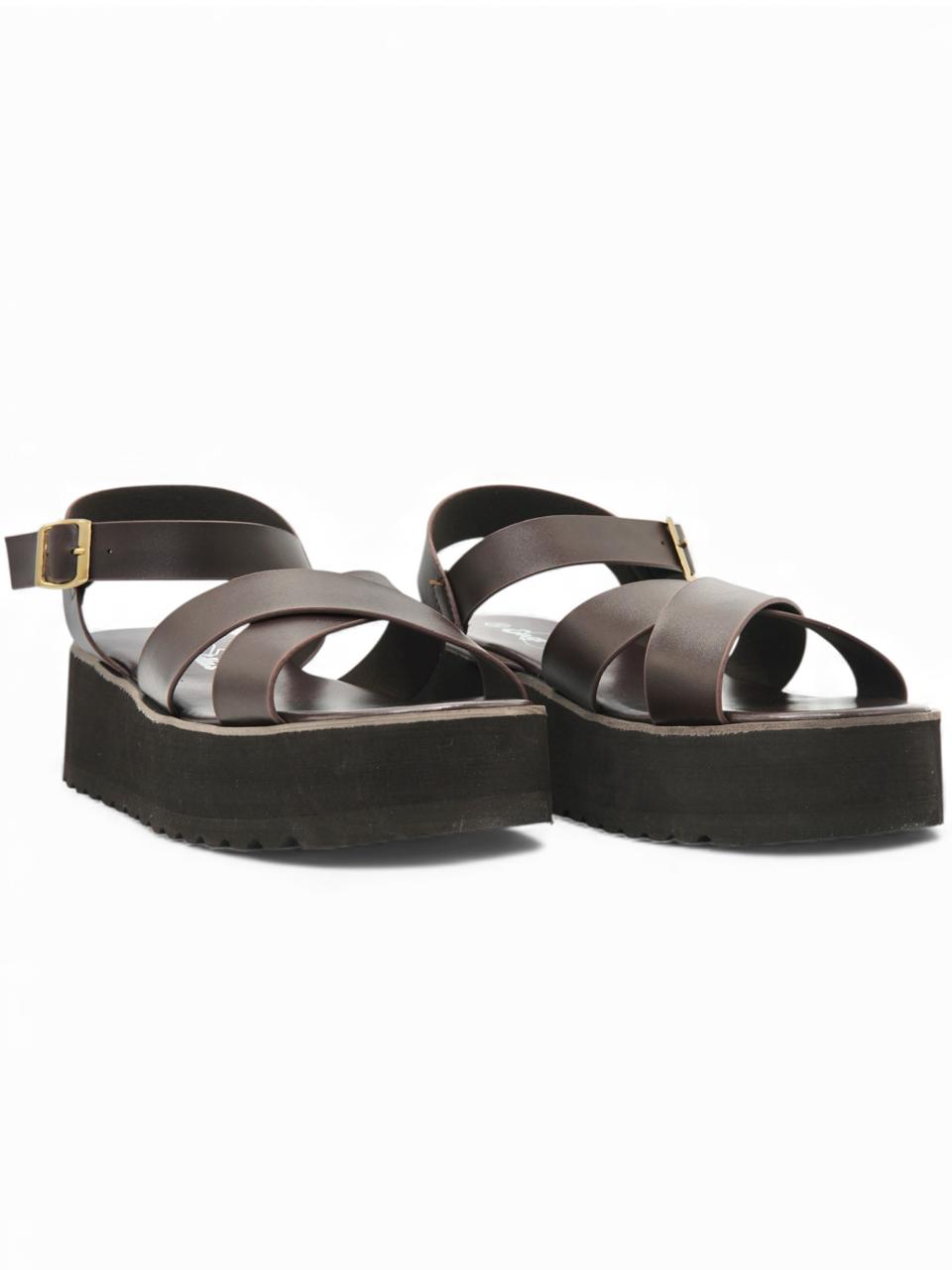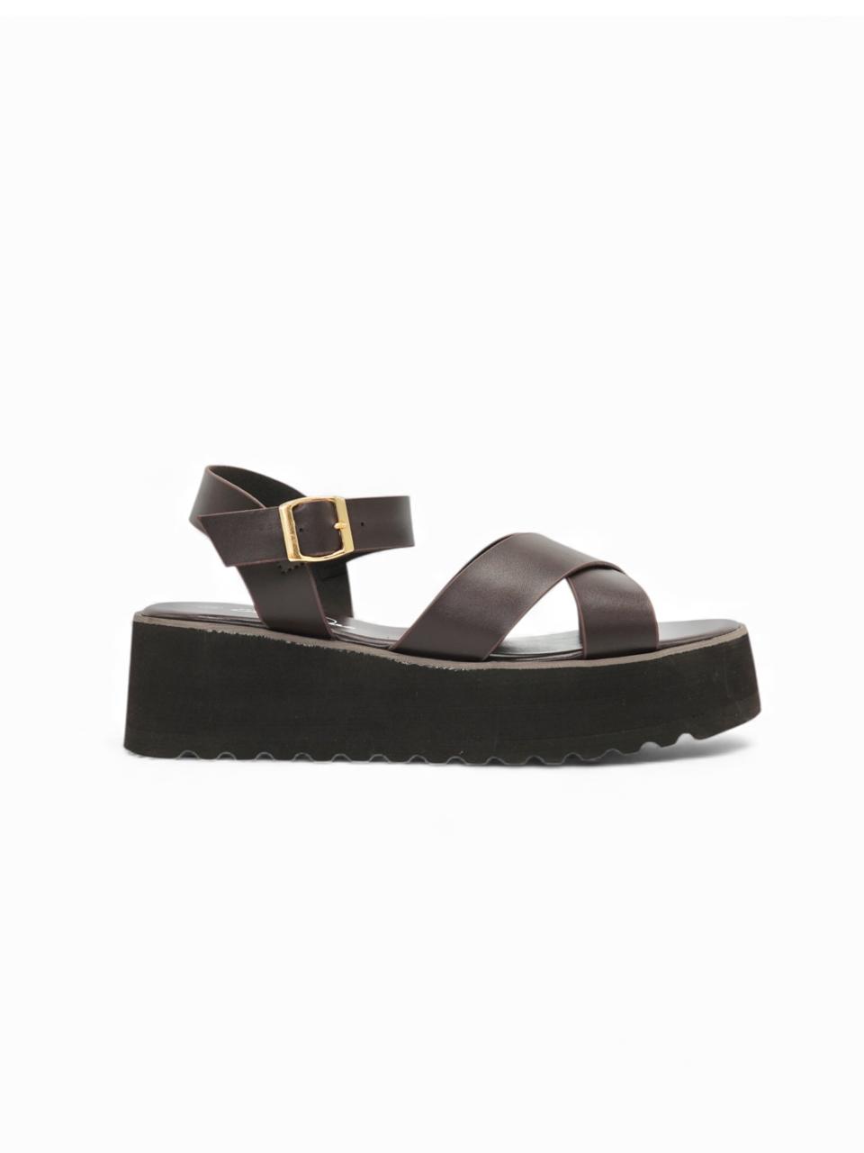 14267 – Sandalias Marrón Oscuro con Plataforma y Cruces en el Empeine