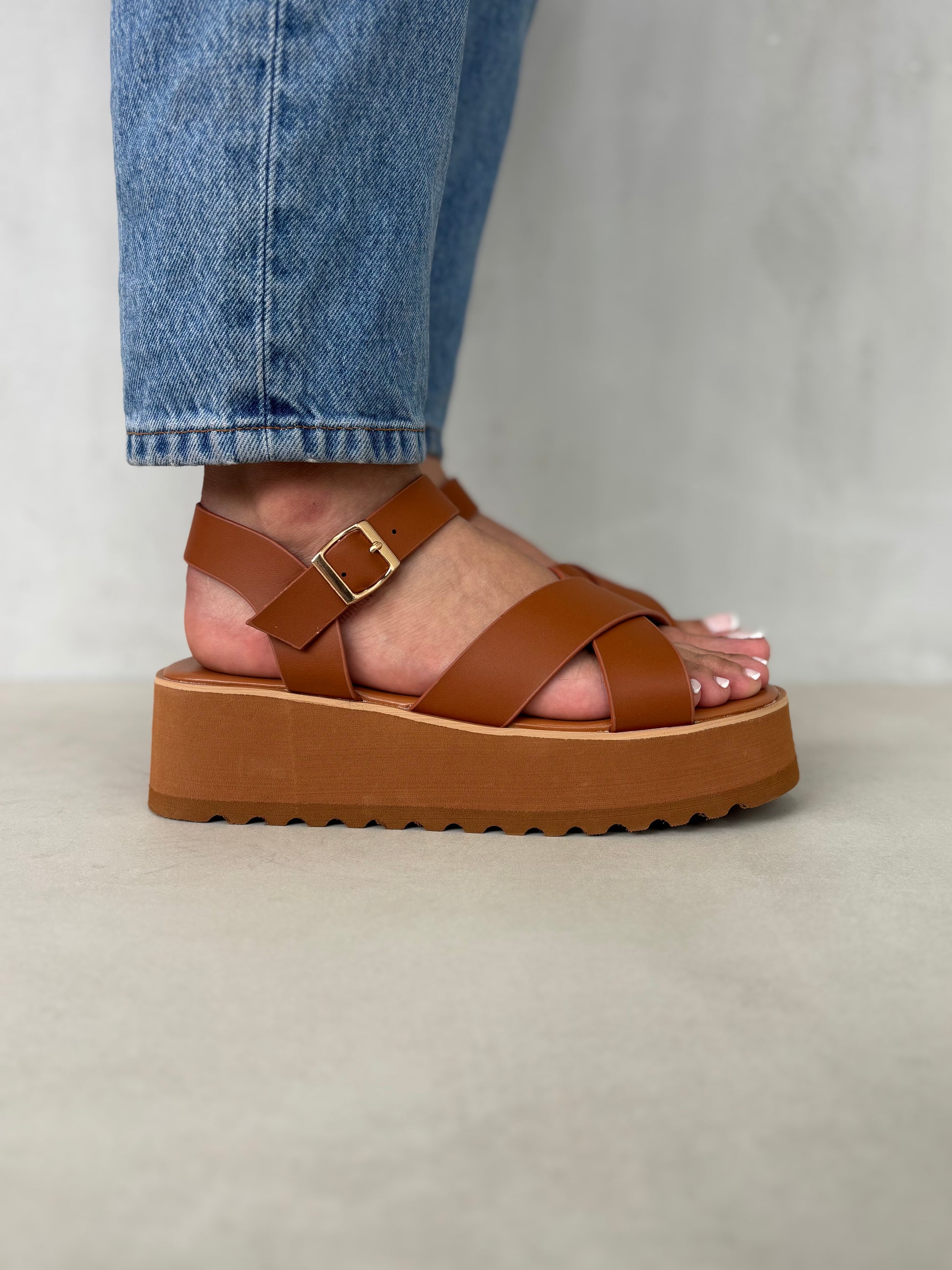 Sandalias Camel con Plataforma y Cruces en el Empeine