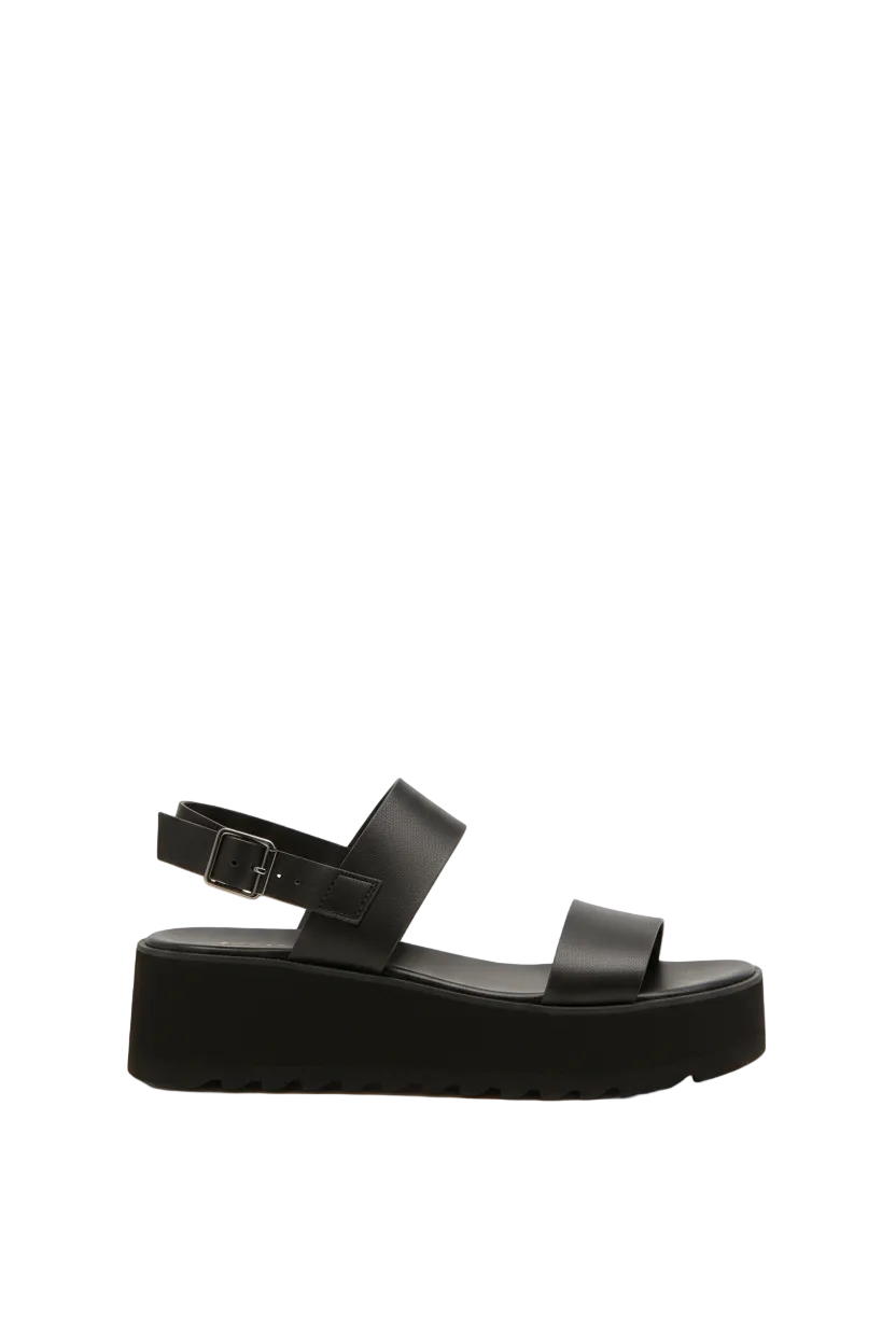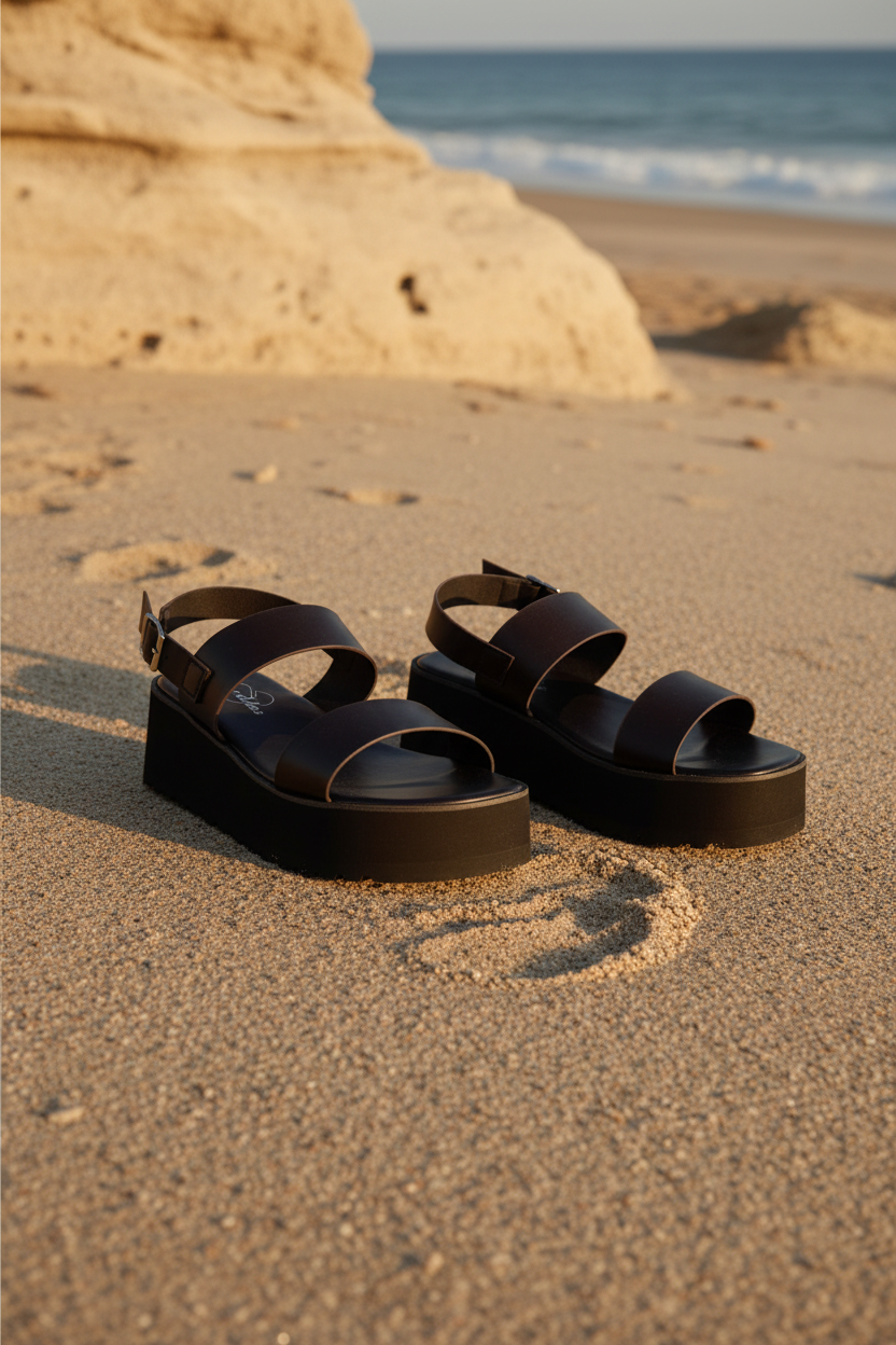 La versatilidad del negro se apodera de este diseño minimalista. Al igual que su versión en camel, estas sandalias destacan por su estética limpia y monocromática que combina con absolutamente todo. La plataforma robusta ofrece altura y estilo urbano, mientras que la correa trasera asegura un ajuste perfecto para caminar con confianza durante todo el día.