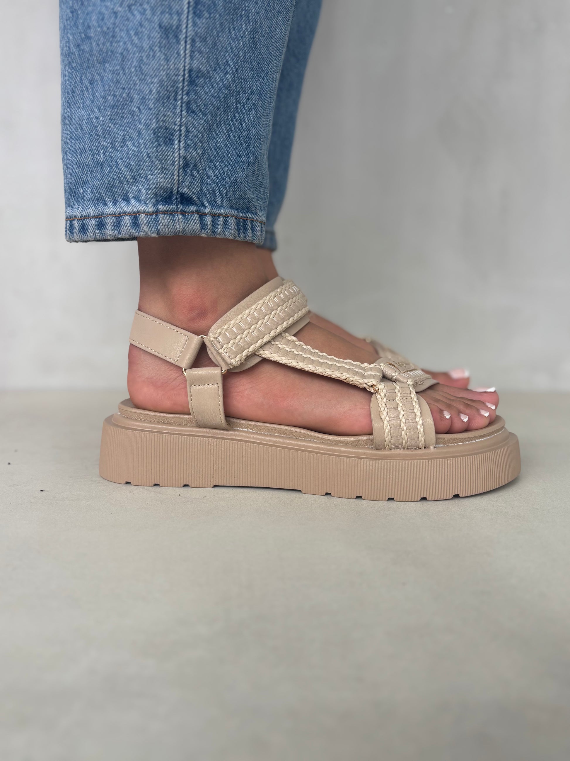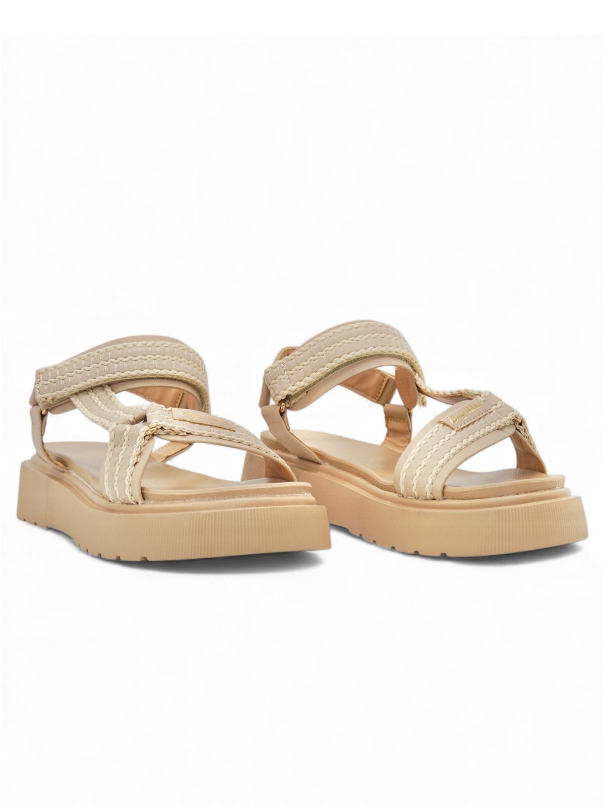 Estas sandalias beige con plataforma y tiras ajustables son el equilibrio perfecto entre confort y estilo contemporáneo. Su diseño liviano y moderno combina una base tipo sporty con detalles en textura suave, ideales para días activos sin renunciar al estilo. Su plataforma proporciona altura y estabilidad, mientras las correas aseguran un calce personalizado.