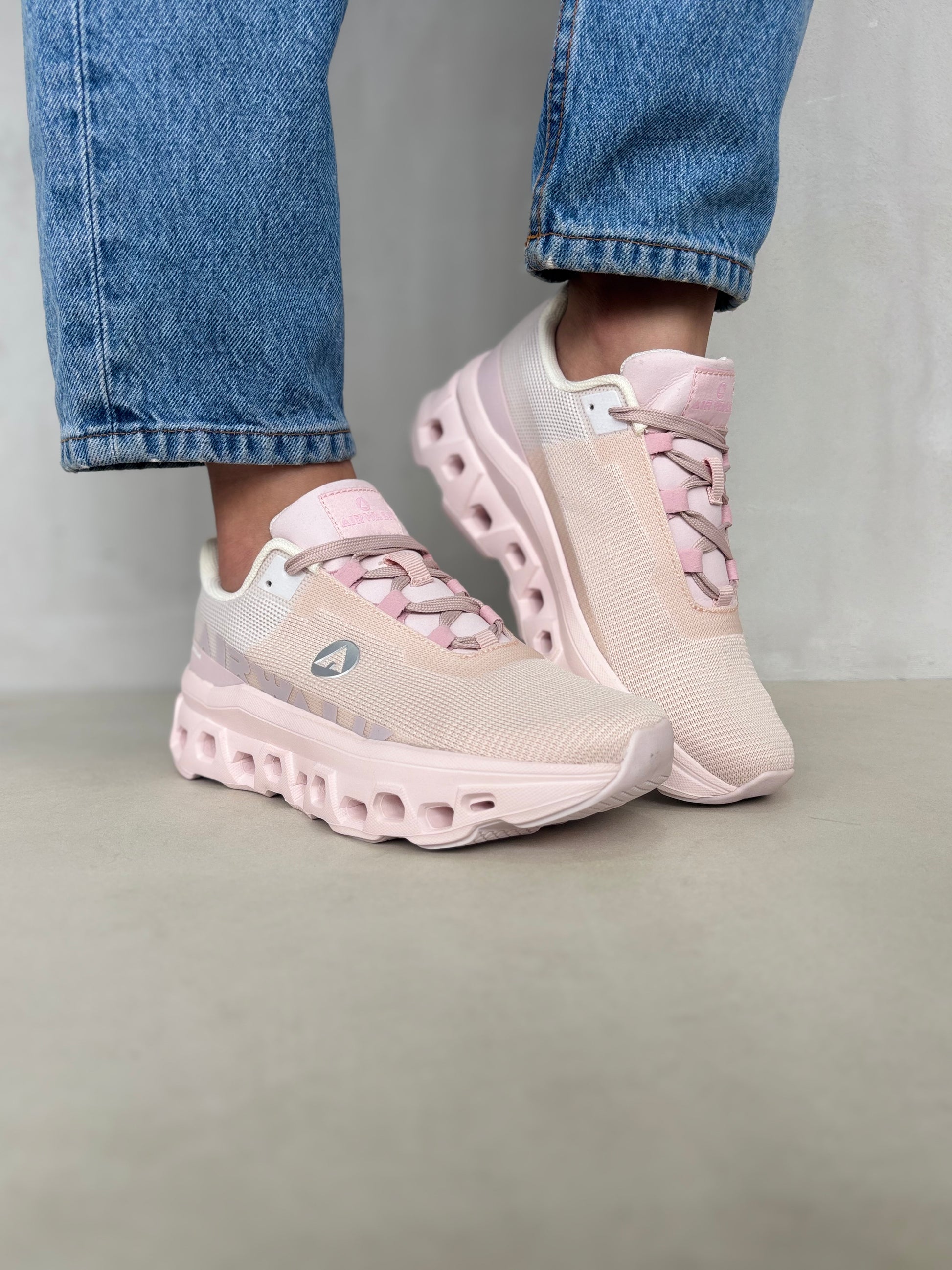 Tejido transpirable y flexible. Suela con sistema de amortiguación y tracción firme. Detalles en tonos nude y rosa para un look moderno. Ideales para actividades deportivas o estilo casual.