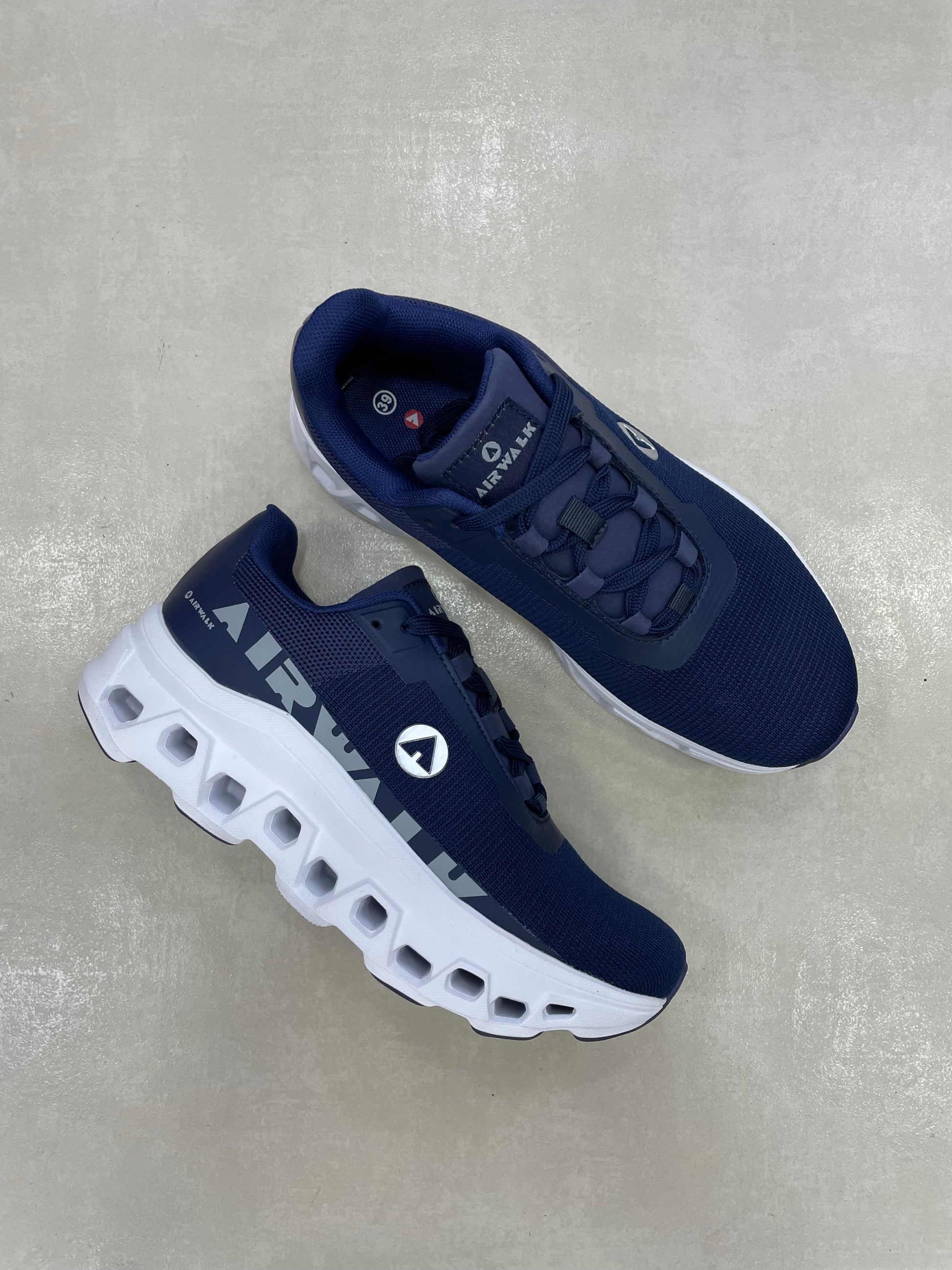 Estos tenis deportivos azul marino Airwalk combinan diseño aerodinámico con tecnología de confort avanzada. Su suela blanca de estructura alveolar mejora la amortiguación y el rebote, brindando estabilidad y ligereza en cada paso. Ideales para entrenamientos, caminatas o un look deportivo urbano con estilo contemporáneo.