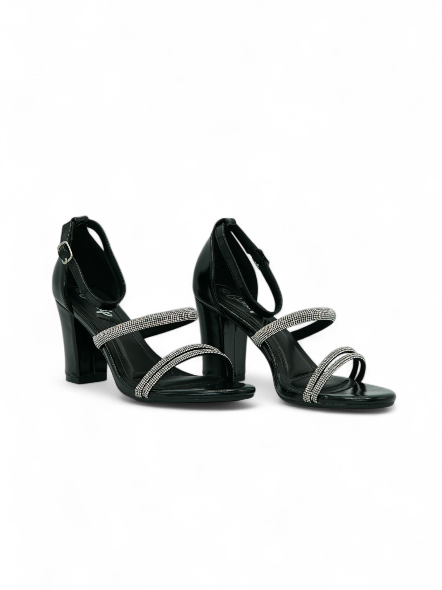14331 – Sandalias Negras con Tacón Alto y Detalle Brillante