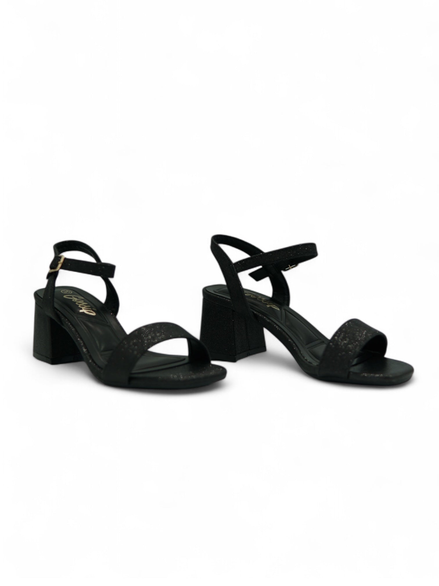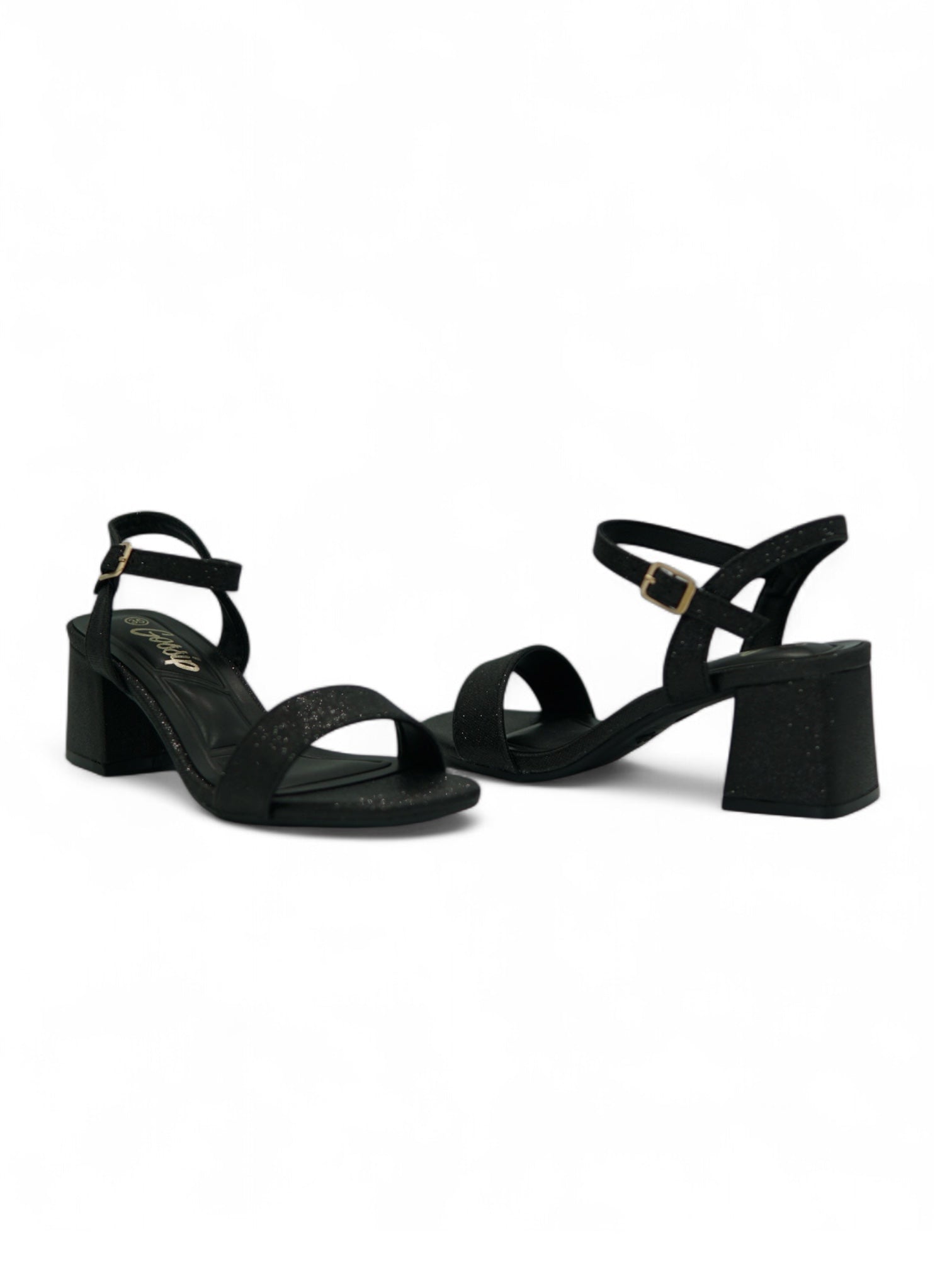 14335 – Sandalias negras con glitter y tacón cuadrado para dama