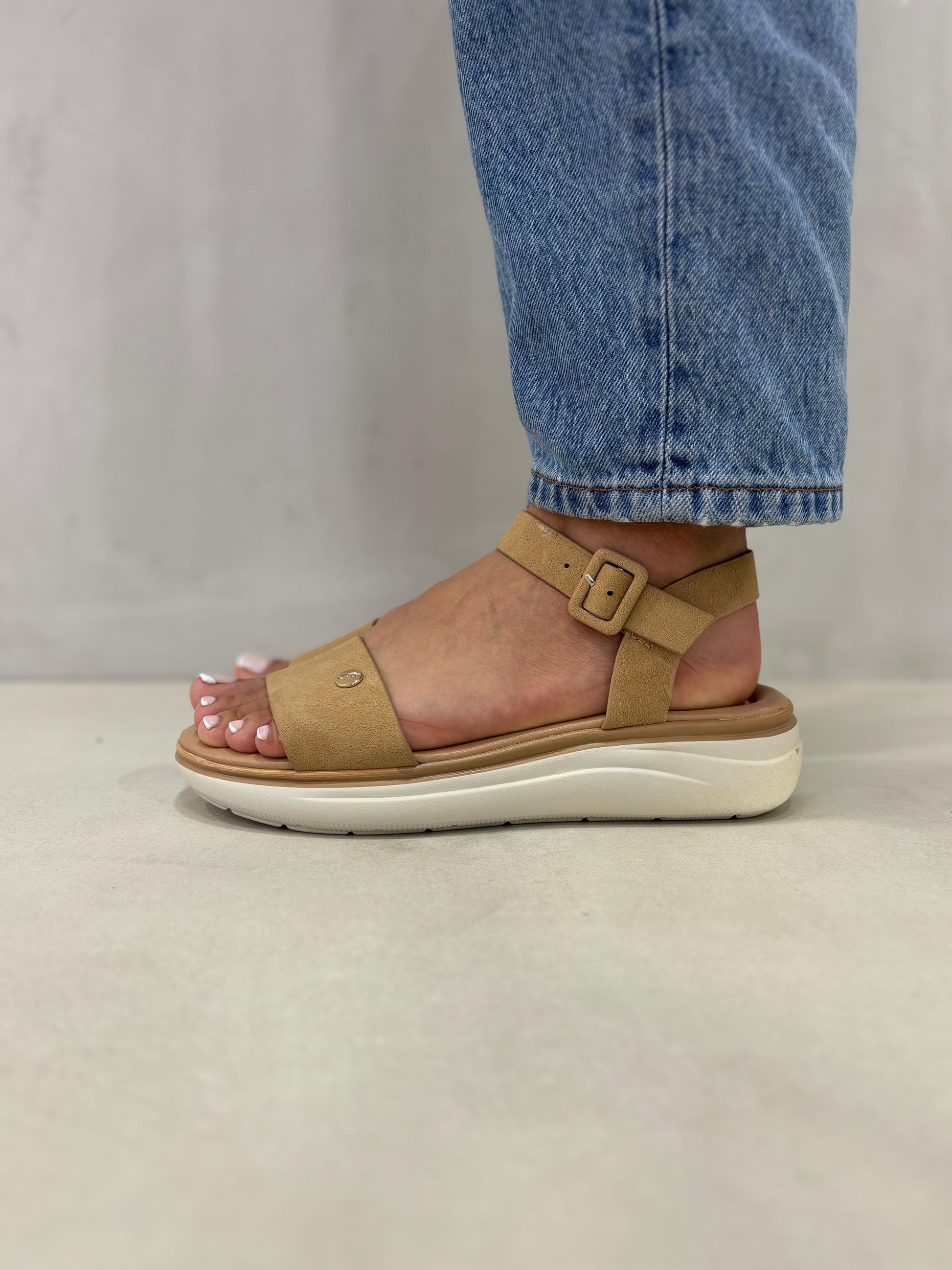 14369 – Sandalias Camel con Plataforma Ligera y Hebilla Ajustable