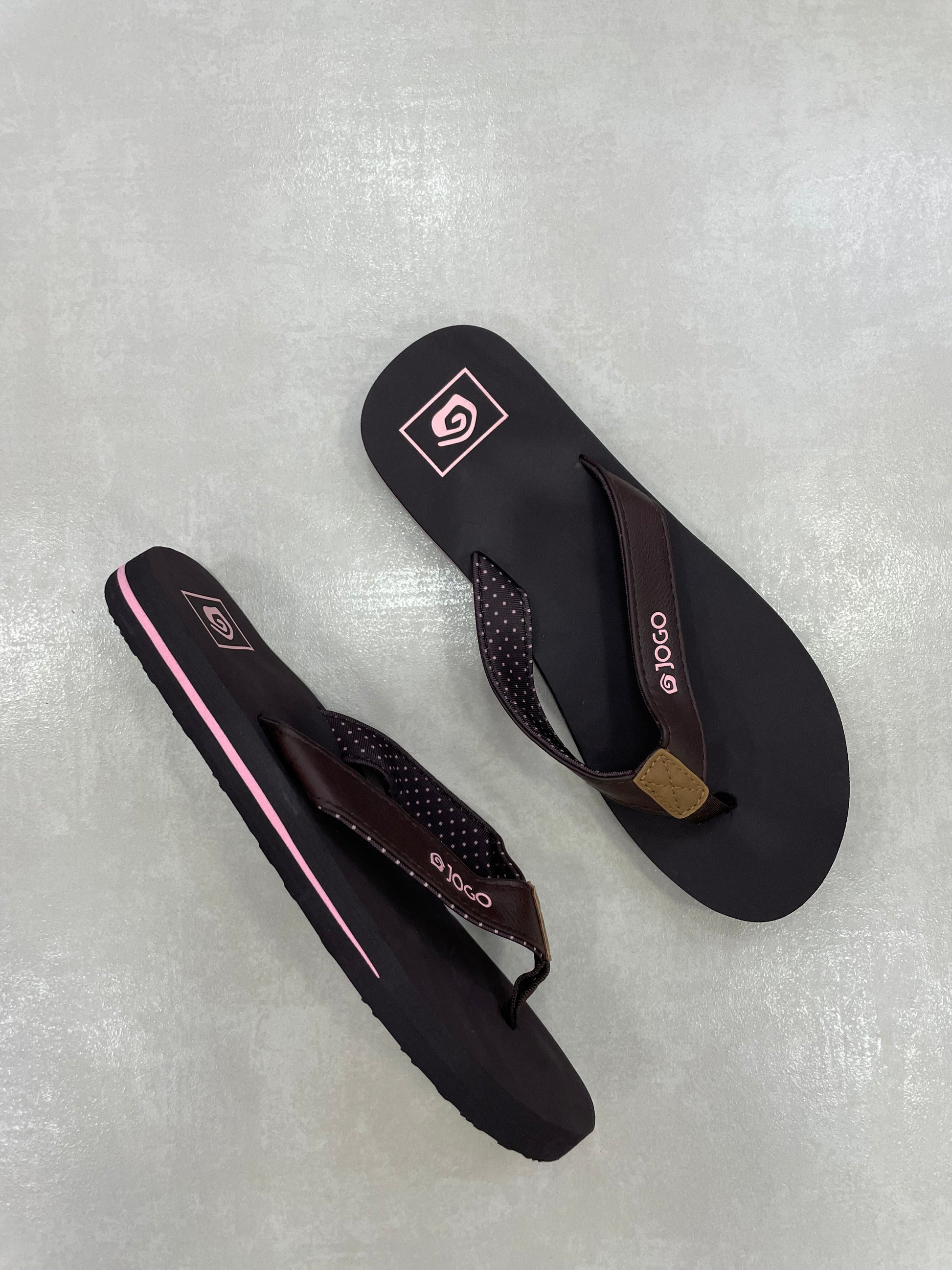 14390 – Chancletas Marrón Oscuro con Detalle Rosa