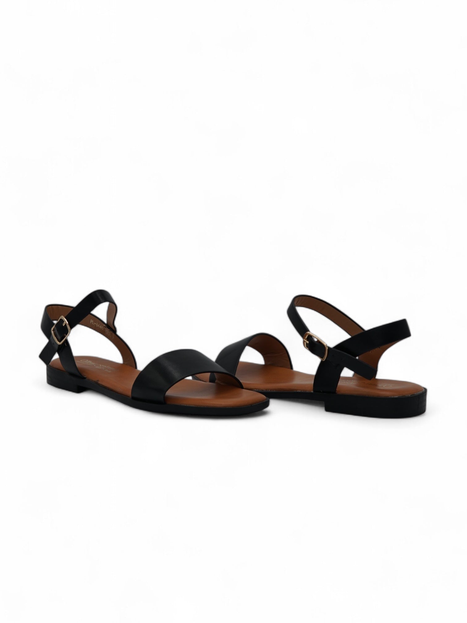 14410 – Sandalias Negras con Hebilla Dorada y Suela Baja