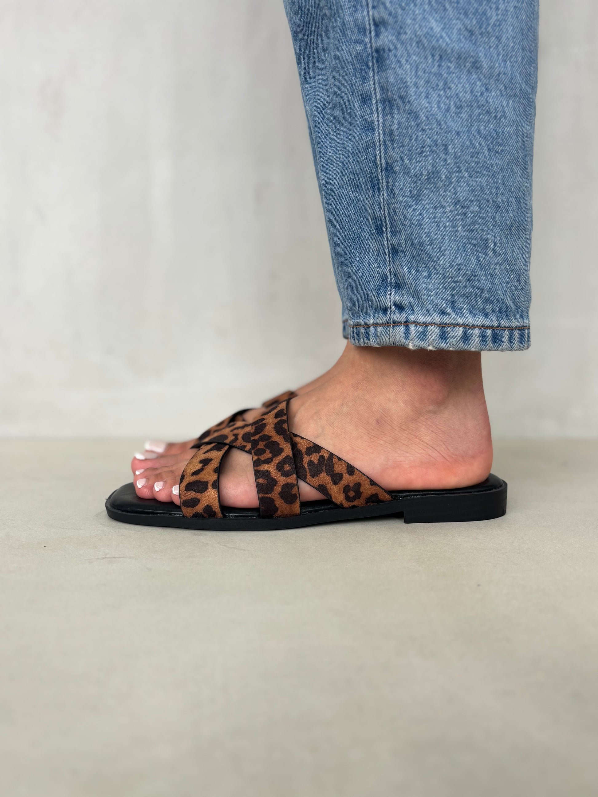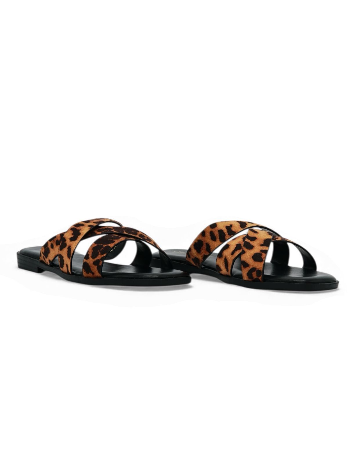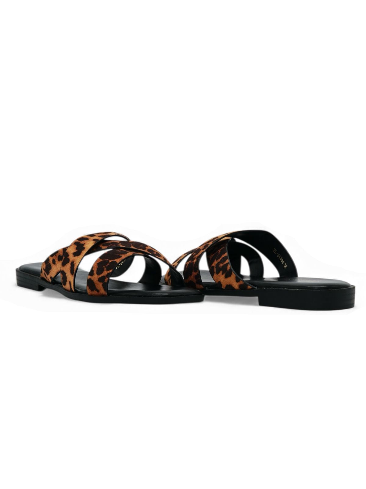 Sandalias Animal Print Marrón con Tiras Cruzadas