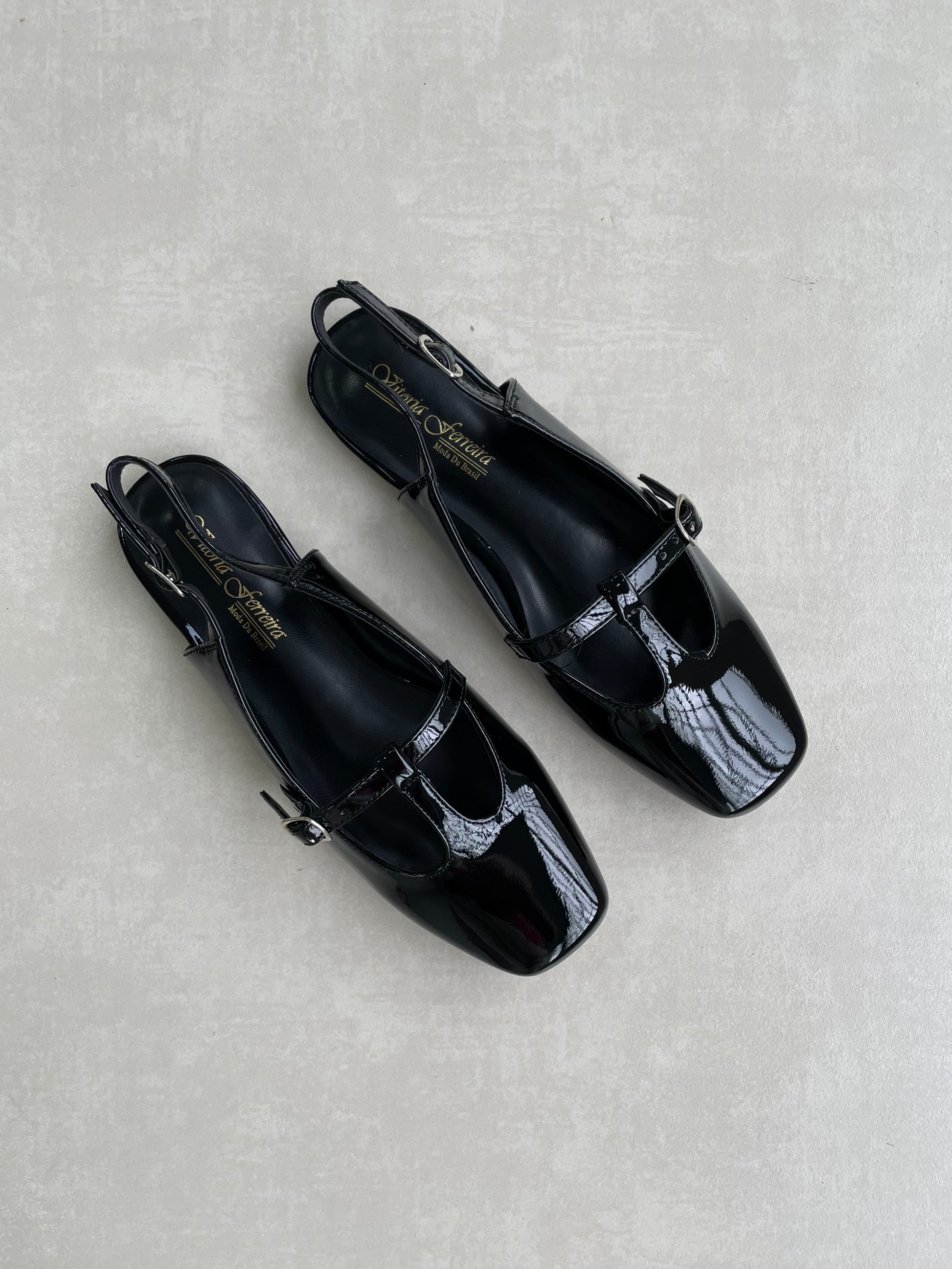 14454 – Bailarinas Negras en Charol con Hebilla Lateral