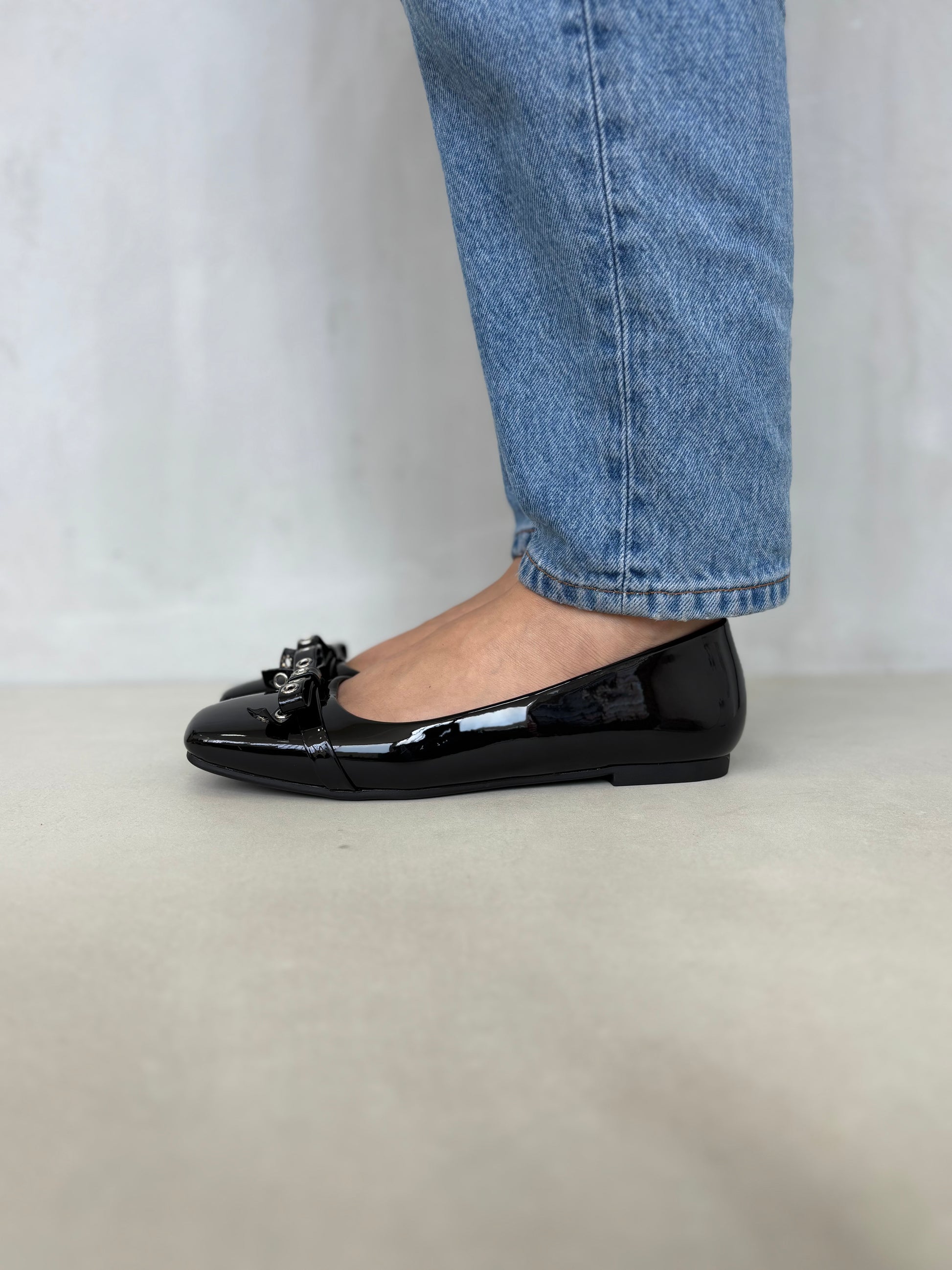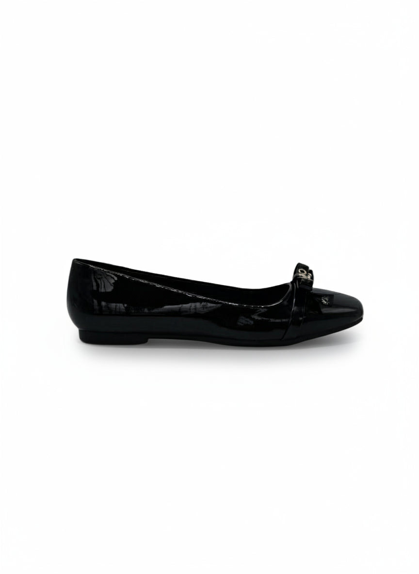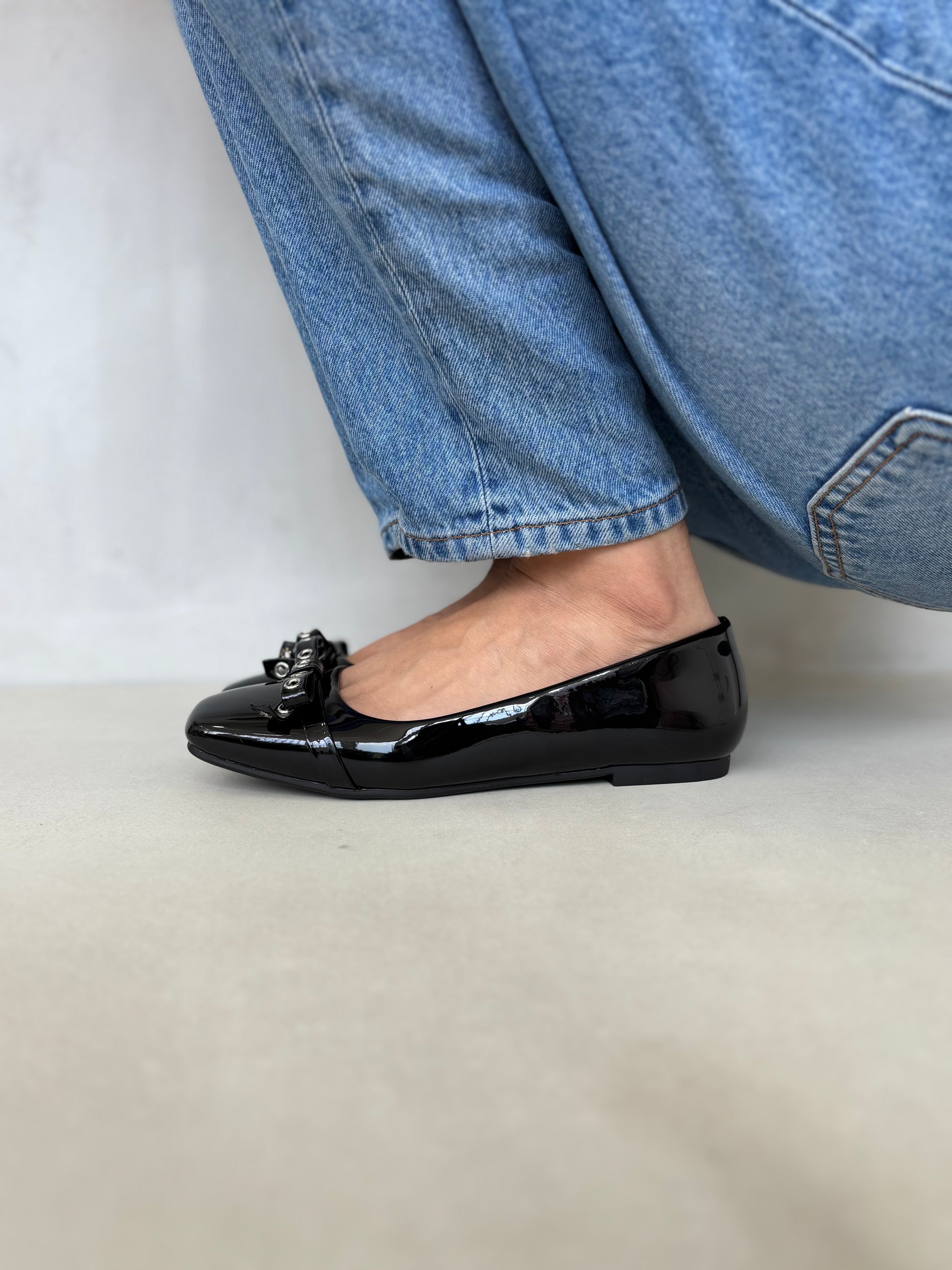 14457 – Bailarinas Negras de Charol con Lazo Frontal