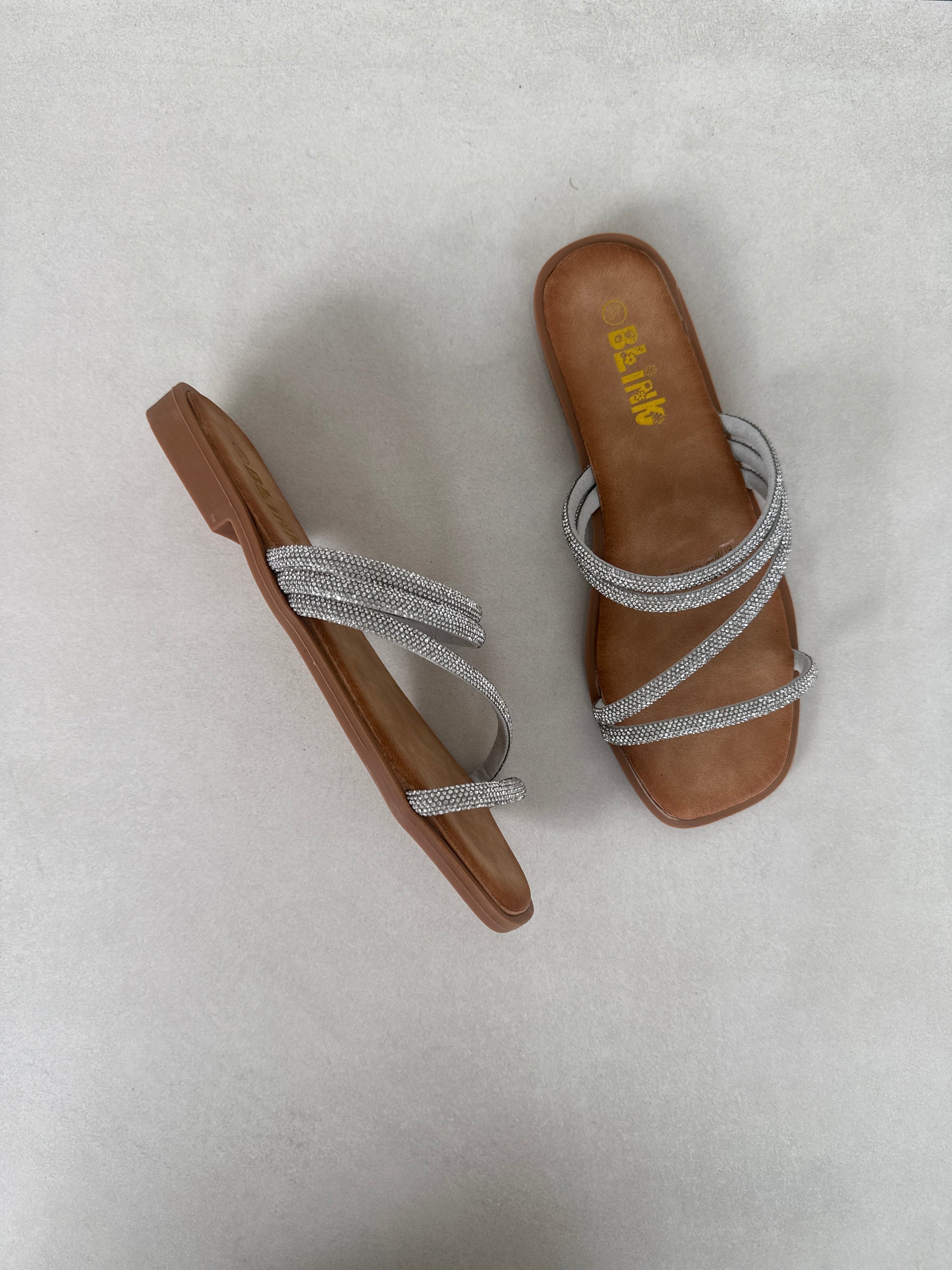 Estas sandalias plateadas son el complemento perfecto para elevar cualquier look. Su diseño de tiras finas con acabado brillante agrega un toque glamuroso, mientras la plantilla suave ofrece confort en cada paso. Ideales para ocasiones especiales, cenas o para dar un toque elegante a tu atuendo diario.