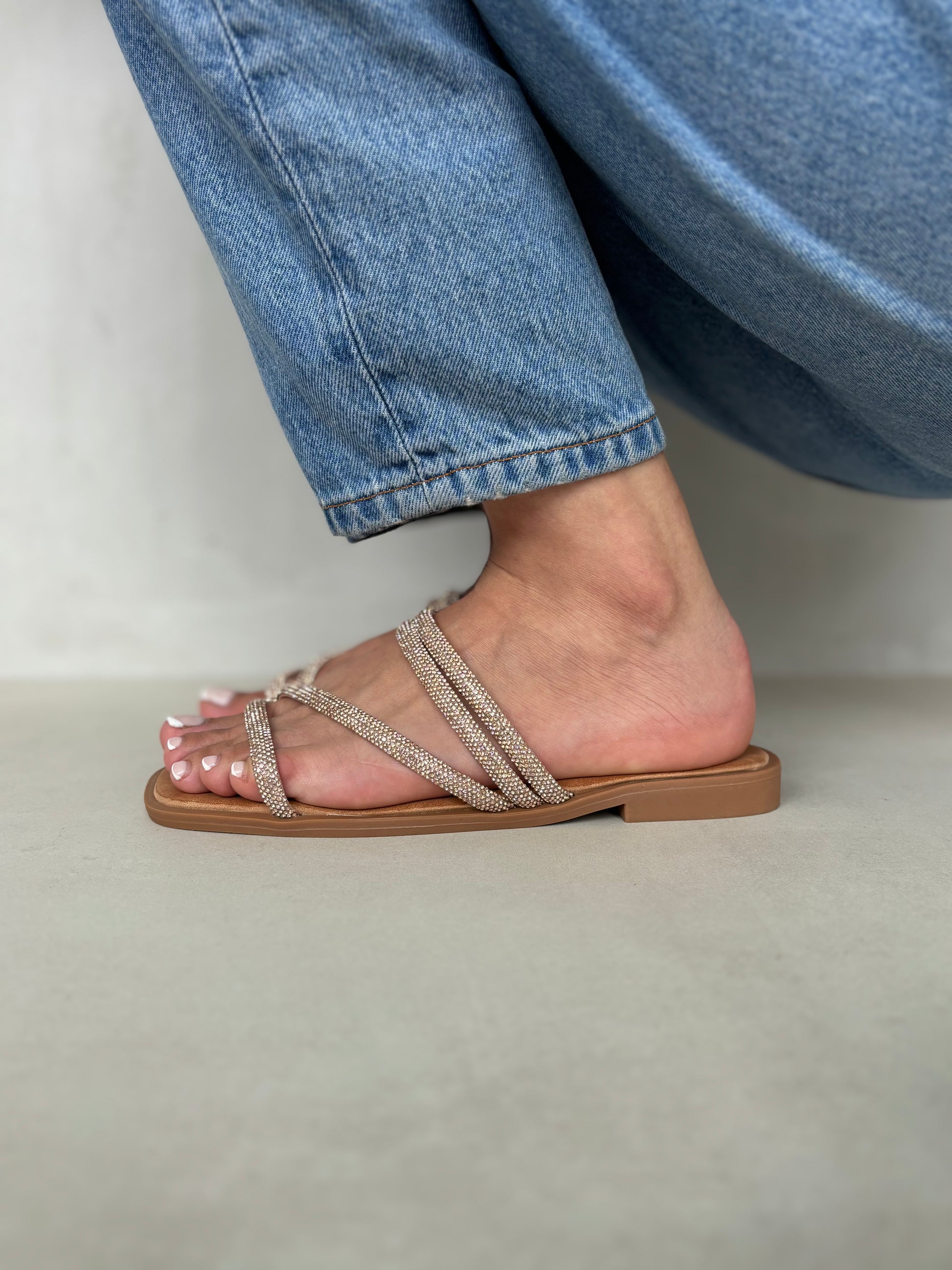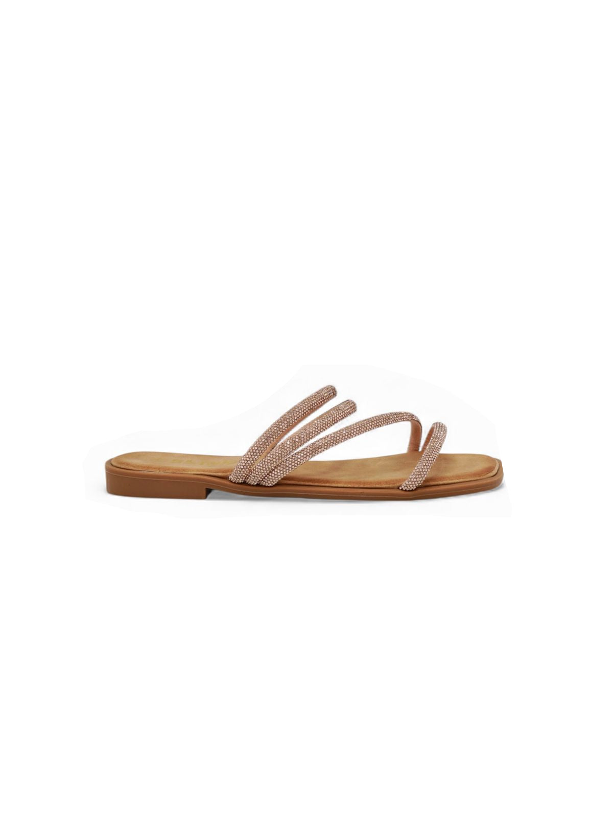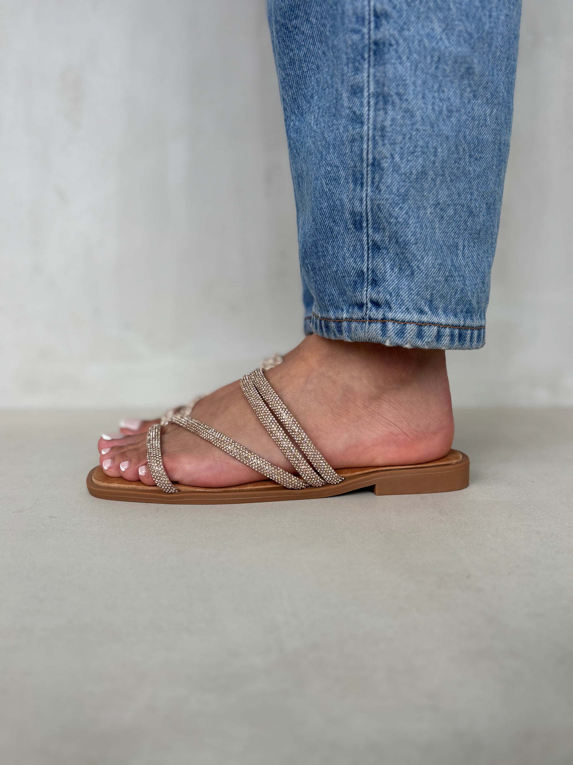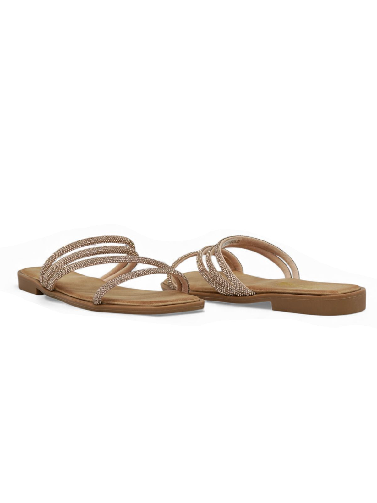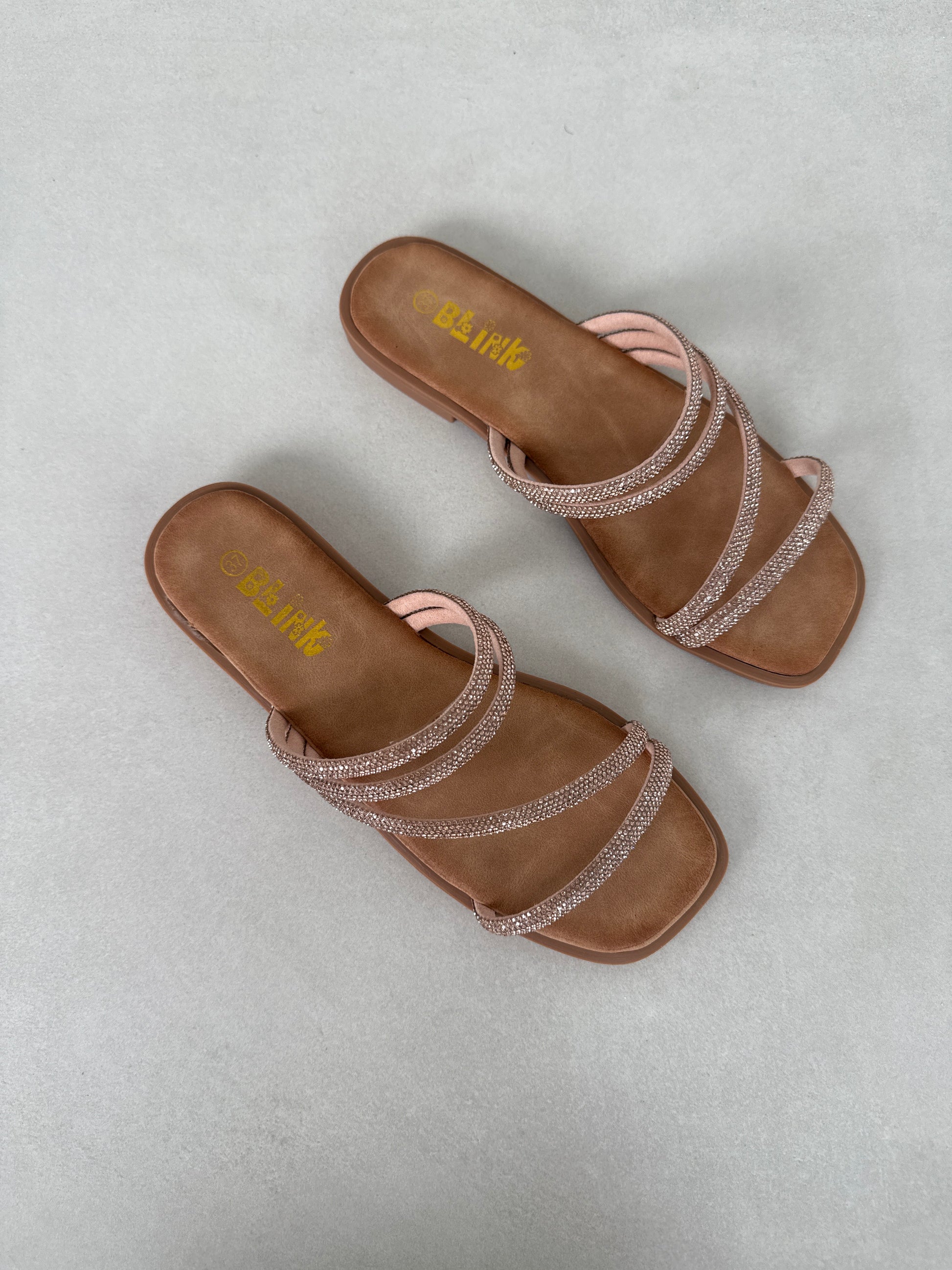 Sandalias Rosé Gold con Tiras Brillantes y Punta Cuadrada