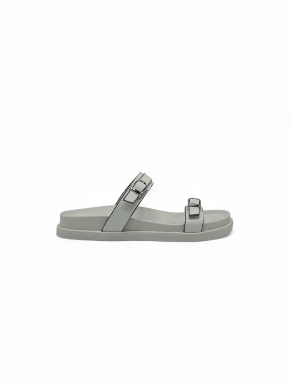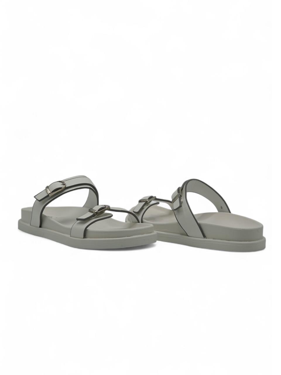 Estas sandalias blancas con doble hebilla metálica combinan un diseño limpio y moderno con una comodidad excepcional. Su suela ergonómica y estructura ligera brindan soporte ideal para el uso diario, mientras el acabado brillante agrega un toque de frescura y estilo. Perfectas para looks casuales, días de descanso o para complementar un outfit veraniego con elegancia relajada.
