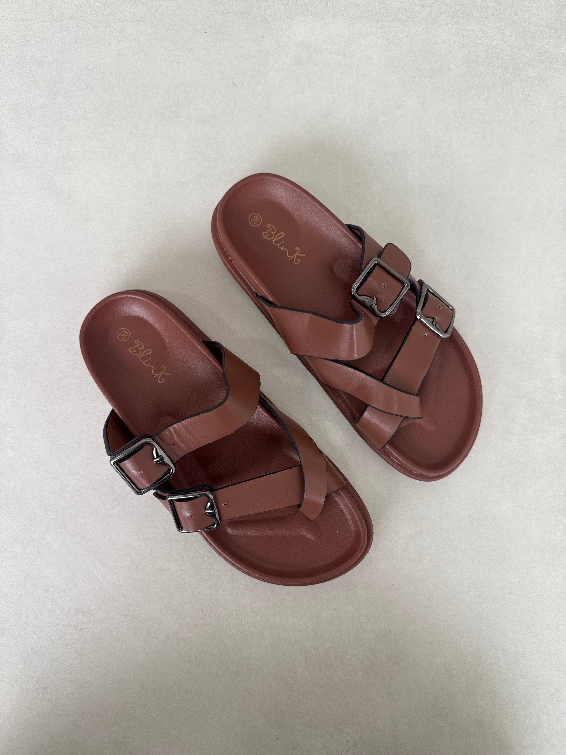 14494 – Sandalias Marrones con Hebillas Metálicas y Suela Ergonómica