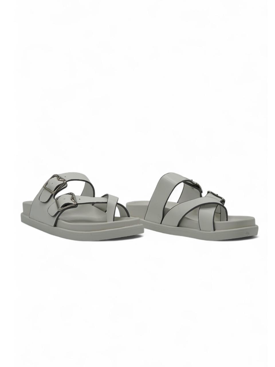 Sandalias Blancas con Hebillas Metálicas y Suela Ergonómica