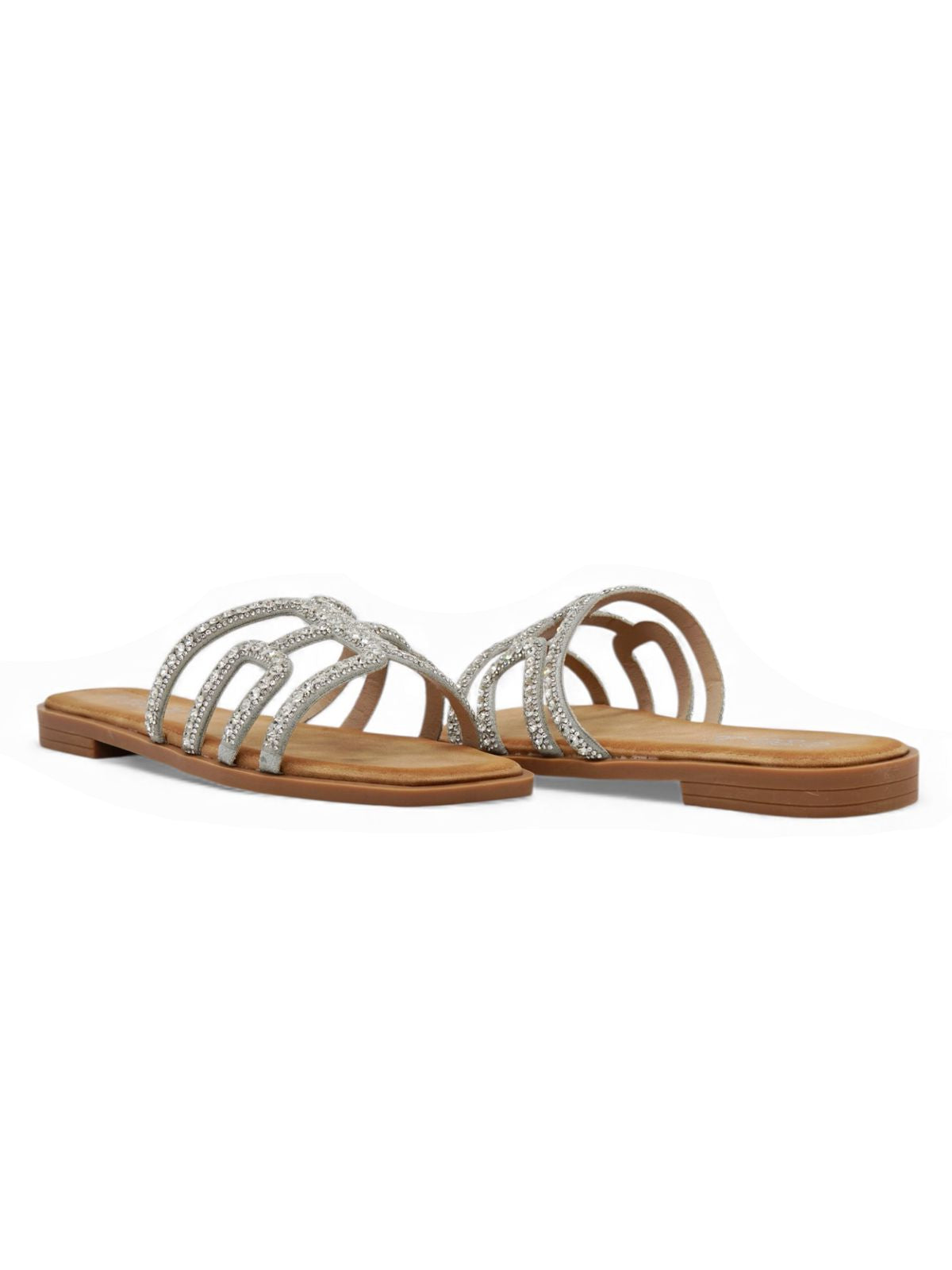 Sandalias Plateadas con Aplique de Brillos y Suela Plana