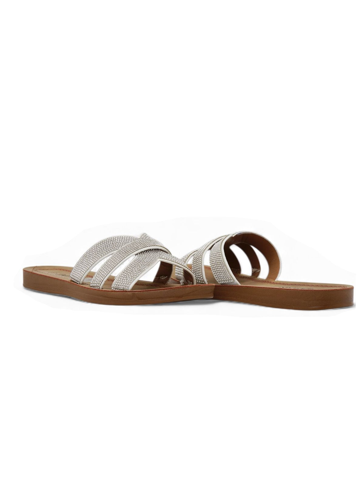 Estas sandalias blancas destacan por su diseño cruzado con detalles brillantes que aportan un toque refinado y moderno. Su color neutro y su comodidad las convierten en la opción ideal para el día a día o para complementar atuendos veraniegos con estilo y ligereza.