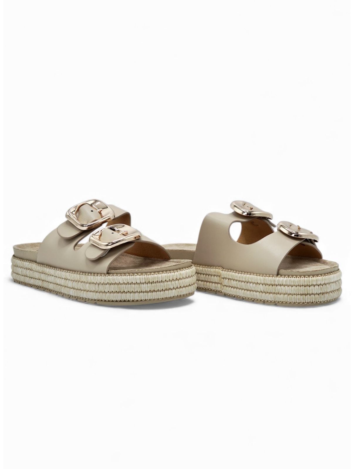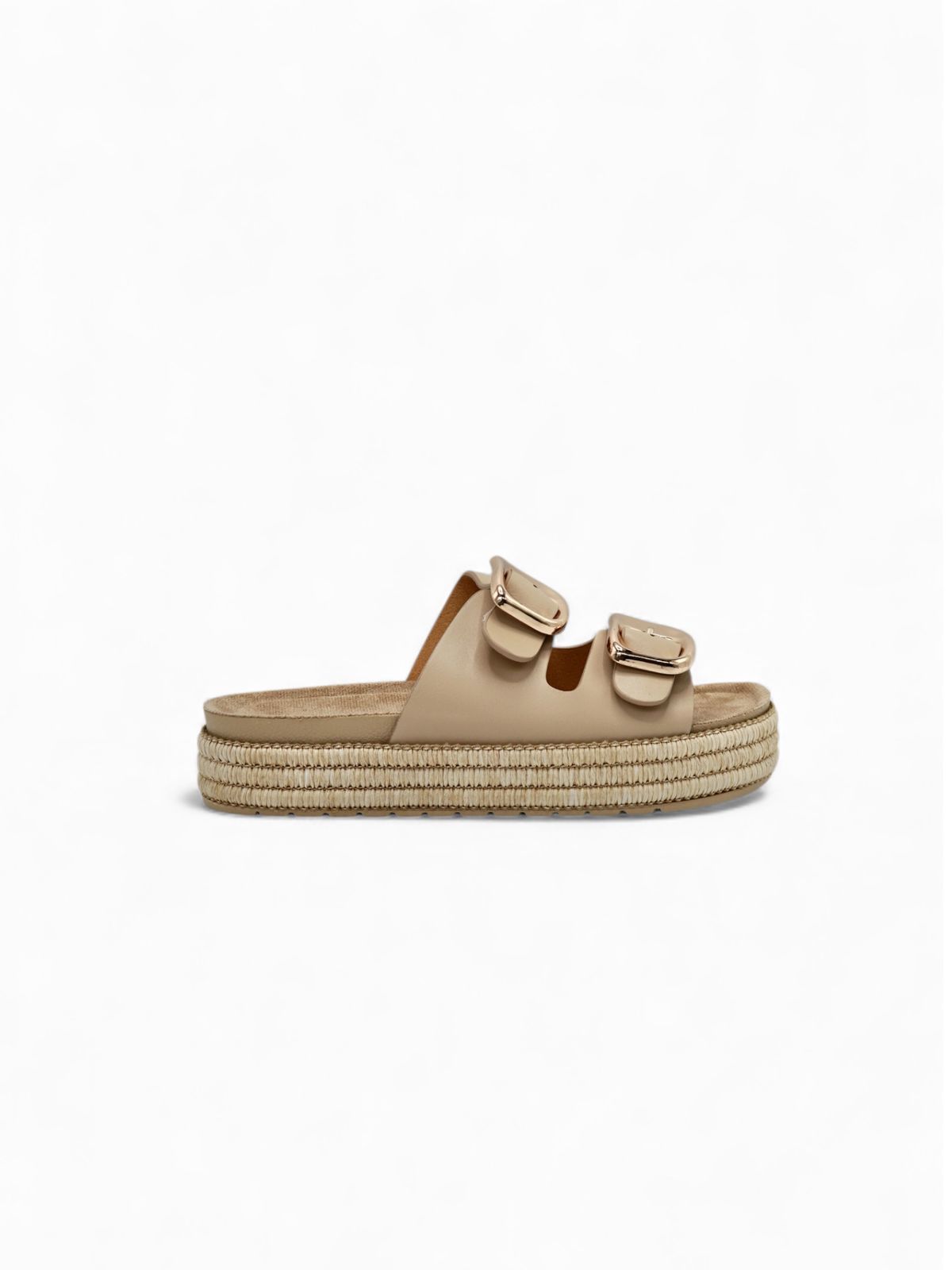 Sandalias Doble Hebilla Beige Plataforma Yute