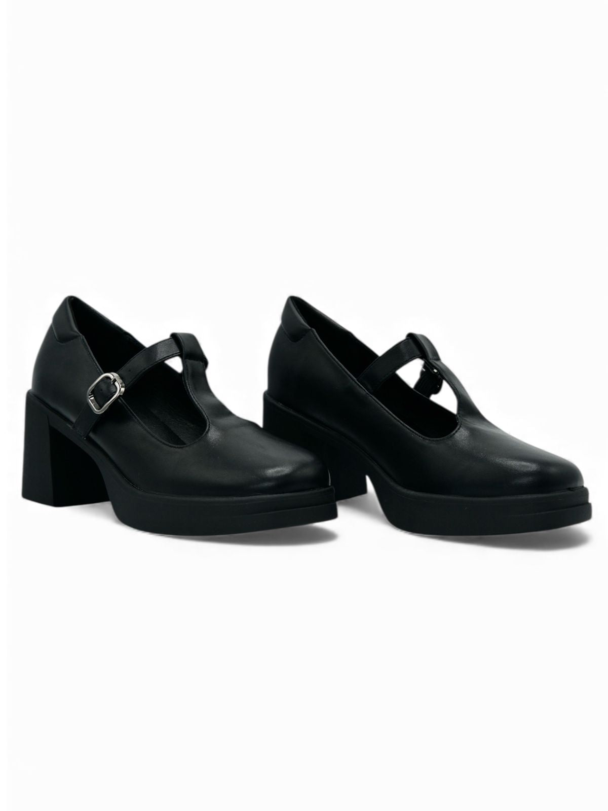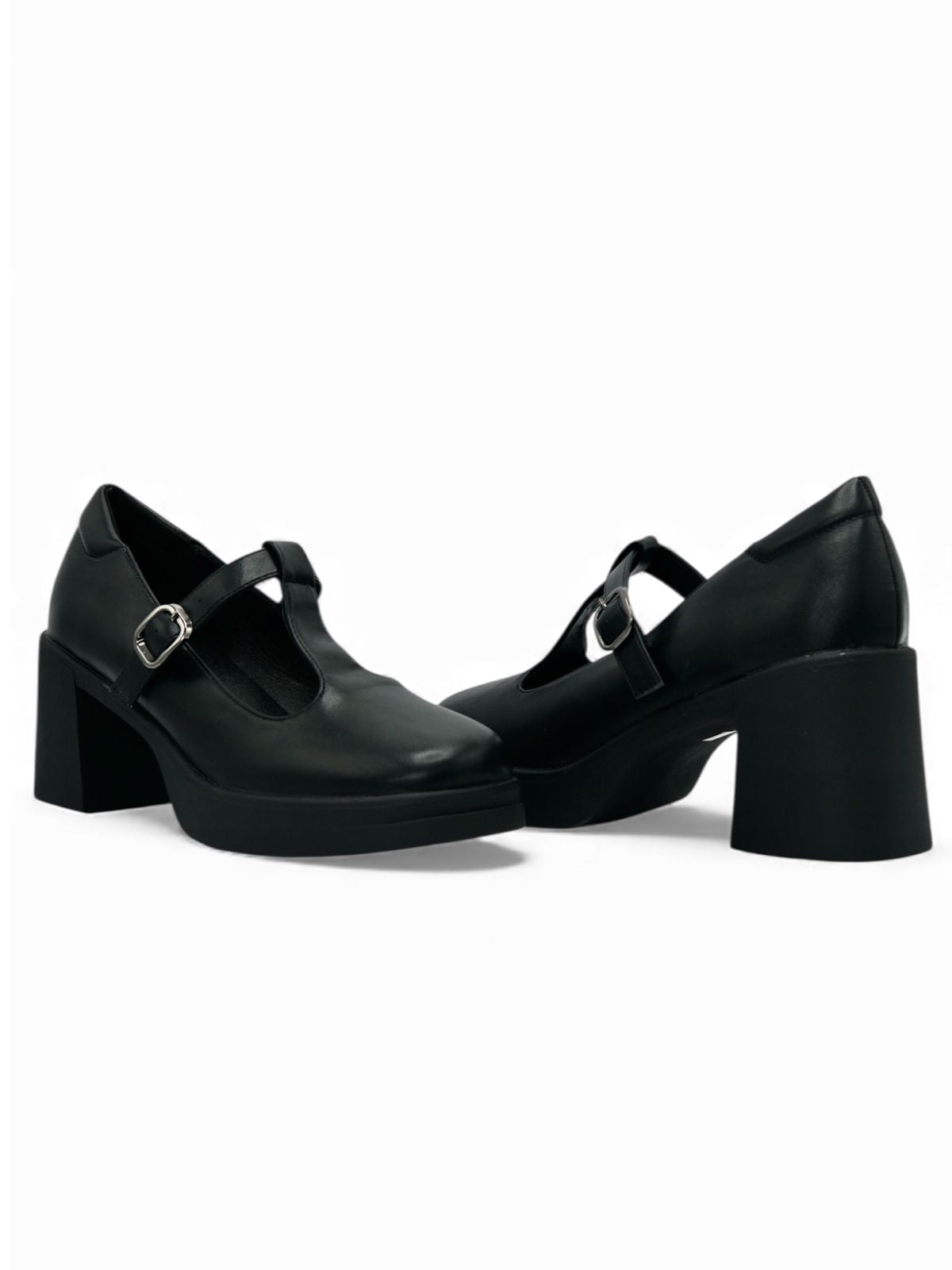 Estas Mary Jane negras combinan el look clásico del modelo con la fuerza moderna de una plataforma estable y un tacón grueso, creando un calzado cómodo, versátil y lleno de estilo. Su tira ajustable realza la silueta del pie y aporta un toque femenino sin perder la practicidad. Son ideales para outfits casuales, urbanos o un look más elegante con personalidad.