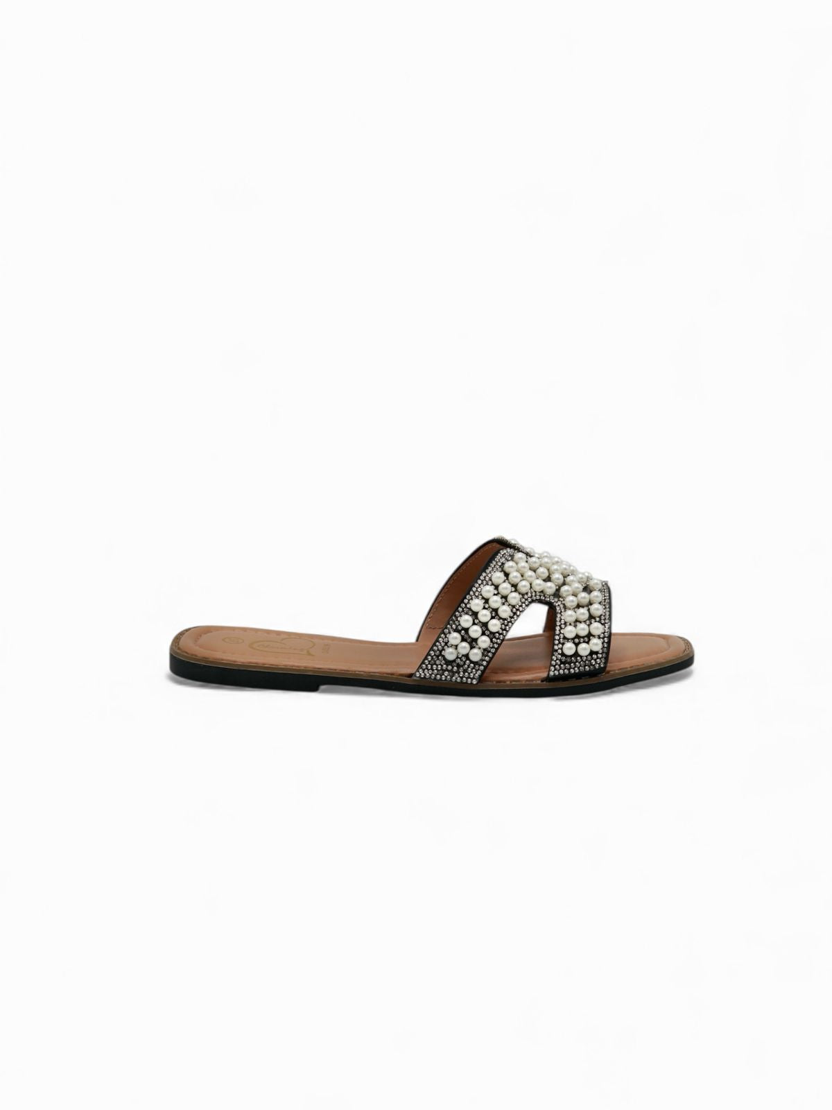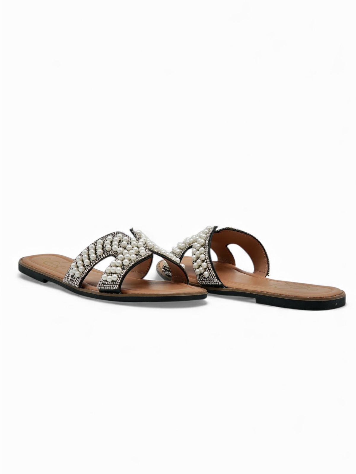 Estas sandalias negras destacan por su diseño sofisticado y lleno de estilo. La banda frontal está decorada con perlas y brillos que aportan un toque elegante y distintivo, ideal para elevar cualquier outfit. Su estructura ligera y su plantilla cómoda las convierten en una opción perfecta para uso diario, salidas casuales o eventos donde querés lucir delicada sin renunciar al confort.