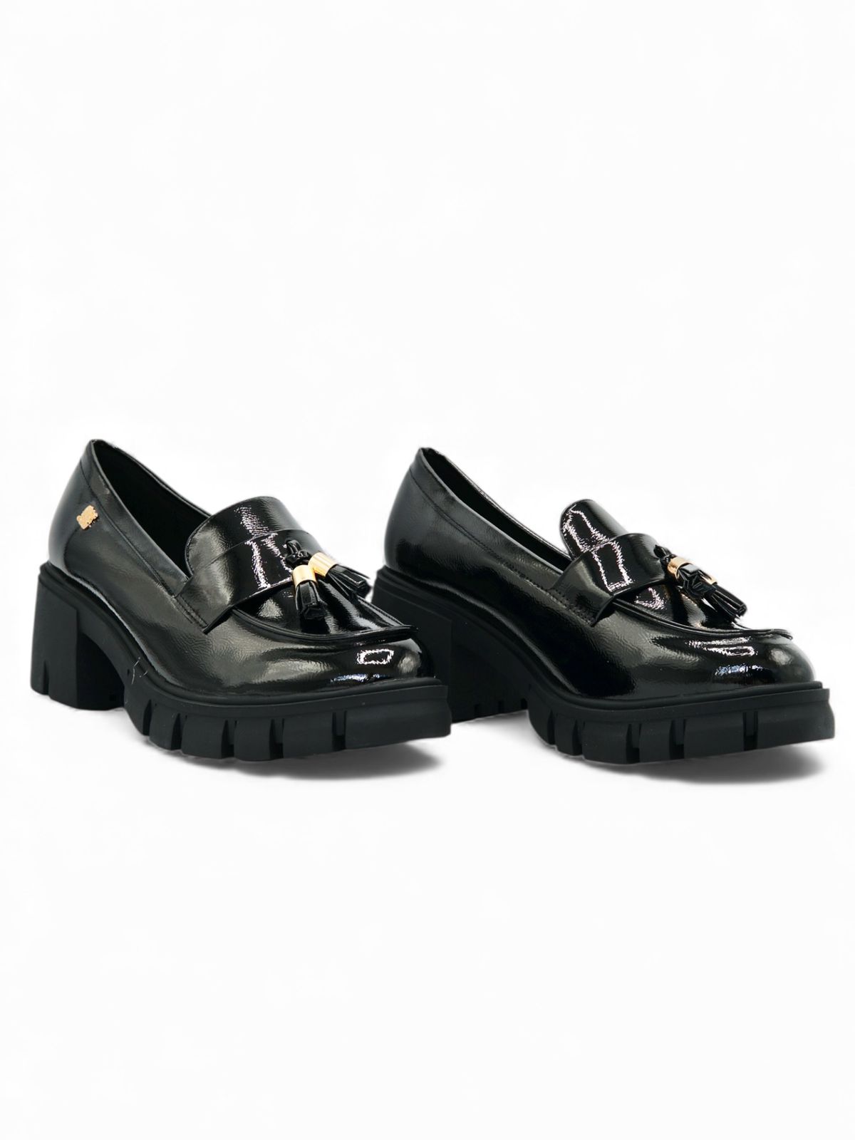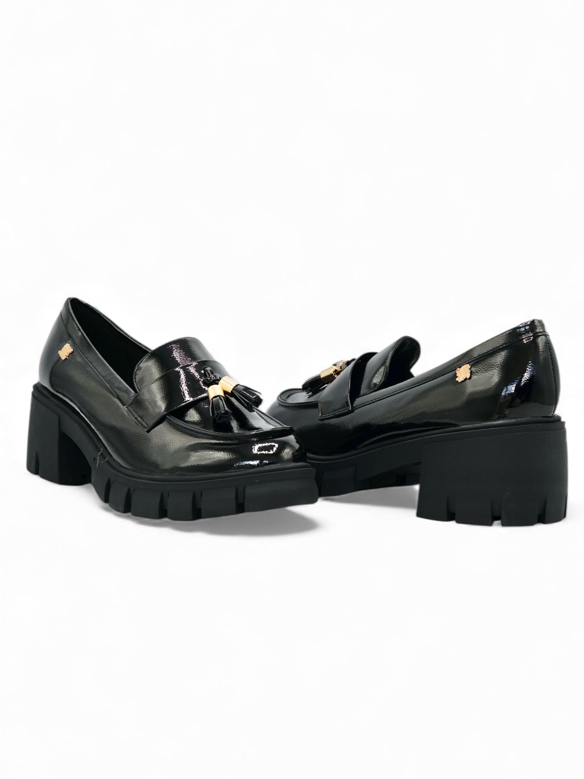 Estos mocasines azul charol combinan un estilo moderno con un toque clásico, creando un diseño llamativo pero elegante. Su acabado brillante realza cualquier look, mientras que la plataforma chunky aporta altura, estabilidad y una presencia poderosa. El detalle de borlas frontales complementa su estética sofisticada, convirtiéndolos en una opción ideal para outfits casuales, de trabajo o días donde querés destacar sin sacrificar comodidad.