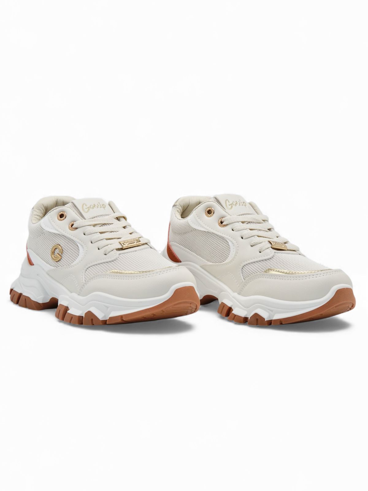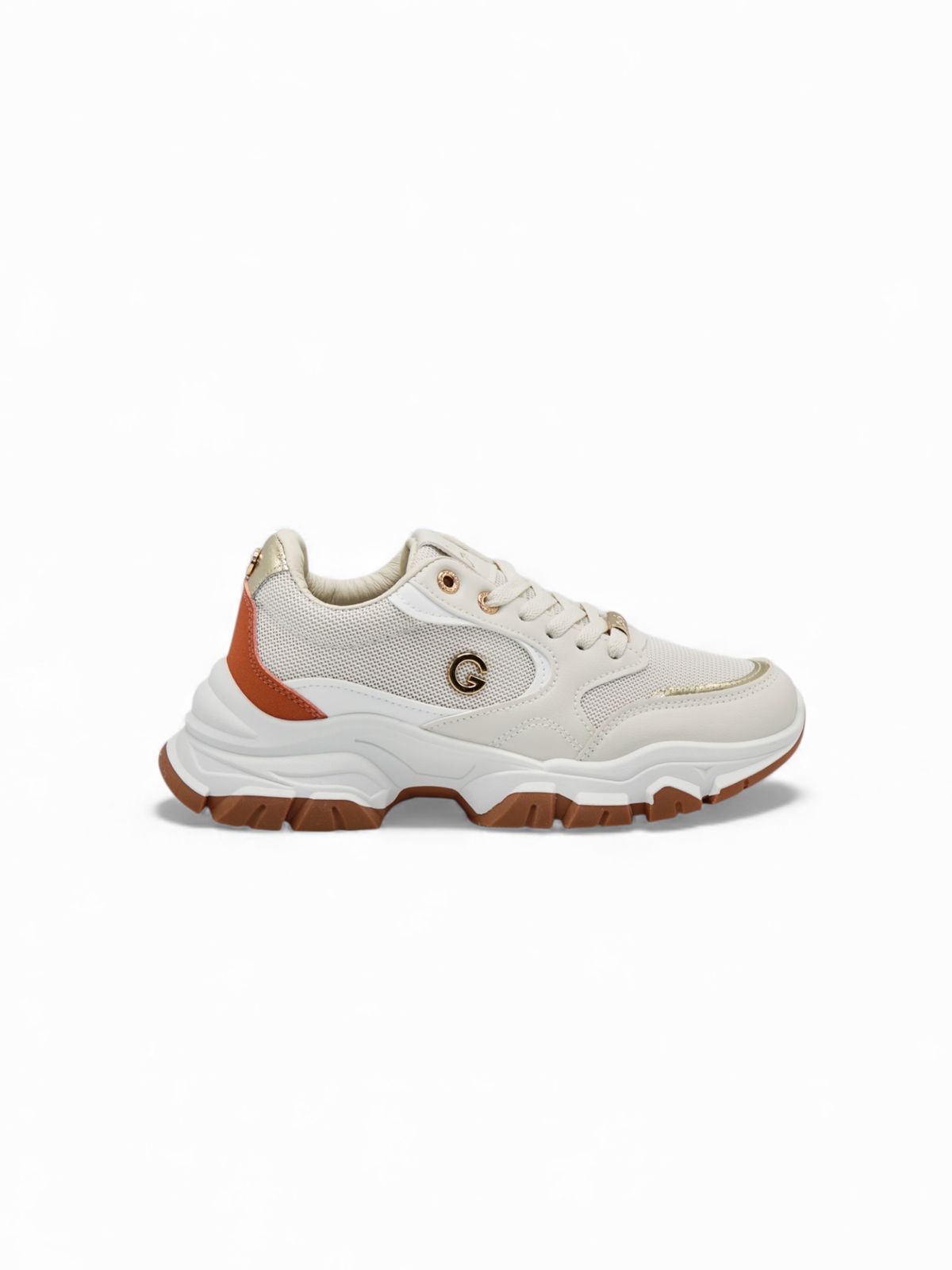 Estos tenis beige con detalles en color terracota combinan comodidad y estilo moderno para tu día a día. Su diseño chunky aporta presencia sin perder ligereza, mientras que la mezcla de materiales añade textura y un look fresco y actual. Perfectos para quienes buscan un calzado versátil, cómodo y con un estilo urbano femenino.