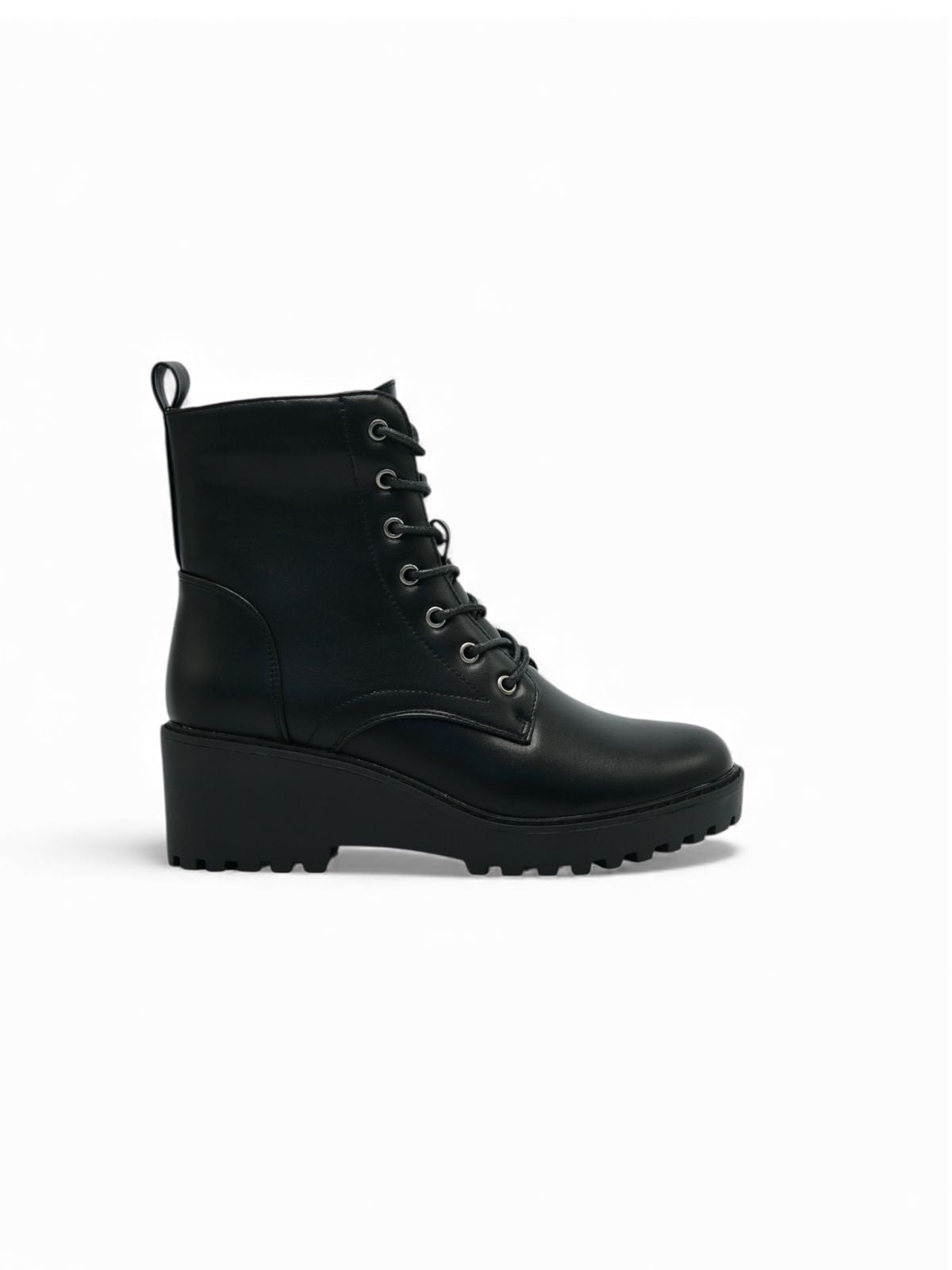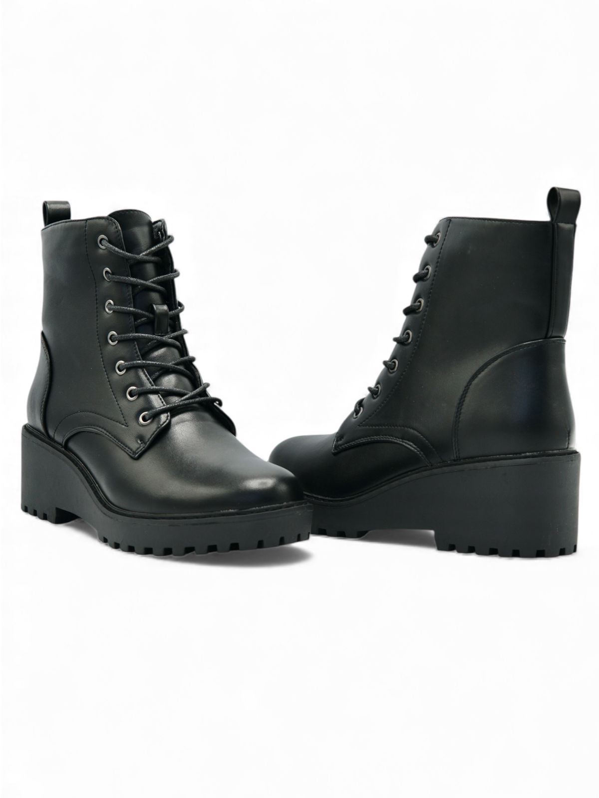 Estos botines negros estilo combat combinan fuerza, estilo y comodidad en un solo diseño. Su caña media con cordones le da un look moderno y versátil, ideal para outfits urbanos o casuales. El tacón medio ancho ofrece estabilidad y soporte, permitiendo usarlos durante todo el día sin sacrificar confort. Una opción perfecta para darle carácter a cualquier look.