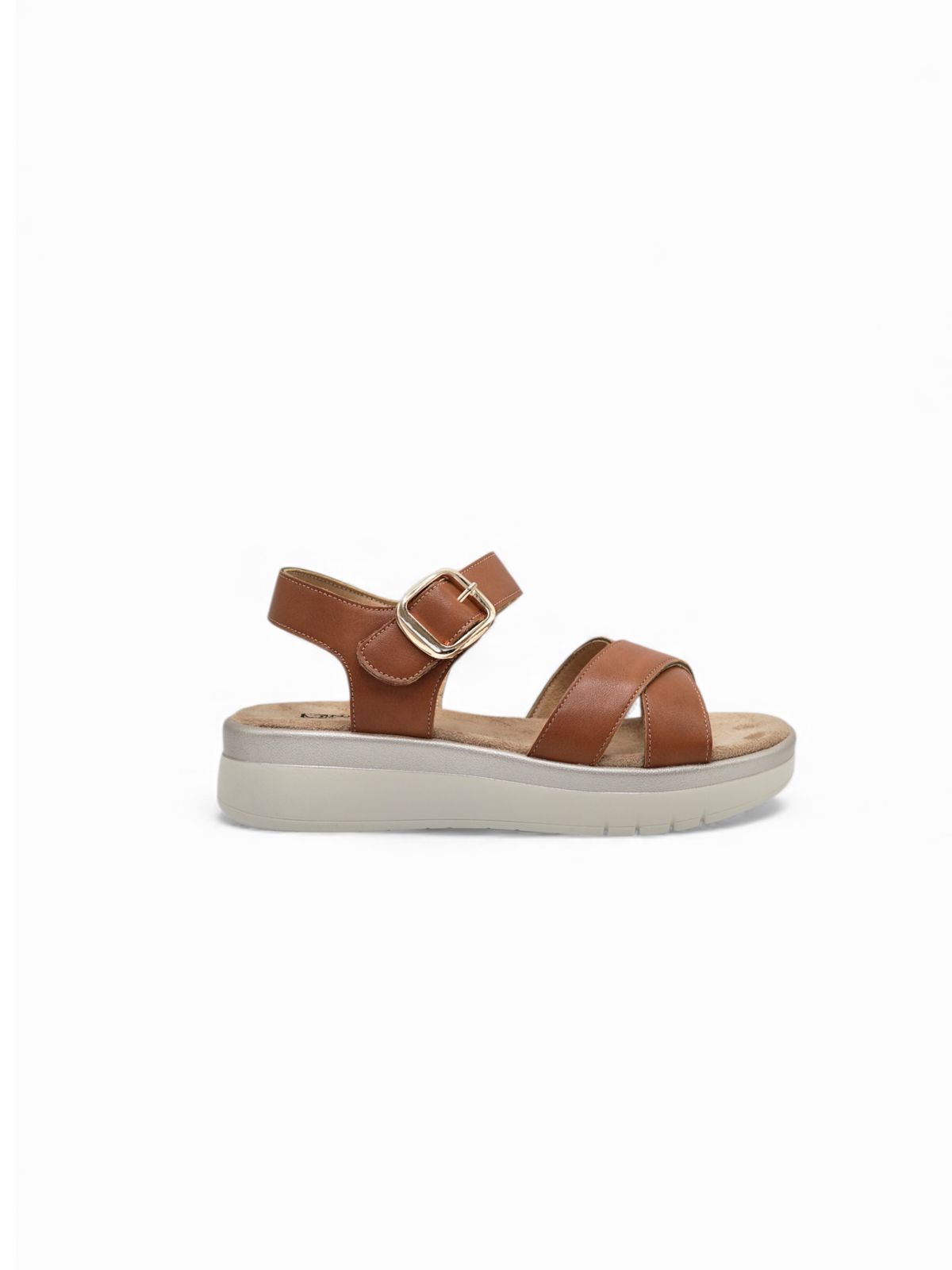Sandalias Camel con Plataforma Ligera y Hebilla Dorada