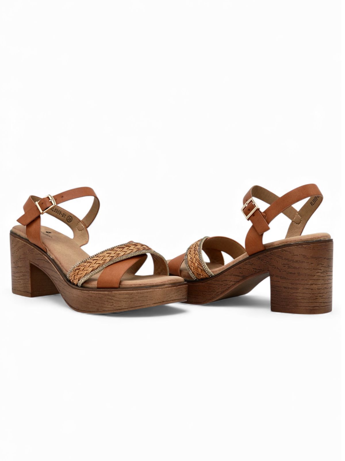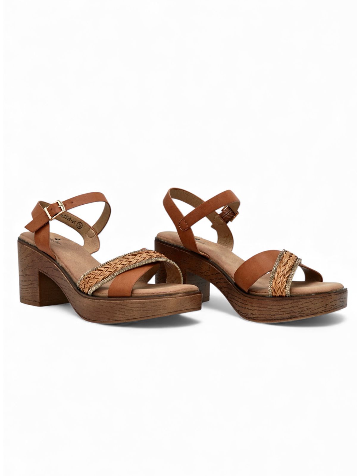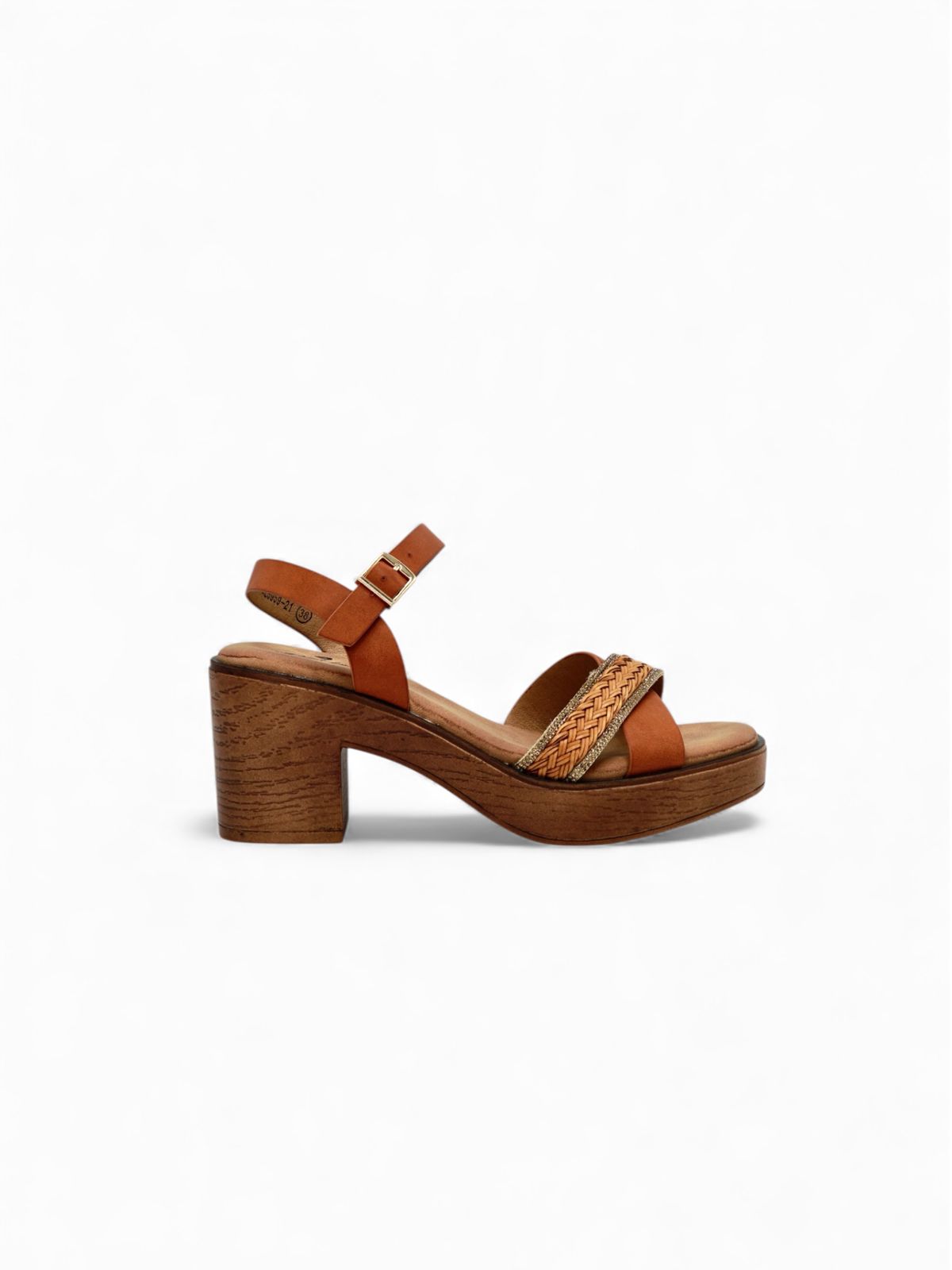 Sandalias Camel con Tacón Madera y Detalle Trenzado