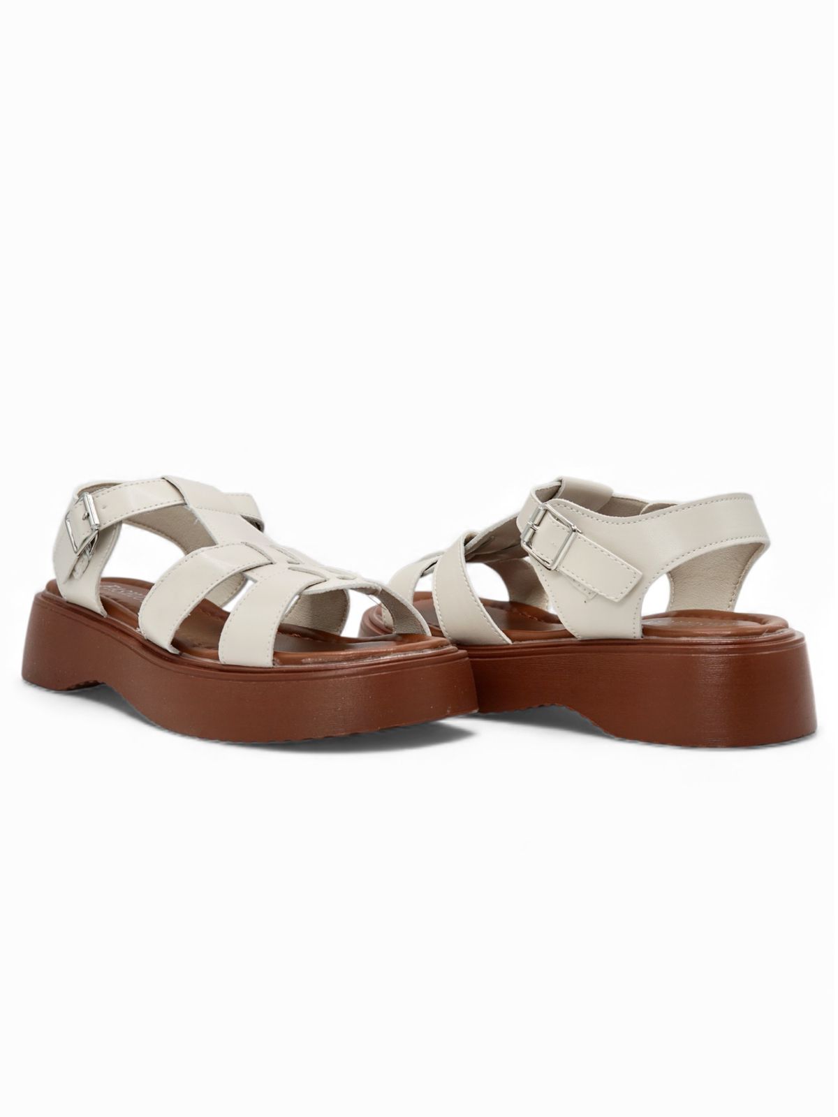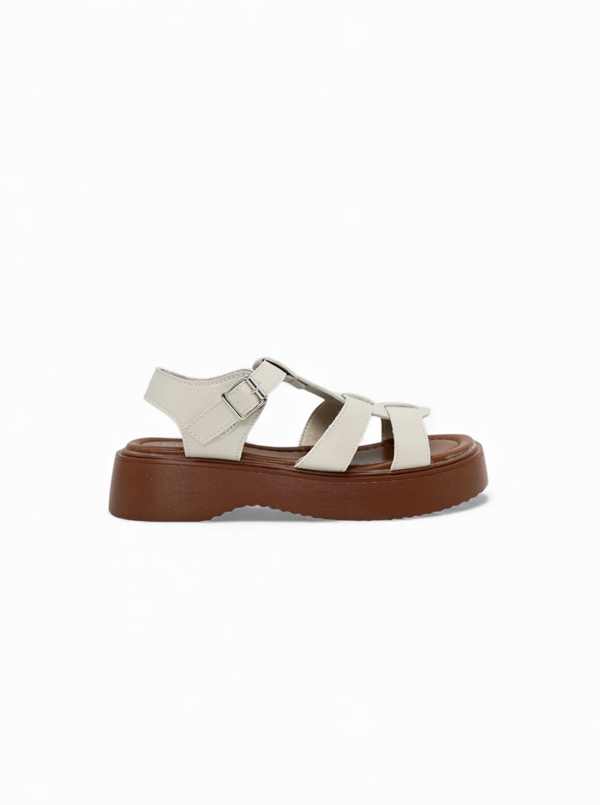 Sandalias Blanco Hueso con Plataforma Café y Hebilla Ajustable