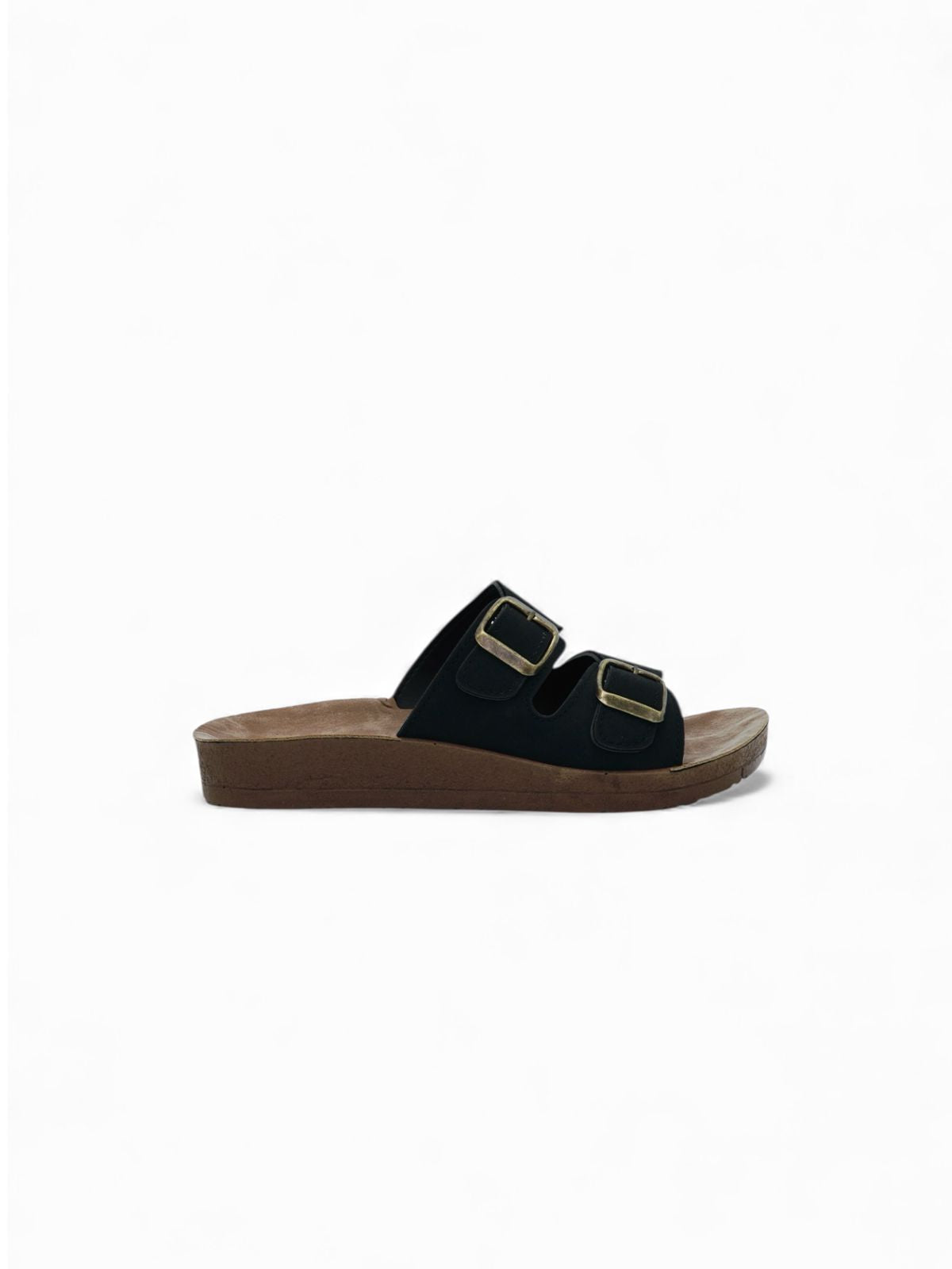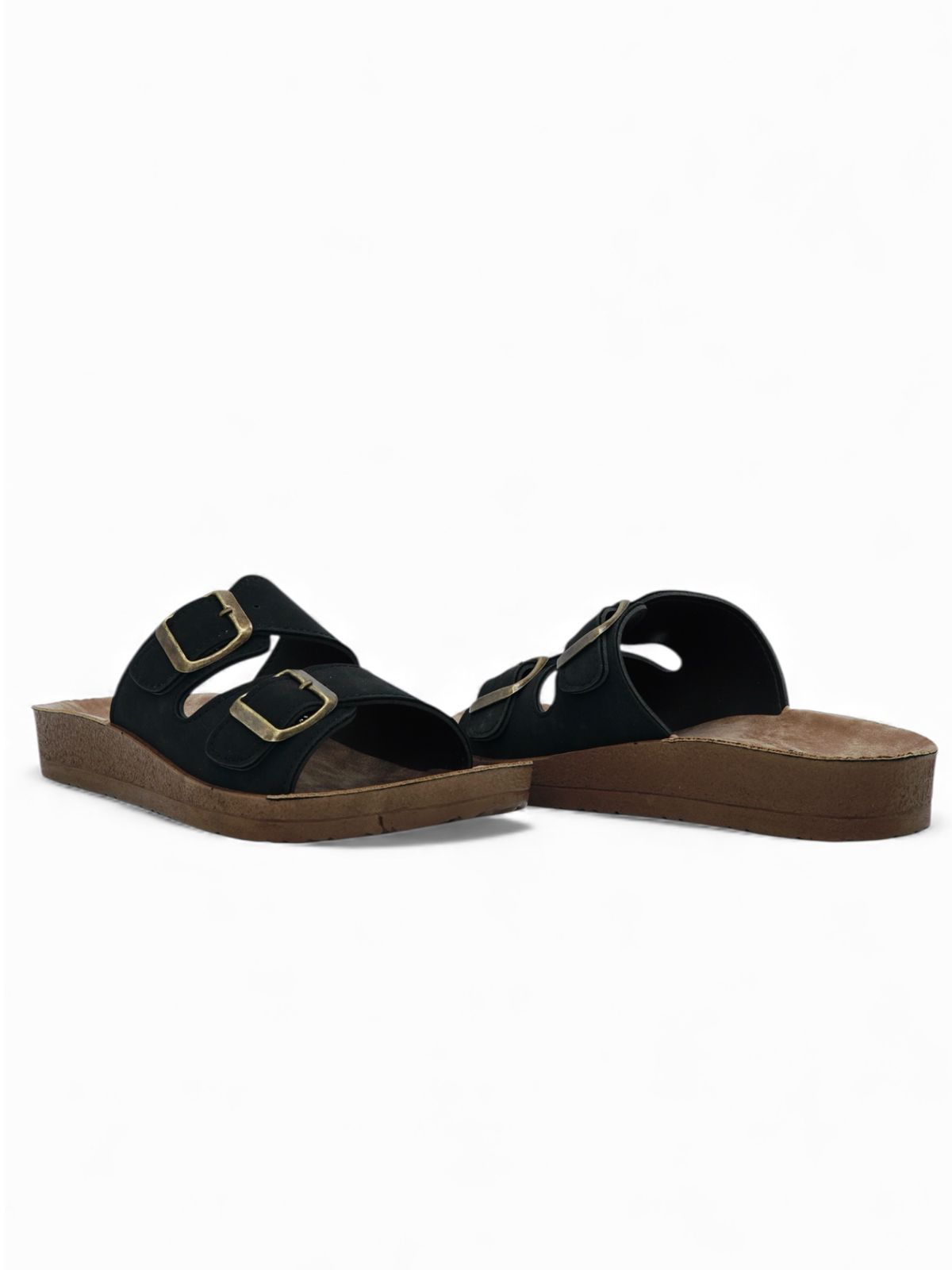 Estas sandalias negras están pensadas para el día a día, combinando practicidad y comodidad en un diseño clásico de doble hebilla. Su plataforma ligera ofrece soporte estable sin agregar peso, mientras el acabado suave y el interior acolchonado hacen que caminar sea mucho más cómodo. Ideales para uso casual, mandados o jornadas largas donde buscás confort y estilo sencillo.