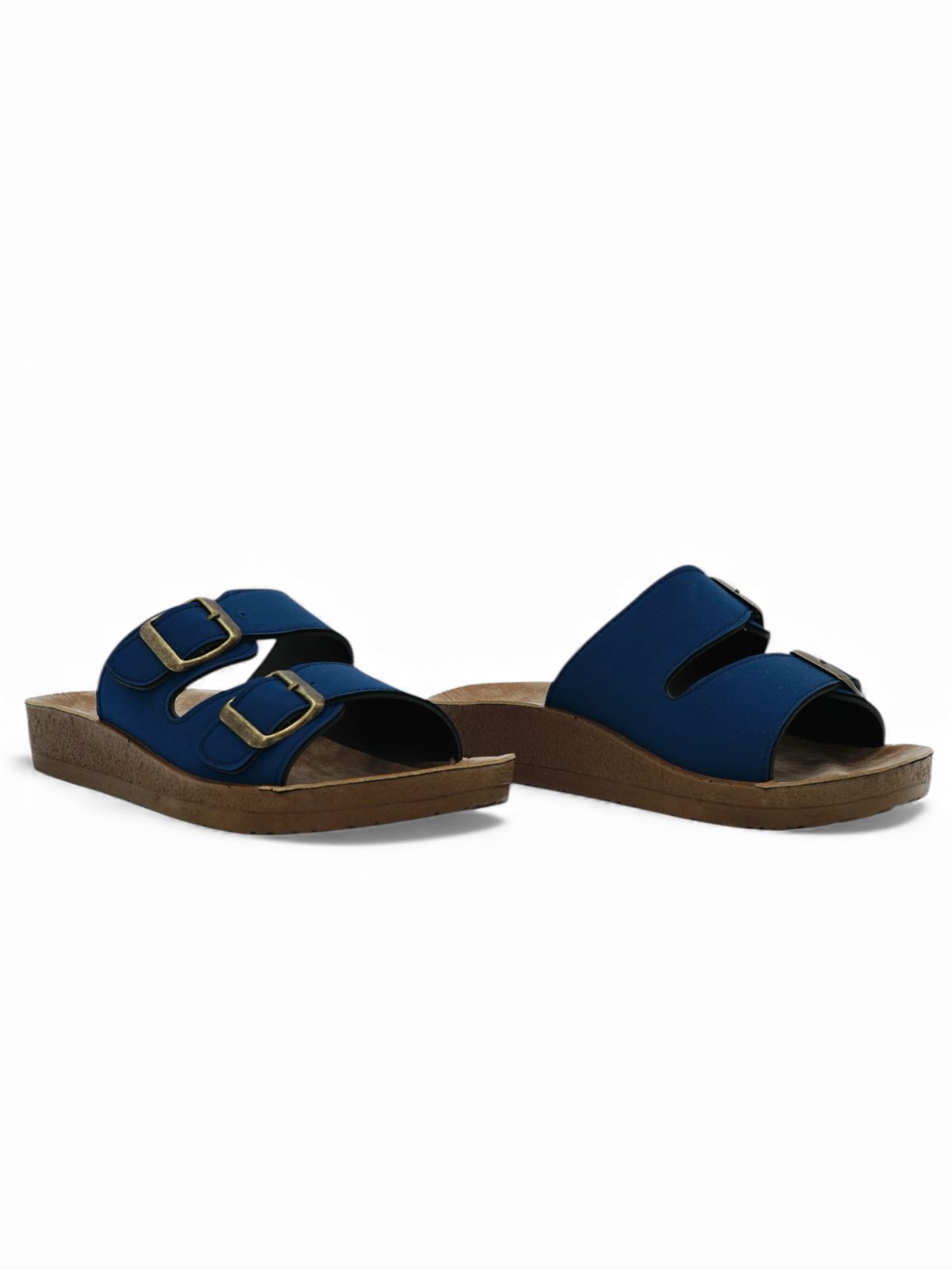 Estas sandalias azules con doble hebilla combinan practicidad y estilo en un diseño que se adapta al uso diario. Su estructura liviana y la plantilla acolchonada brindan comodidad en cada paso, mientras las correas ajustables aseguran un calce firme y personalizado. Son ideales para caminar, descansar o usarlas en casa y en la calle con total confort.