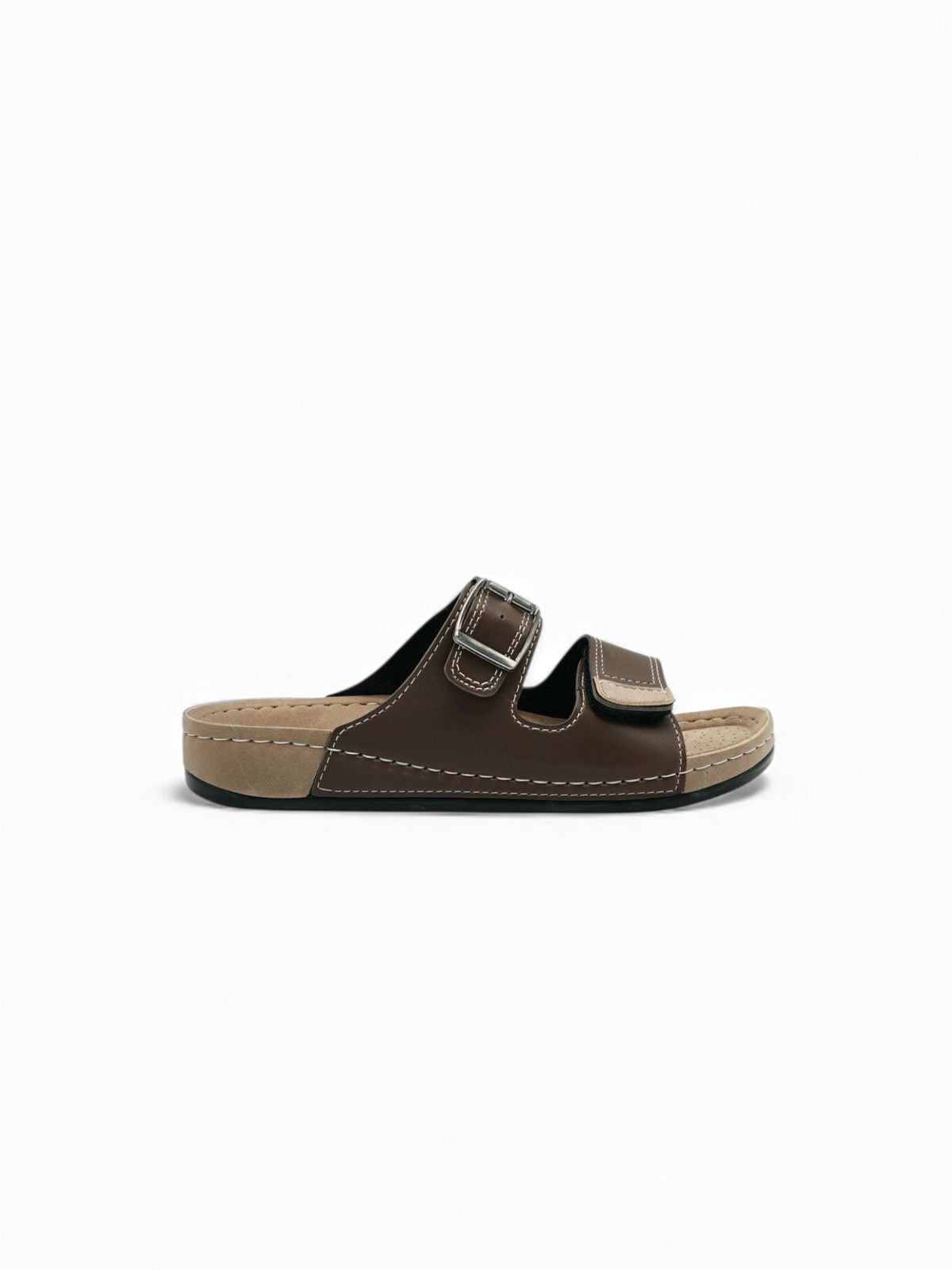 Sandalias Marrón Komfort con Doble Correa y Hebilla Ajustable