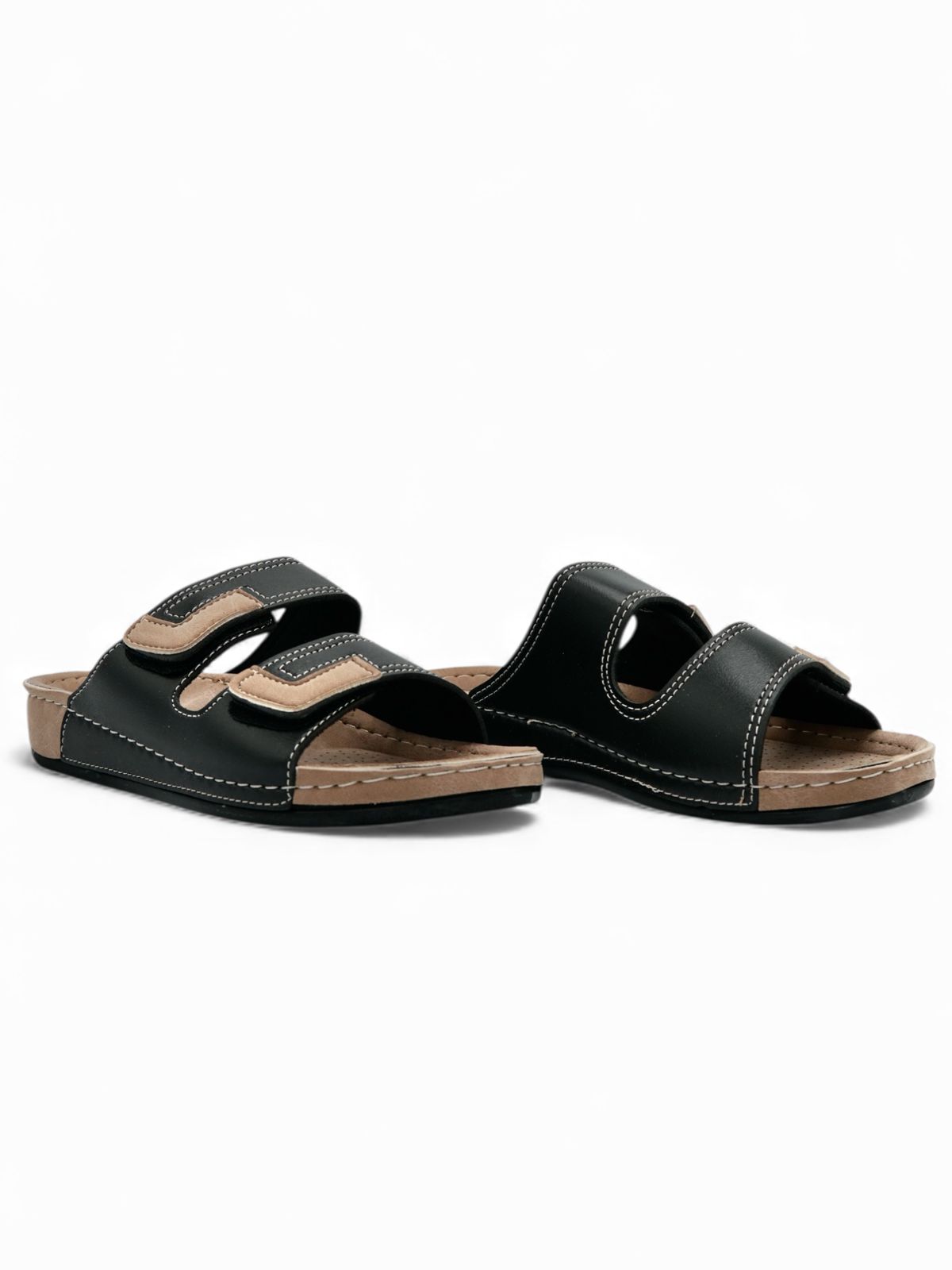 Sandalias Negras Komfort de Doble Correa Ajustable